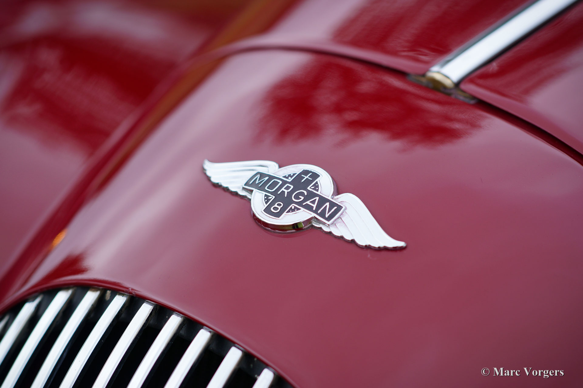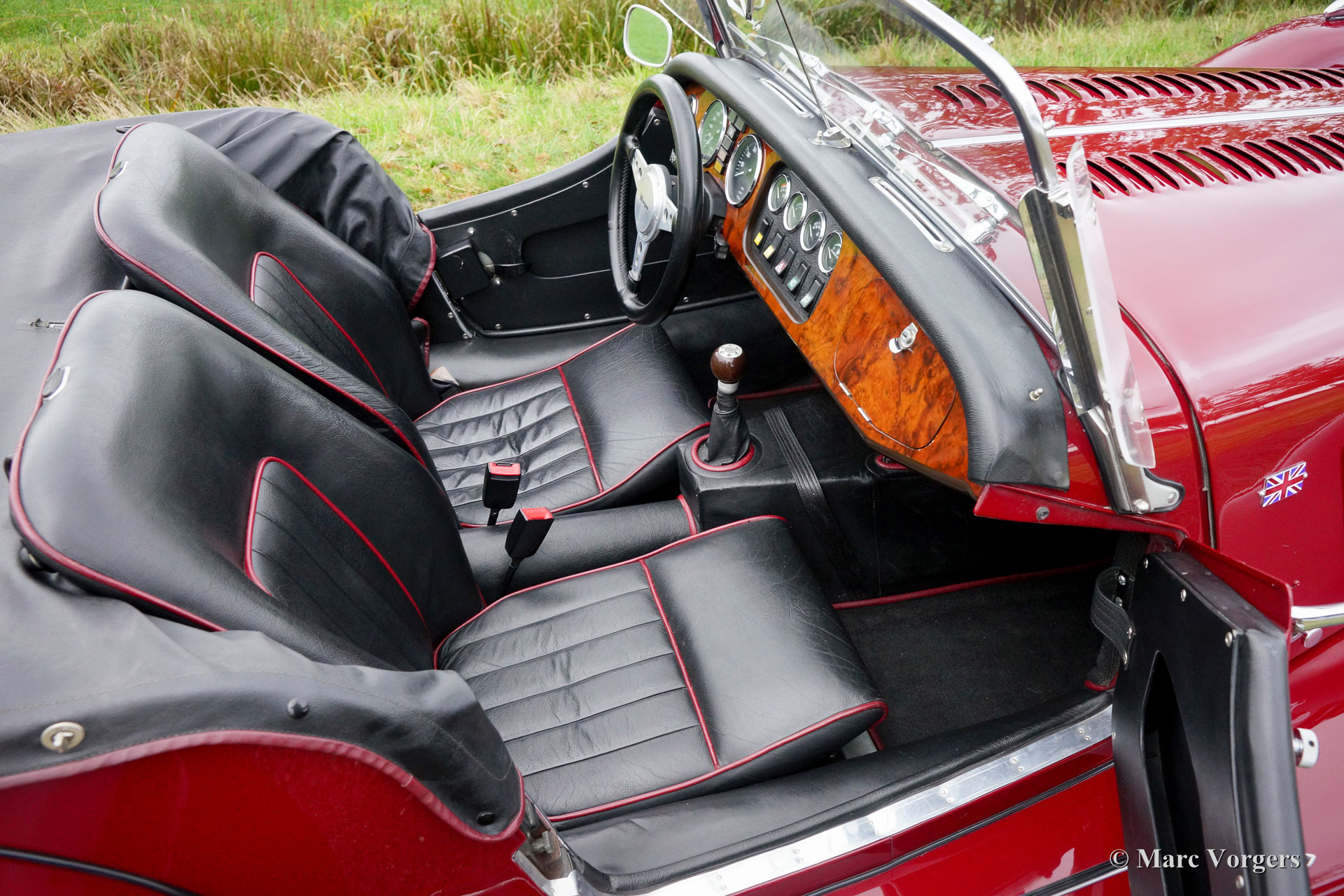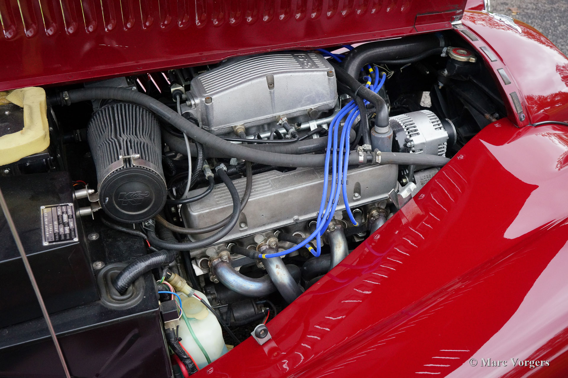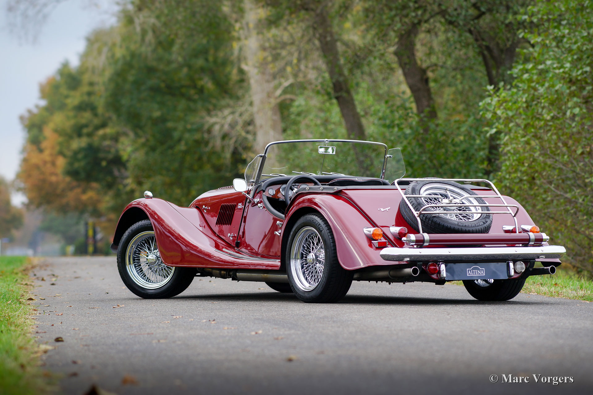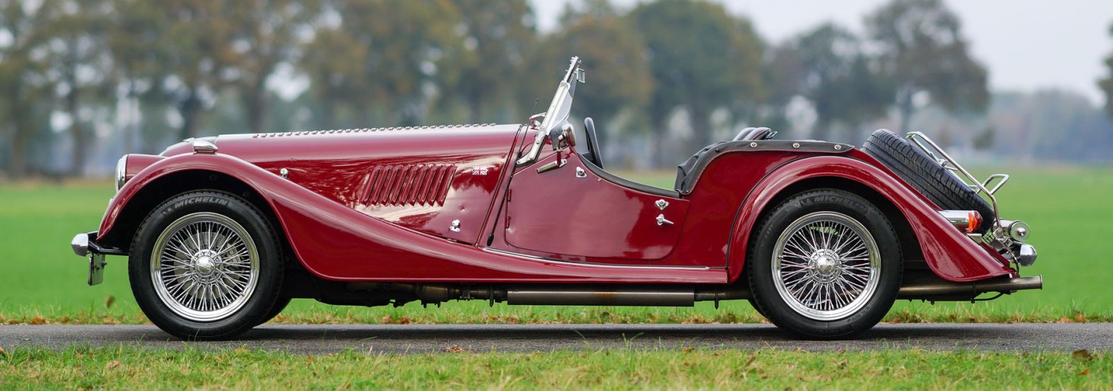 Morgan +8 ‘wide body’, jaar 1995. Chassisnummer R1132X. Kleur donkerrood met een zwart leren interieur. Deze indrukwekkende Morgan +8 ‘wide body’ verkeert in excellente staat en de auto rijdt geweldig! Het lage wagen-gewicht van iets meer dan 1000 kilo en een V8 motor van bijna 200 pk staan garant voor heel veel rijplezier! Deze Morgan +8 is onder andere voorzien van prachtige originele brede chroom spaakwielen, een rvs ‘free-flow’ uitlaatspruitstuk, extra vérstralers aan de voorzijde, een kofferrek en een speciale parapluhouder aan de achterbumper. De Morgan +8 ‘wide body’ is schaars, er zijn iets meer dan 350 exemplaren gebouwd. Een Morgan is niet zomaar een klassieke automobiel maar ‘a way of life’.