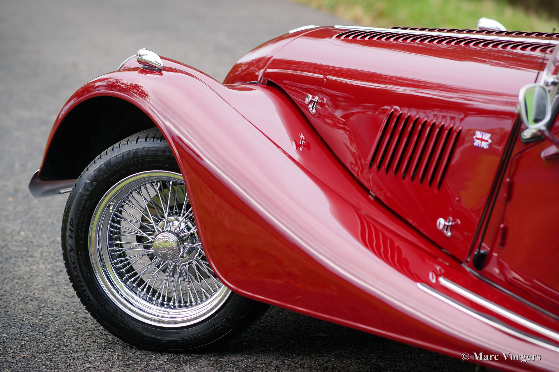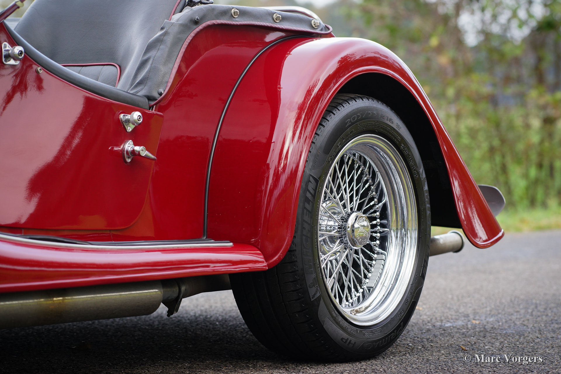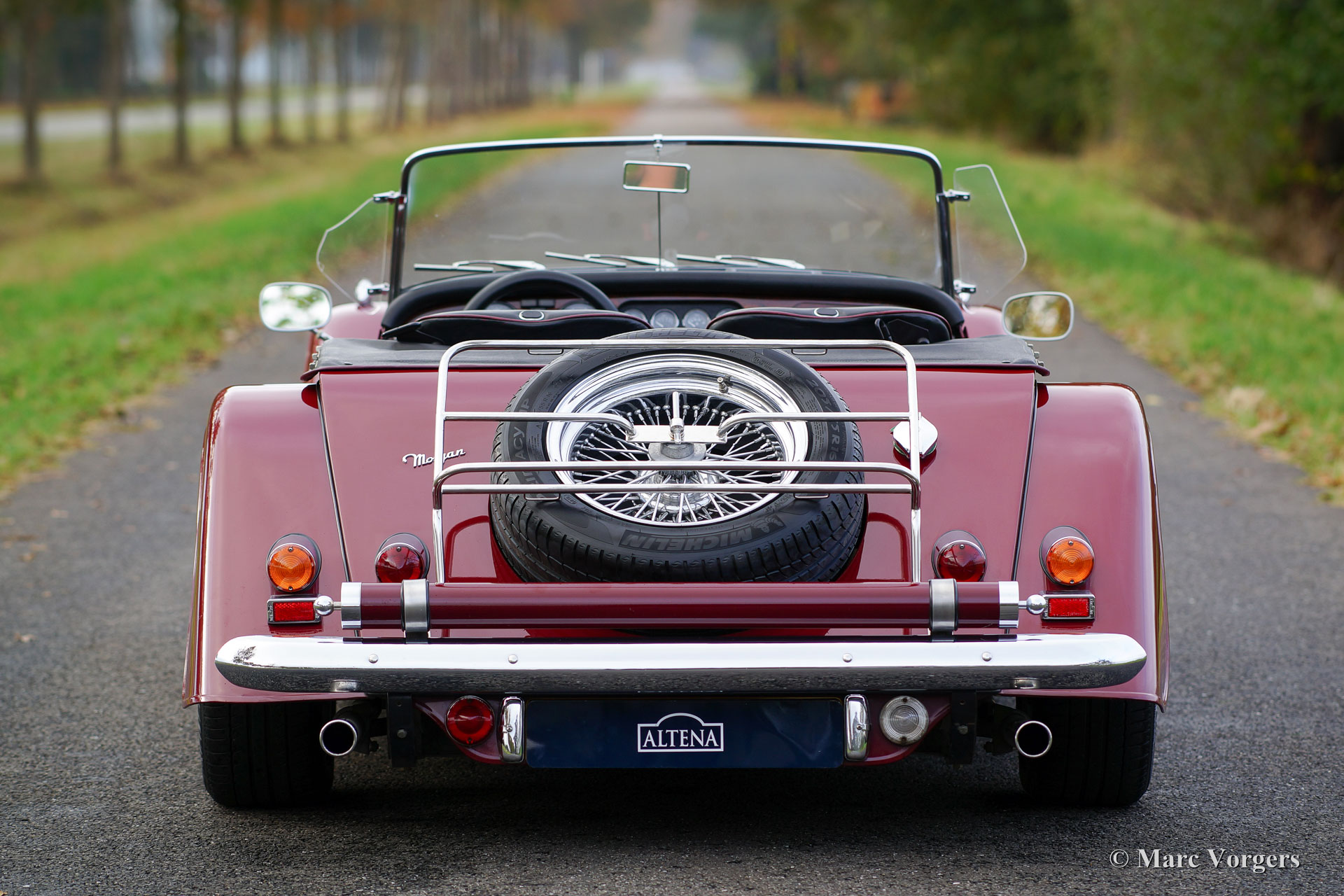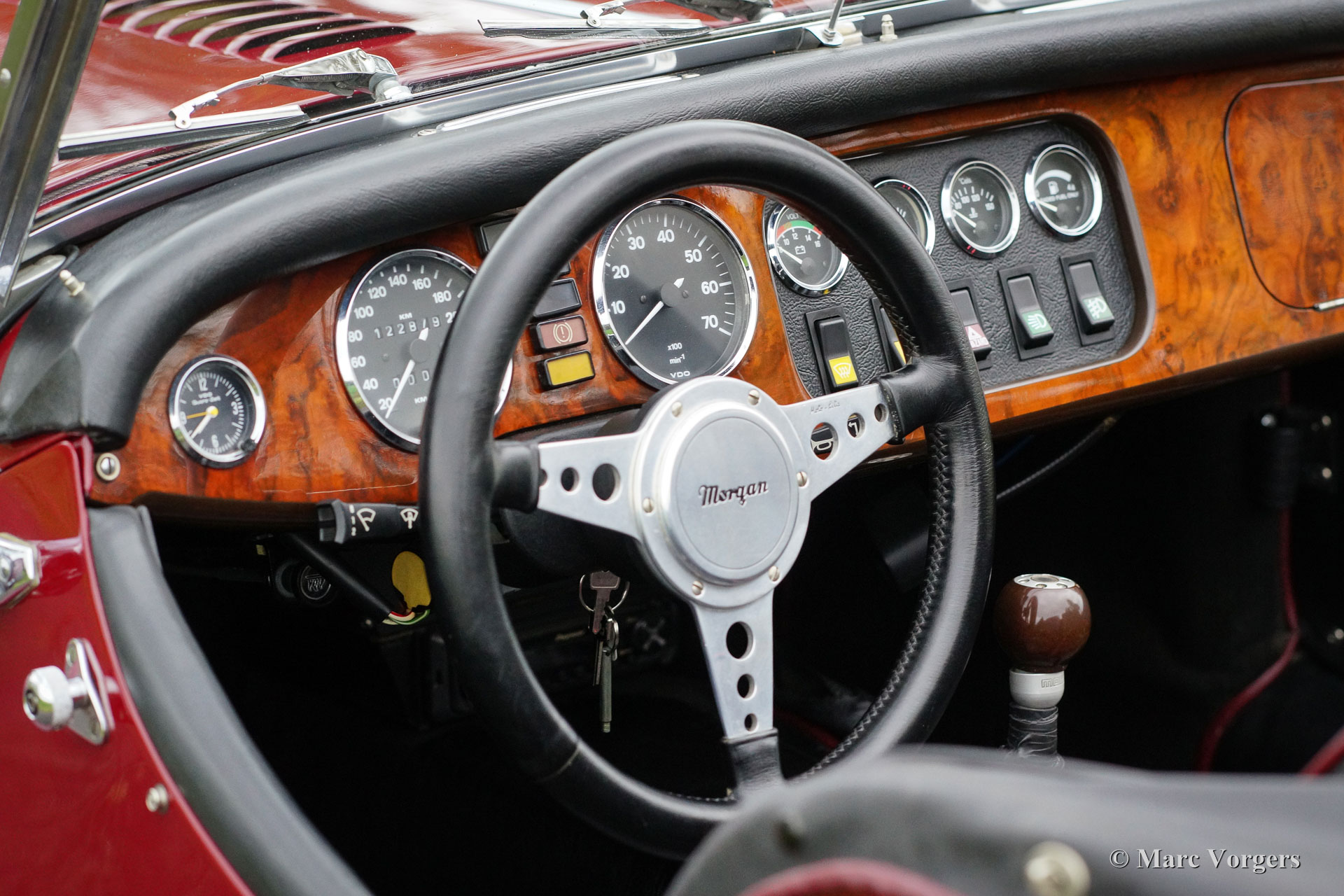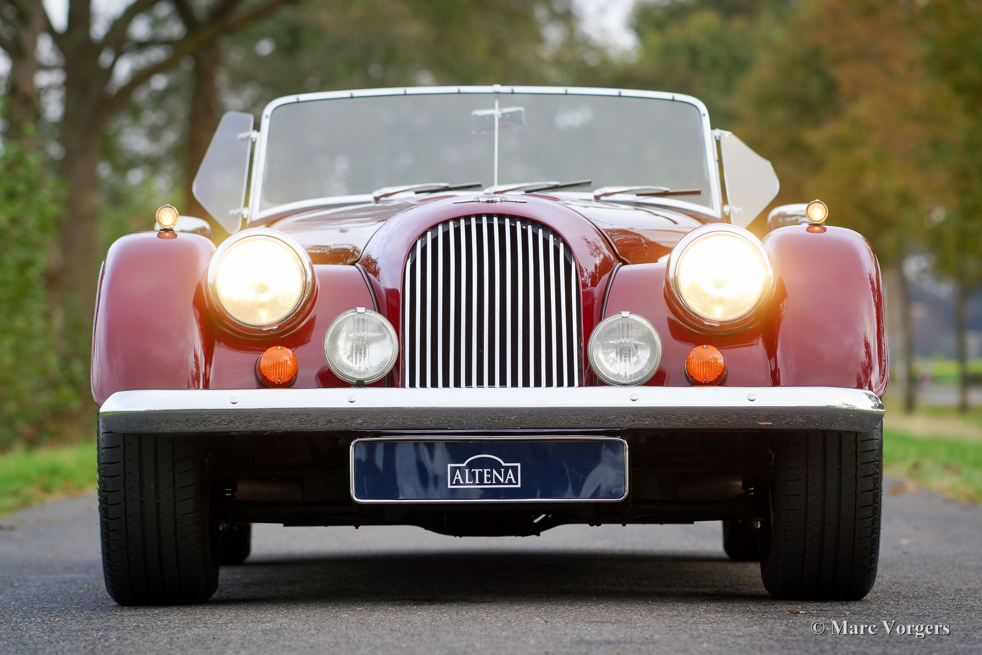 Morgan +8 ‘wide body’, jaar 1995. Chassisnummer R1132X. Kleur donkerrood met een zwart leren interieur. Deze indrukwekkende Morgan +8 ‘wide body’ verkeert in excellente staat en de auto rijdt geweldig! Het lage wagen-gewicht van iets meer dan 1000 kilo en een V8 motor van bijna 200 pk staan garant voor heel veel rijplezier! Deze Morgan +8 is onder andere voorzien van prachtige originele brede chroom spaakwielen, een rvs ‘free-flow’ uitlaatspruitstuk, extra vérstralers aan de voorzijde, een kofferrek en een speciale parapluhouder aan de achterbumper. De Morgan +8 ‘wide body’ is schaars, er zijn iets meer dan 350 exemplaren gebouwd. Een Morgan is niet zomaar een klassieke automobiel maar ‘a way of life’.