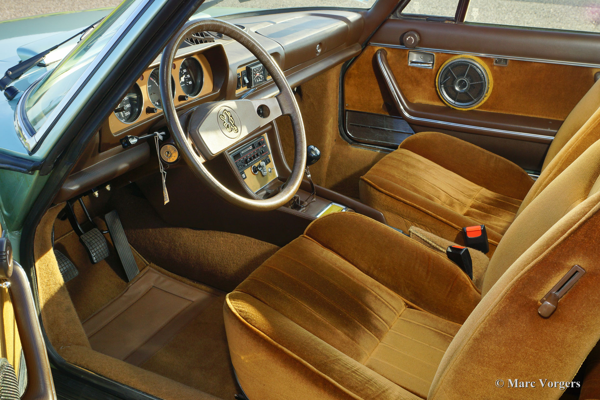 Peugeot 504 Coupe, jaar 1978. Kleur lichtgroen metallic (vert clair metallique) met een cognacbruin velours interieur. Deze beeldschone Peugeot 504 Coupe werd nieuw verkocht in Frankrijk; de originele Franse kentekenplaten zijn nog altijd aanwezig. De auto verkeert in originele topstaat en werd nimmer gerestaureerd; unieke originele concoursstaat! Het interieur, de motorruimte en de kofferbak tonen nagenoeg geen enkel spoor van gebruik, zeer bijzonder. Vanaf nieuw heeft de auto slechts 63.827 km gereden, dit wordt bevestigd door het keurig ingevulde serviceboekje. De auto kende slechts twee eigenaren; een Peugeot dealer in Ille sur Tet (Frankrijk) waarvan de originele aankoopfactuur nog aanwezig is. De tweede eigenaar was een Nederlandse verzamelaar die de auto in het jaar 2010 aan zijn verzameling toevoegde. Deze Peugeot 504 Coupe is in een dergelijk perfecte originele staat dat wij durven te beweren dat een vergelijkbaar exemplaar enkel in een museum aangetroffen kan worden.