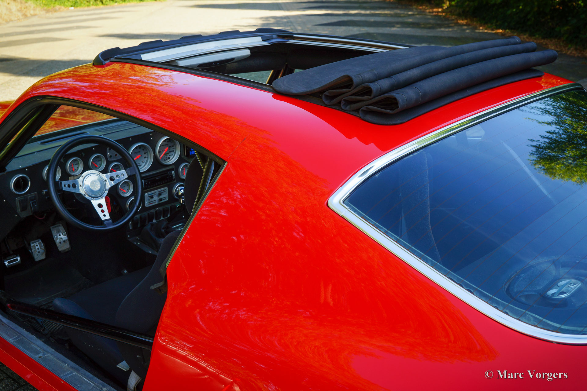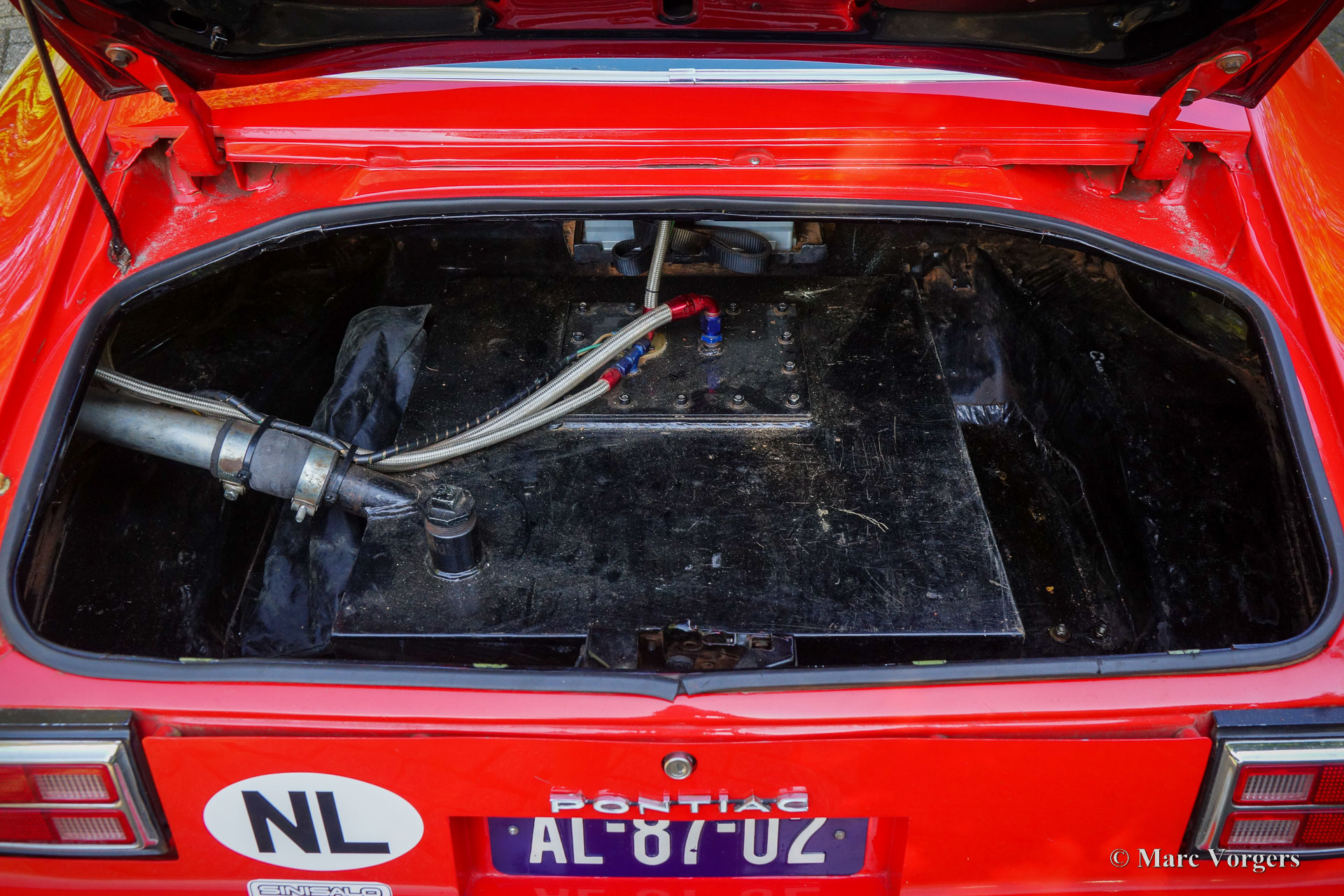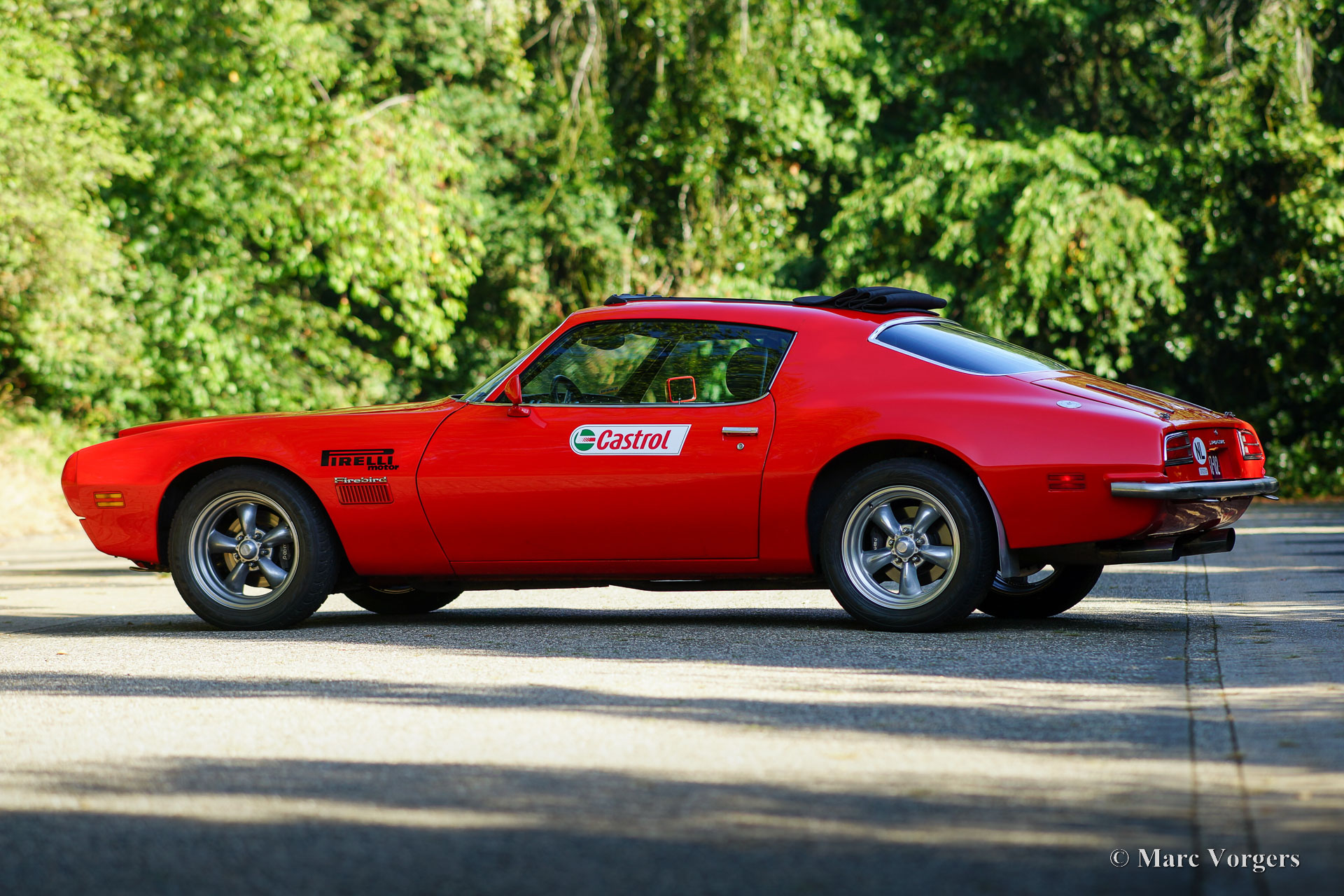 Pontiac Firebird Formula 400, jaar 1971. Kleur rood gecombineerd met een zwart interieur. Deze indrukwekkende Pontiac Firebird is in 2005 vanuit de USA naar Nederland geïmporteerd. Deze tweede generatie Firebird (1970-1981) is een zogenaamd ‘Formula 400’ model voorzien van een 400 Cu (6,6 L) Ram Air big blok V8-motor. De ‘Formula 400’ werd geadverteerd als een alternatief voor de ‘Trans Am’ en kon worden besteld met alle beschikbare opties voor de ‘Trans Am’, behalve de spatbordverbreders, ‘shaker scoop’ en warmte-extractors in de voorspatborden. Dit exemplaar is in het verleden uitgebreid gerestaureerd, getuned en gemodificeerd. De V8-motor is getuned, de handgeschakelde 4-versnellingsbak is voorzien van een speciale schakelpook, er is een hydraulische handrem gemonteerd, het interieur is uitgerust met een aangepast dashboard met een indrukwekkende reeks meters, speciale kuipstoelen, 4-punts veiligheidsgordels, een Terratrip rallycomputer en een Pioneer stereo CD-systeem. Deze Pontiac Firebird rijdt indrukwekkend, en de krachtige motor vraagt om een ervaren coureur die ervaring heeft met krachtige Amerikaanse auto's met achterwielaandrijving! Dit is een geweldig uitziende Pontiac Firebird 'Formula 400' in zeer goede conditie! De auto is klaar om met volle teugen van te genieten.