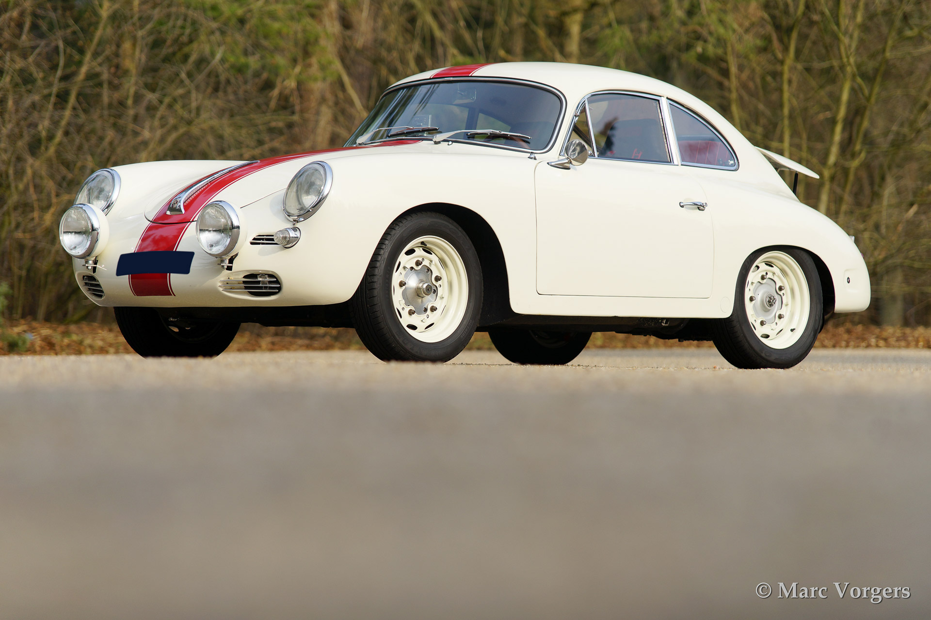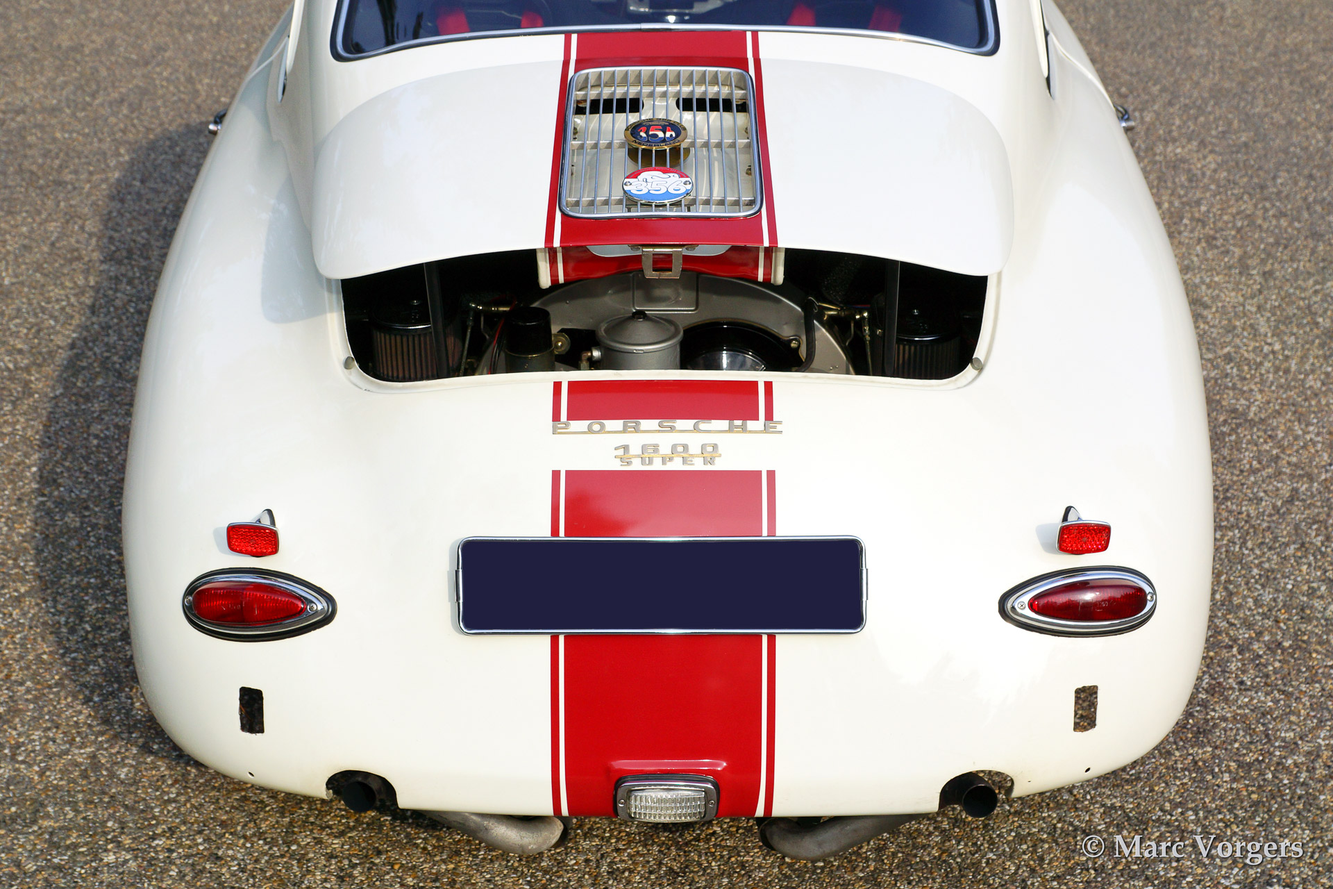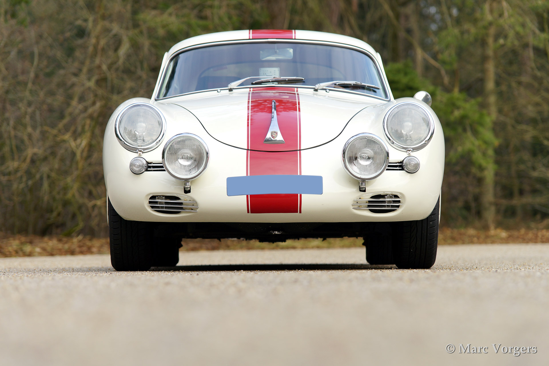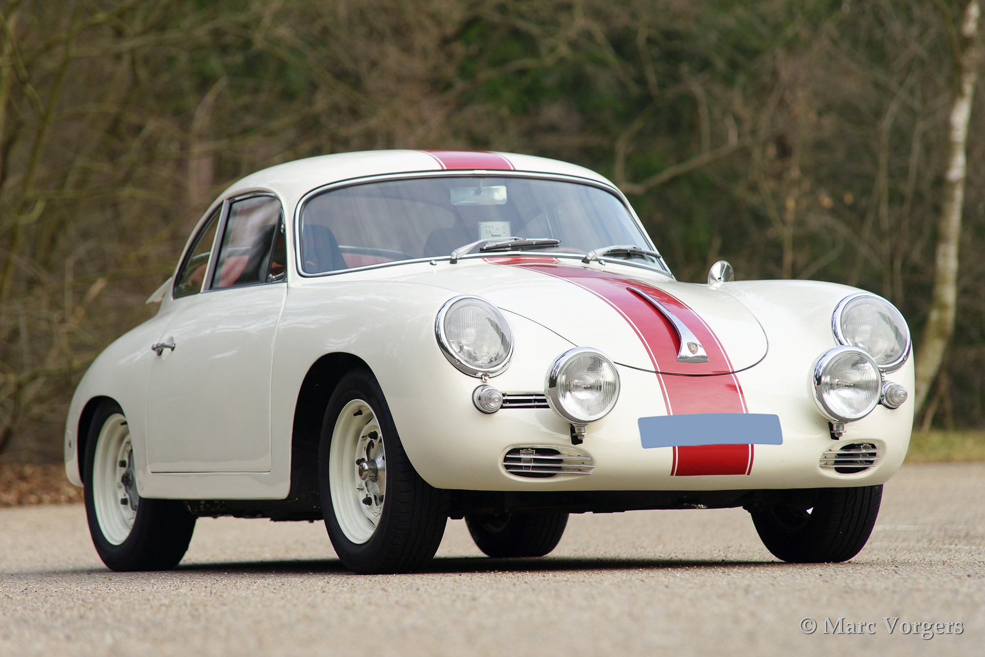 Porsche 356 B 1600 Super coupe, bouwjaar 1961. Kleur wit met een rode sportstreep. Interieur met zwarte rally stoelen, zwart tapijt en rode deurpanelen. Deze geweldige Porsche 356 B 1600 Super werd nieuw verkocht in Amerika. In de jaren 1990 werd de auto uitvoerig gerestaureerd. Deze 356 is geprepareerd voor historische (rally) evenementen. De bumpers werden weggelaten, speciale sportstoelen gemonteerd, en schijfremmen aan de voorwielen aangebracht. Verder is de auto uitgerust met een Trip Master, stopwatch, extra verlichting en een Nardi sportstuur.