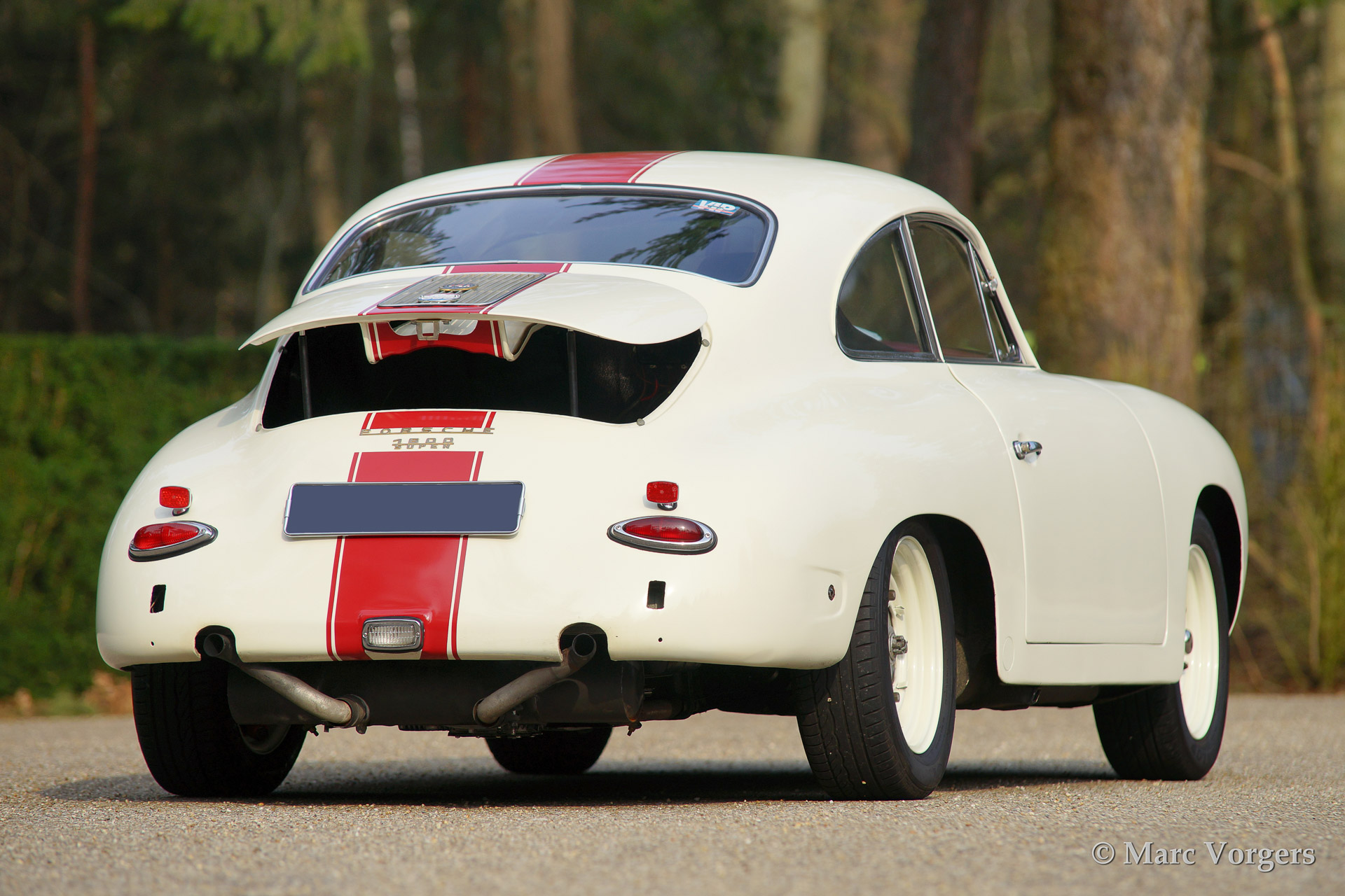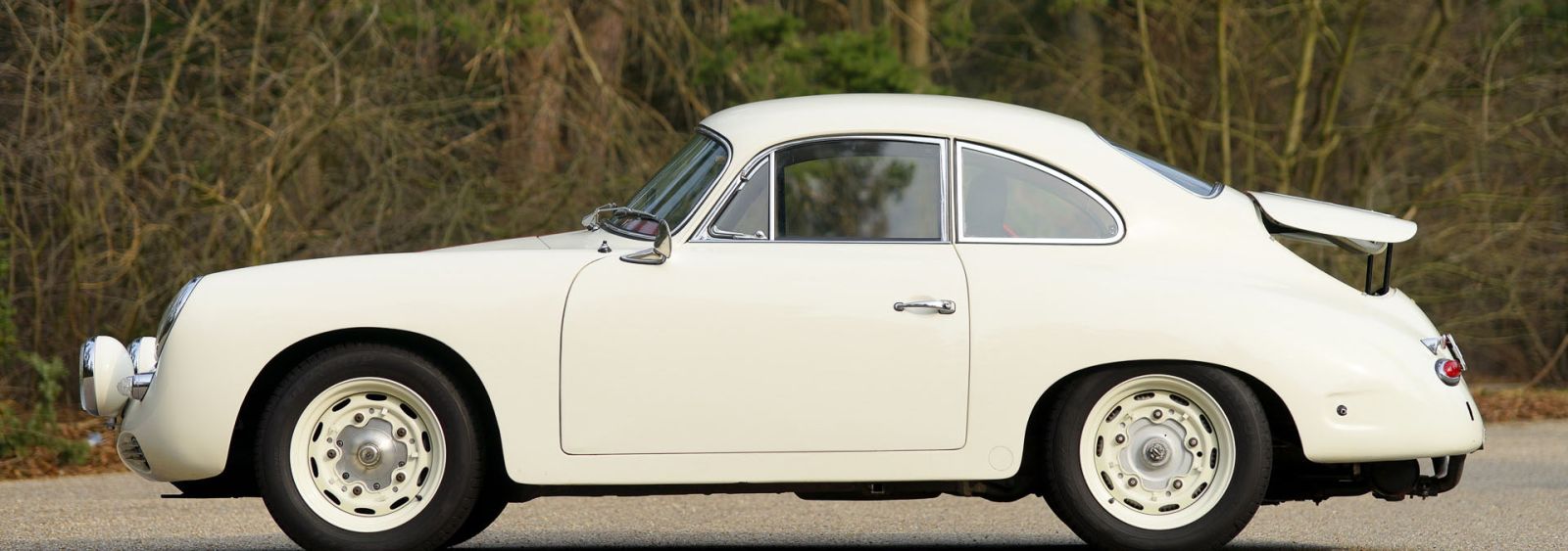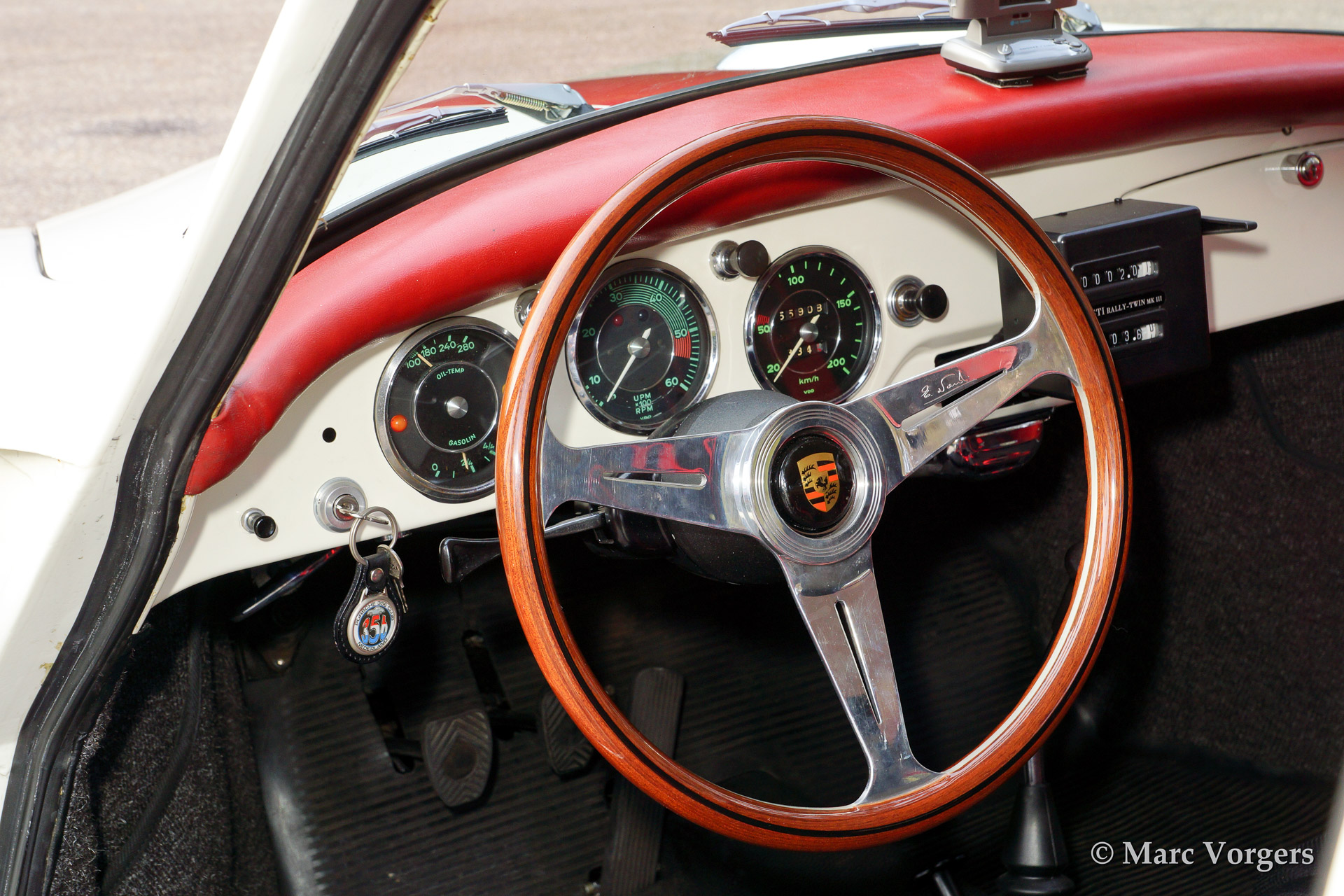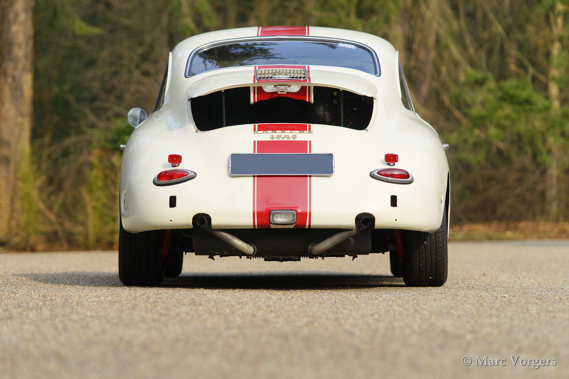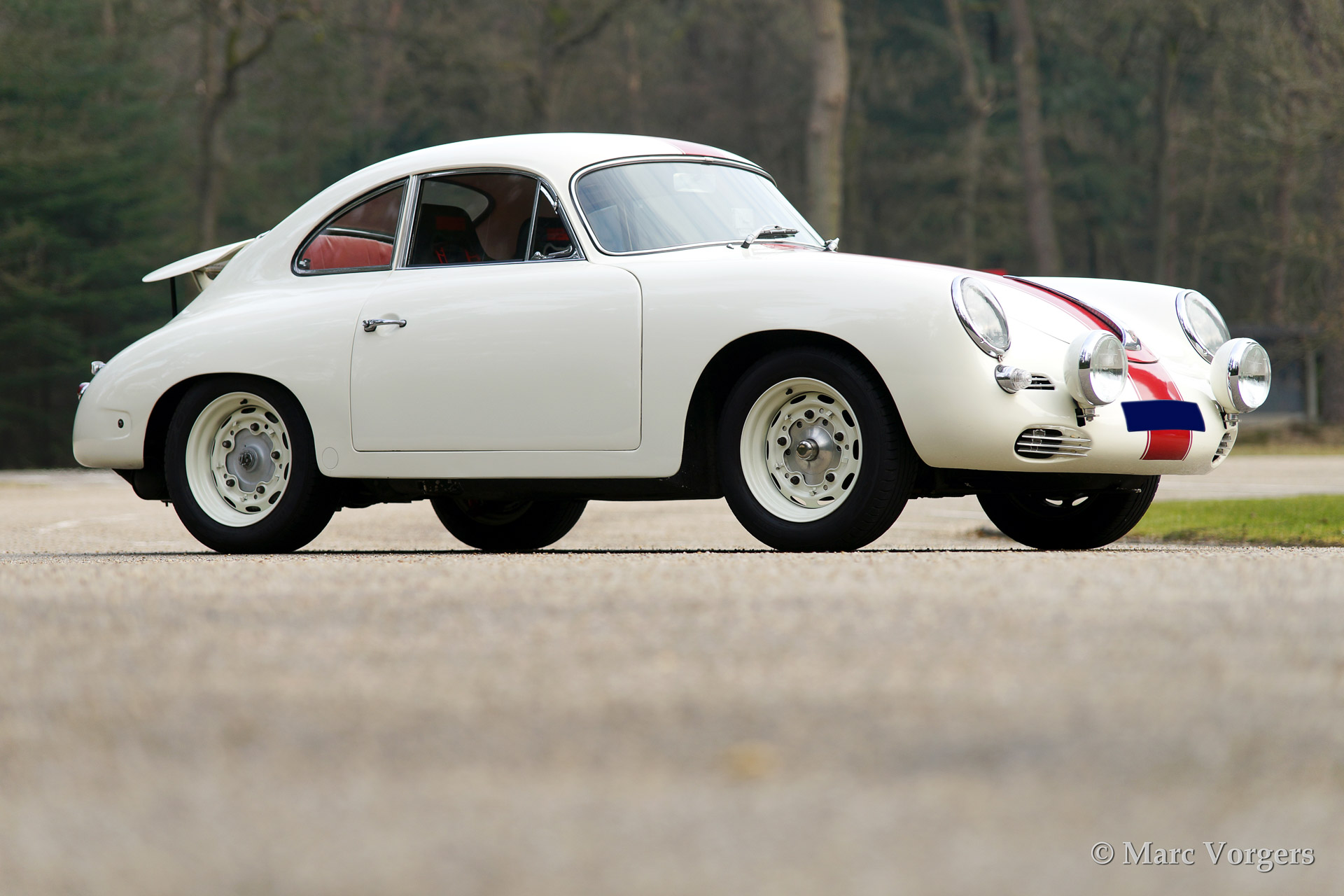 Porsche 356 B 1600 Super coupe, bouwjaar 1961. Kleur wit met een rode sportstreep. Interieur met zwarte rally stoelen, zwart tapijt en rode deurpanelen. Deze geweldige Porsche 356 B 1600 Super werd nieuw verkocht in Amerika. In de jaren 1990 werd de auto uitvoerig gerestaureerd. Deze 356 is geprepareerd voor historische (rally) evenementen. De bumpers werden weggelaten, speciale sportstoelen gemonteerd, en schijfremmen aan de voorwielen aangebracht. Verder is de auto uitgerust met een Trip Master, stopwatch, extra verlichting en een Nardi sportstuur.
