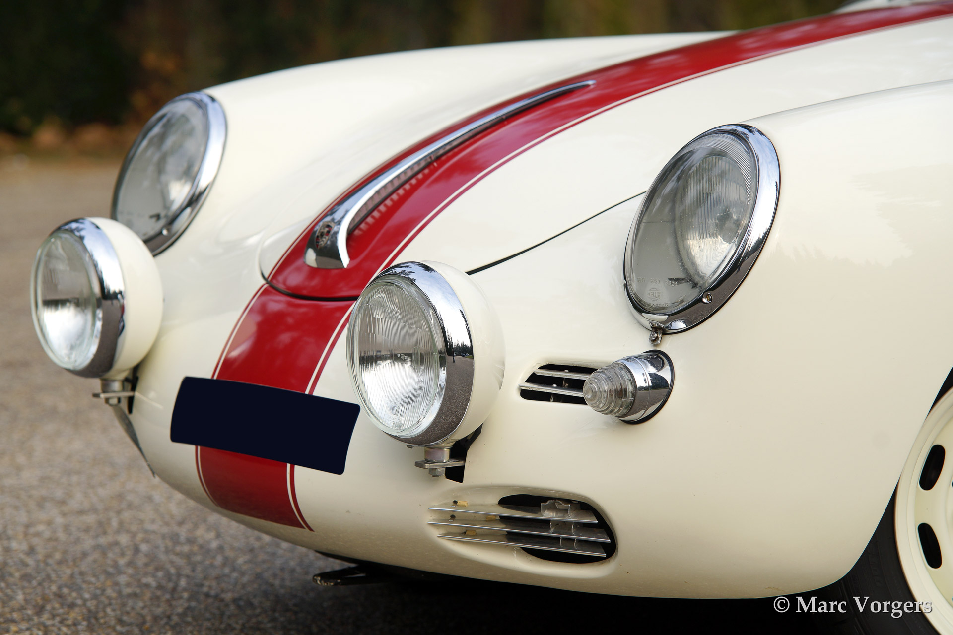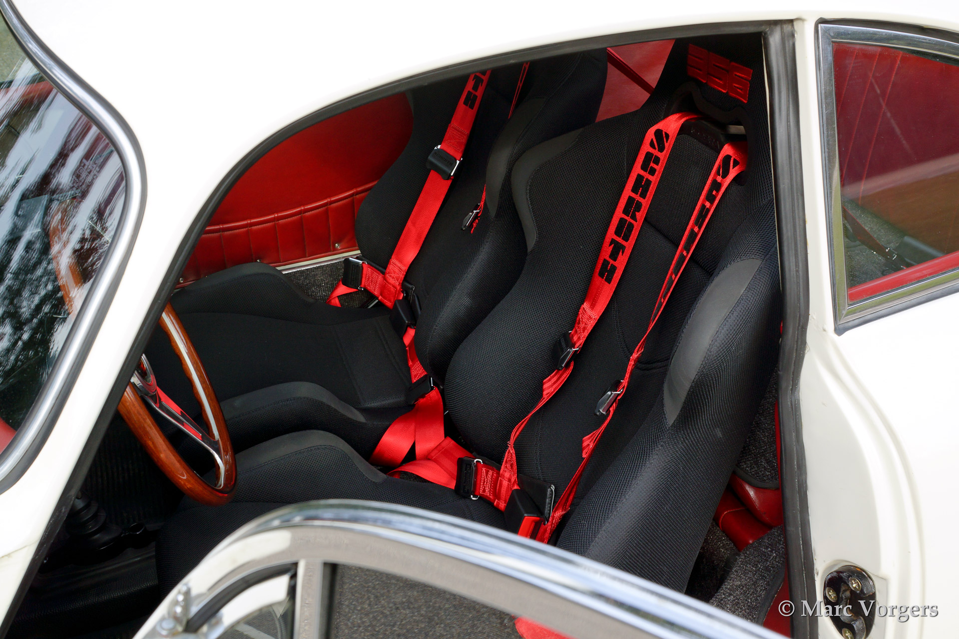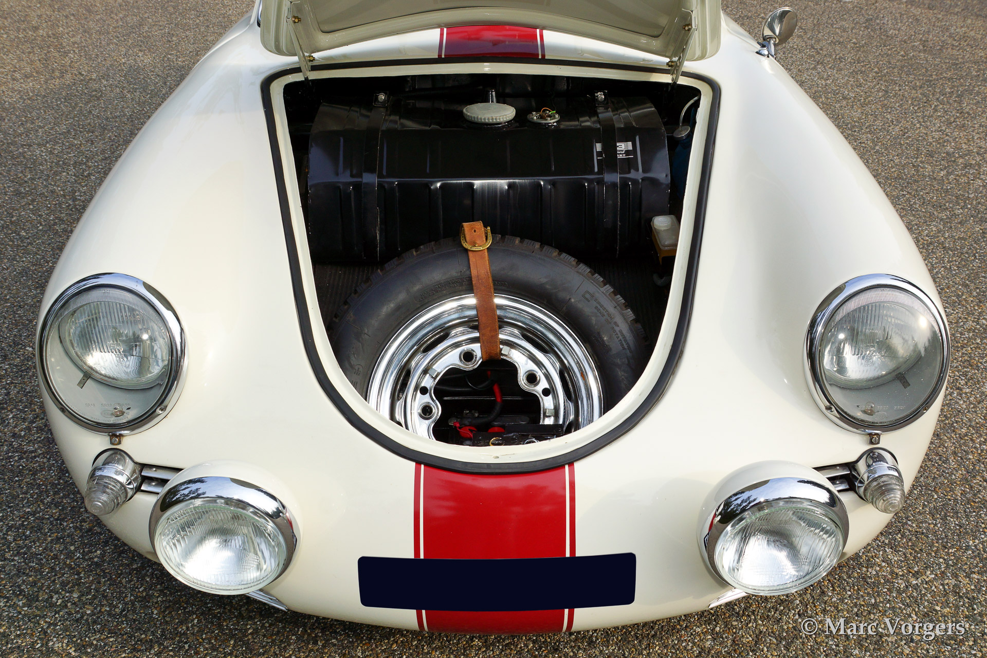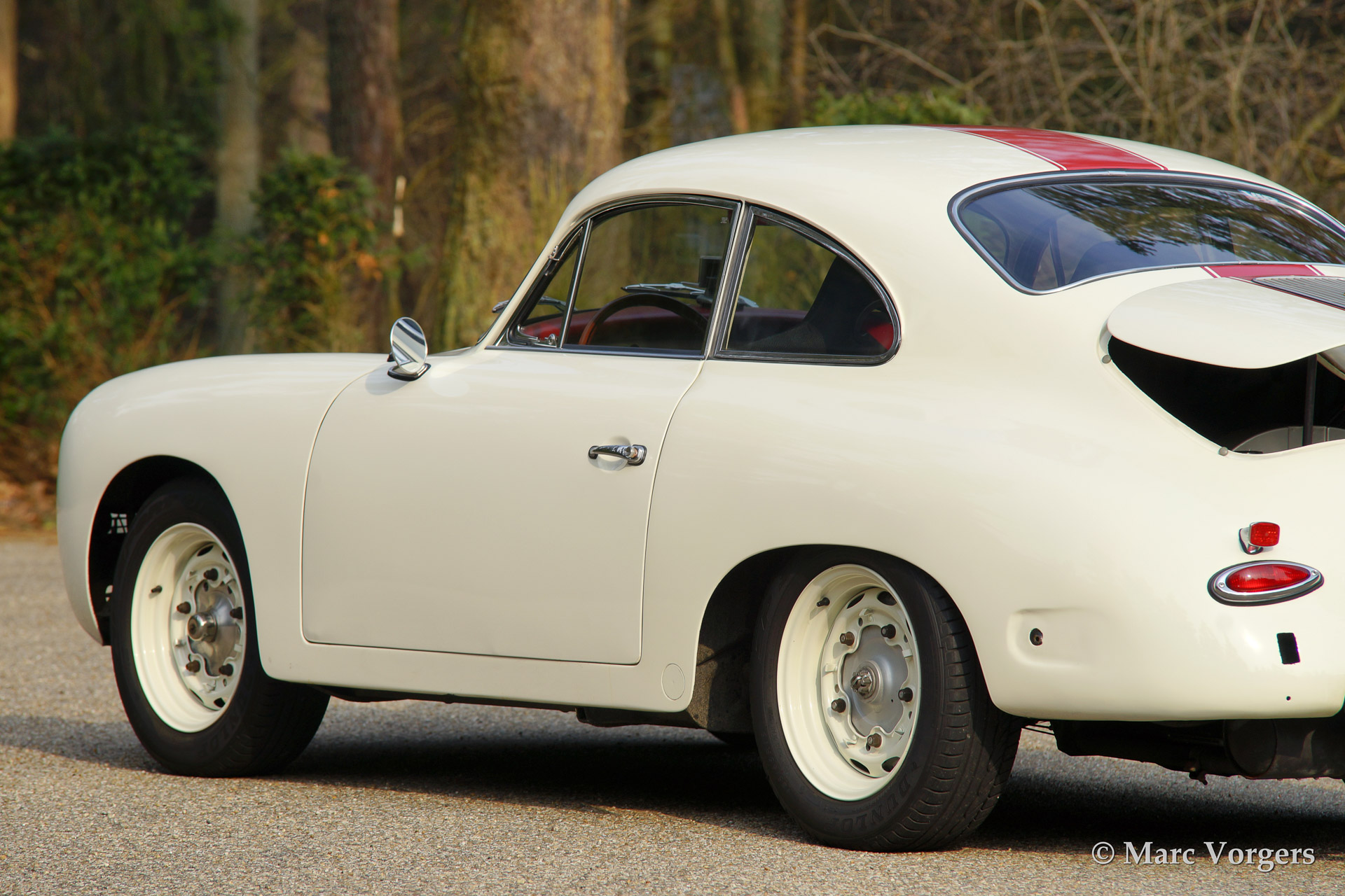 Porsche 356 B 1600 Super coupe, bouwjaar 1961. Kleur wit met een rode sportstreep. Interieur met zwarte rally stoelen, zwart tapijt en rode deurpanelen. Deze geweldige Porsche 356 B 1600 Super werd nieuw verkocht in Amerika. In de jaren 1990 werd de auto uitvoerig gerestaureerd. Deze 356 is geprepareerd voor historische (rally) evenementen. De bumpers werden weggelaten, speciale sportstoelen gemonteerd, en schijfremmen aan de voorwielen aangebracht. Verder is de auto uitgerust met een Trip Master, stopwatch, extra verlichting en een Nardi sportstuur.
