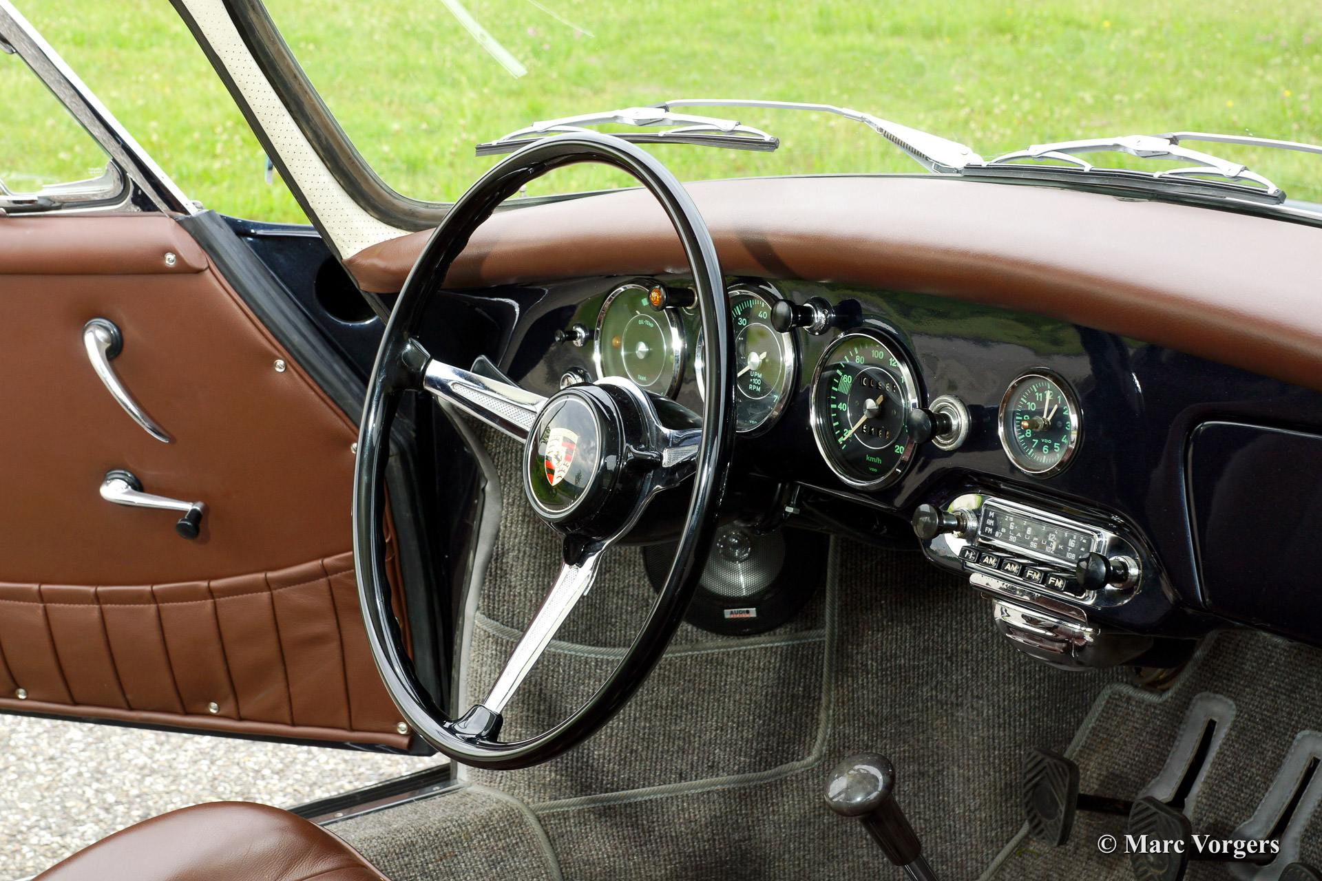 Porsche 356 B T5 coupe, bouwjaar 1959. Chassis nummer 1089XX, motornummer P6001XX. Kleur donkerblauw met een bruin lederen interieur. Deze geweldige Porsche 356 werd geïmporteerd uit de USA. De automobiel is in Nederland uitvoerig gerestaureerd, de restauratie was compleet in 2013. Een fotoreportage en facturen van de restauratie zijn aanwezig. Deze Porsche 356 verkeert in sublieme topstaat, concours! Sinds de restauratie heeft de auto 983 kilometer gereden. In vroegere jaren werd de originele motor vervangen door een krachtigere 356 SC motor. Deze motor is gereviseerd door een Porsche specialist. De auto is voorzien van de mooie optionele mistlampen aan de voorzijde, een klassieke radio, optionele originele hoofdsteunen, een kilometerteller (ipv. mijlen) en een leuke kleine 'jerrycan' die precies in het reservewiel past!