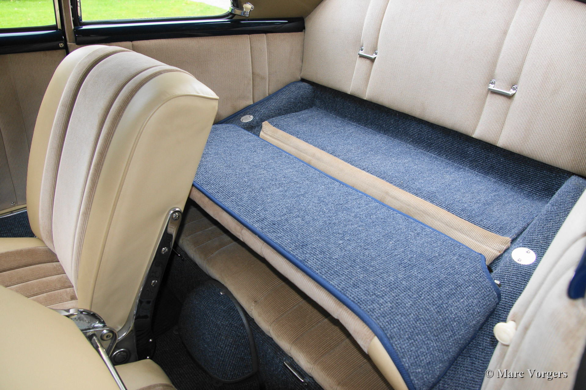 Porsche 356 Pre A 1500 Super, bouwjaar 1953. 'Adria blue' metallic met een beige leder/corduroy interieur, beige stoffen hemel en blauw tapijt. Topklasse gerestaureerd in Nederland door Rens Ruts.
