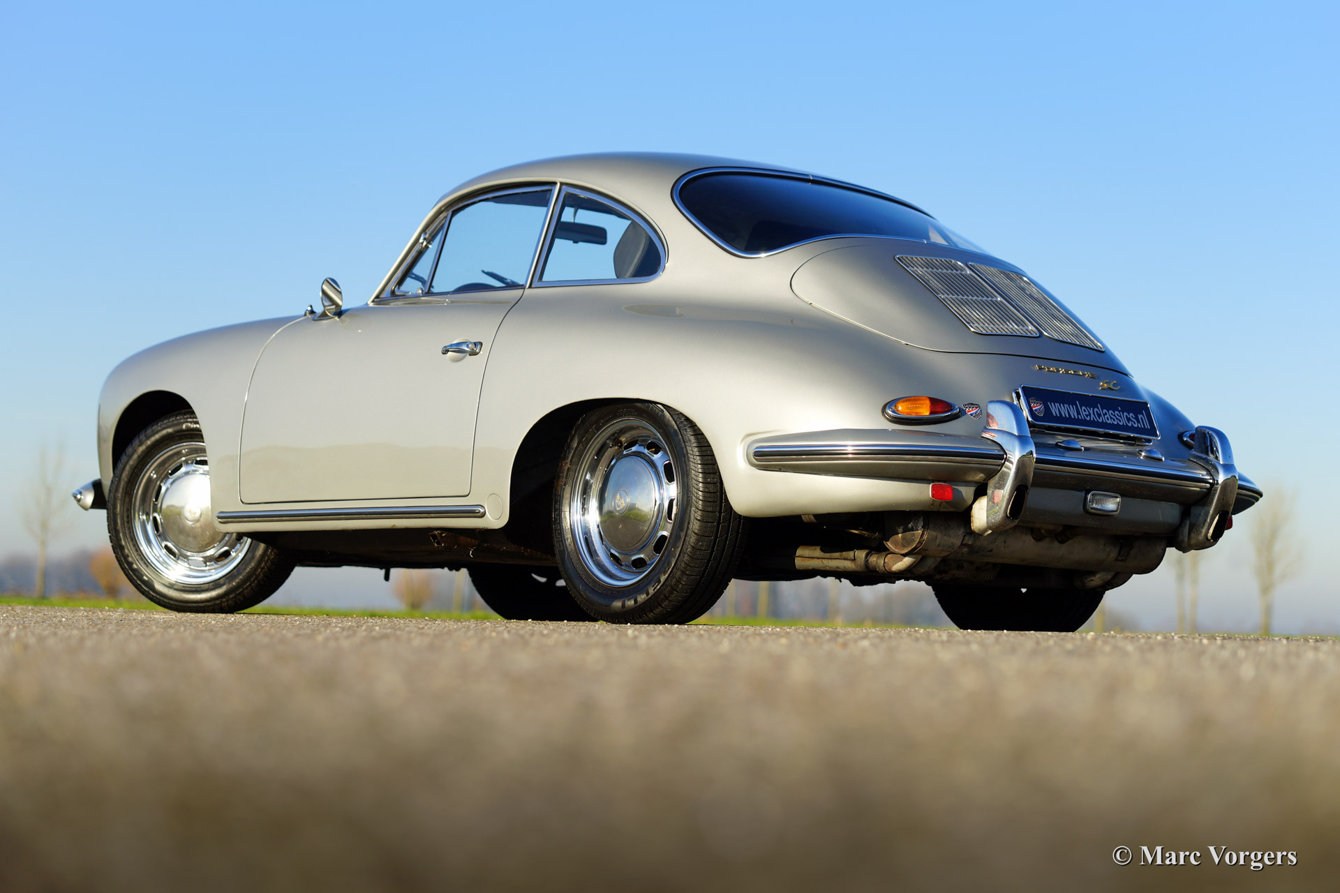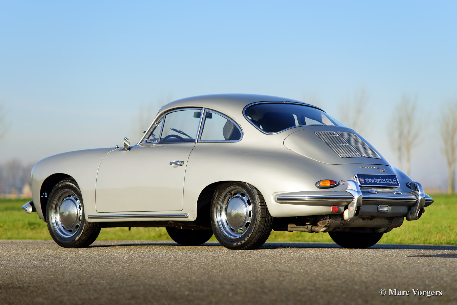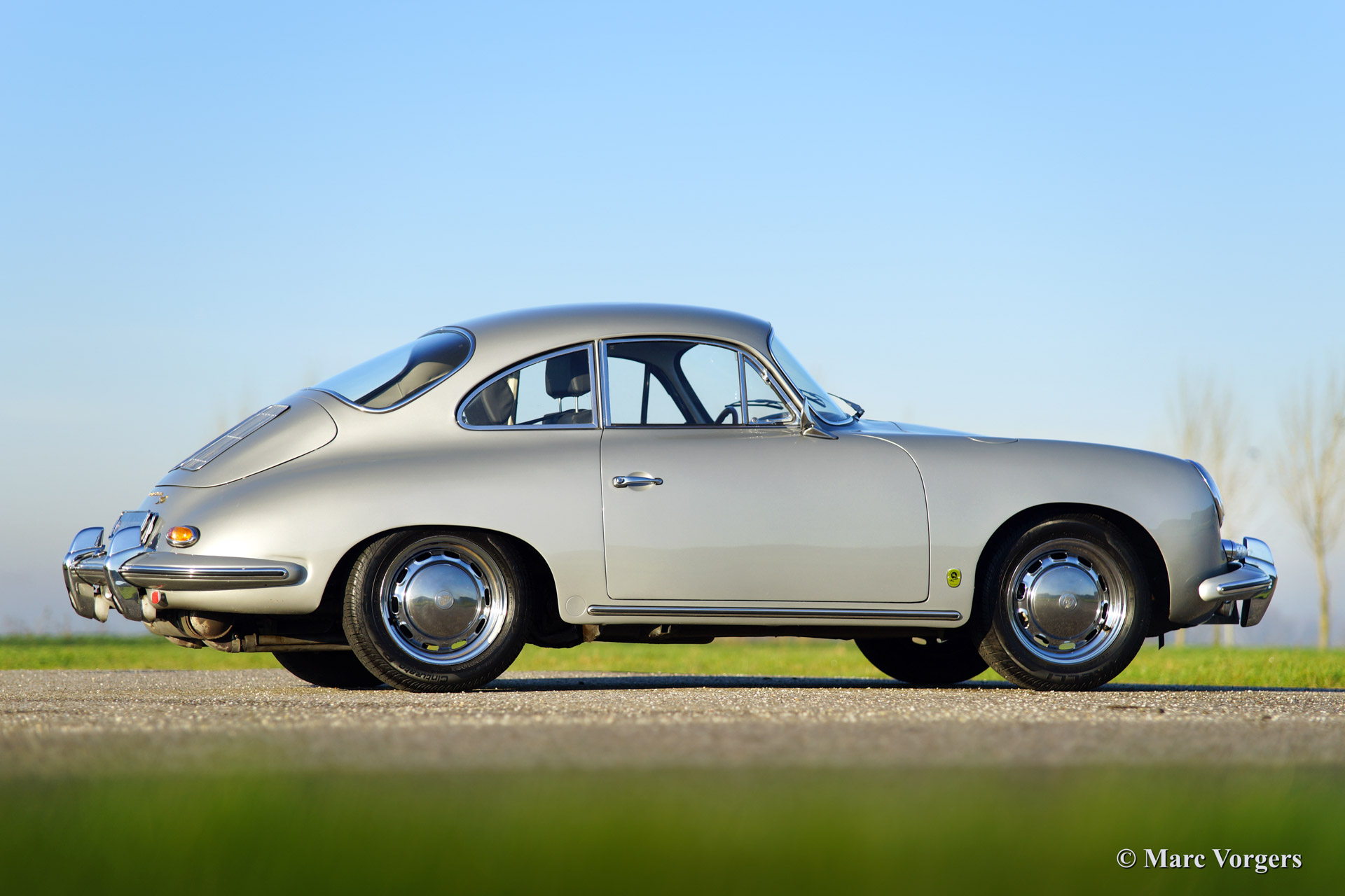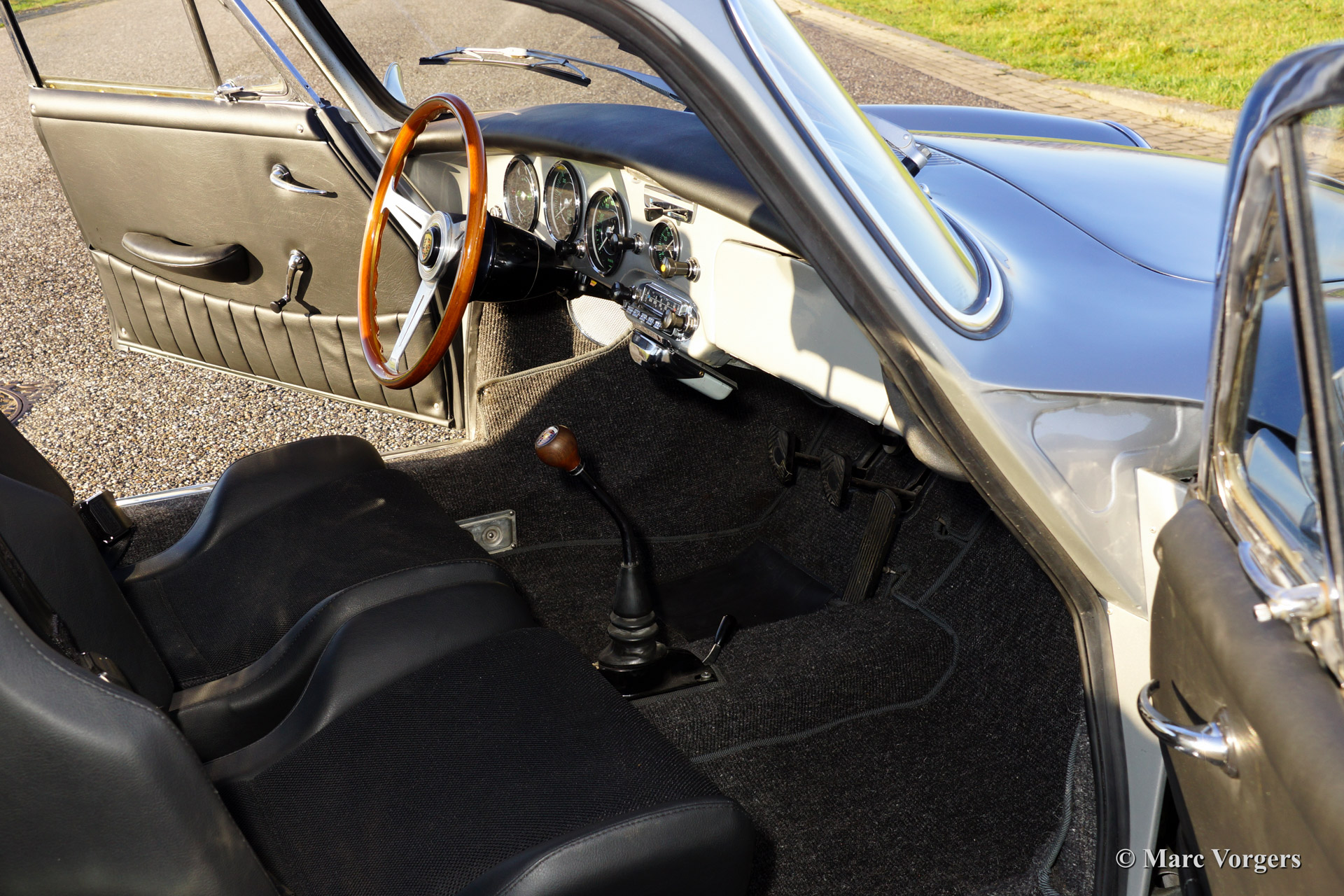 Porsche 365 C coupe, bouwjaar 1965. Kleur zilver metallic met een zwart interieur voorzien van modernere comfort stoelen.