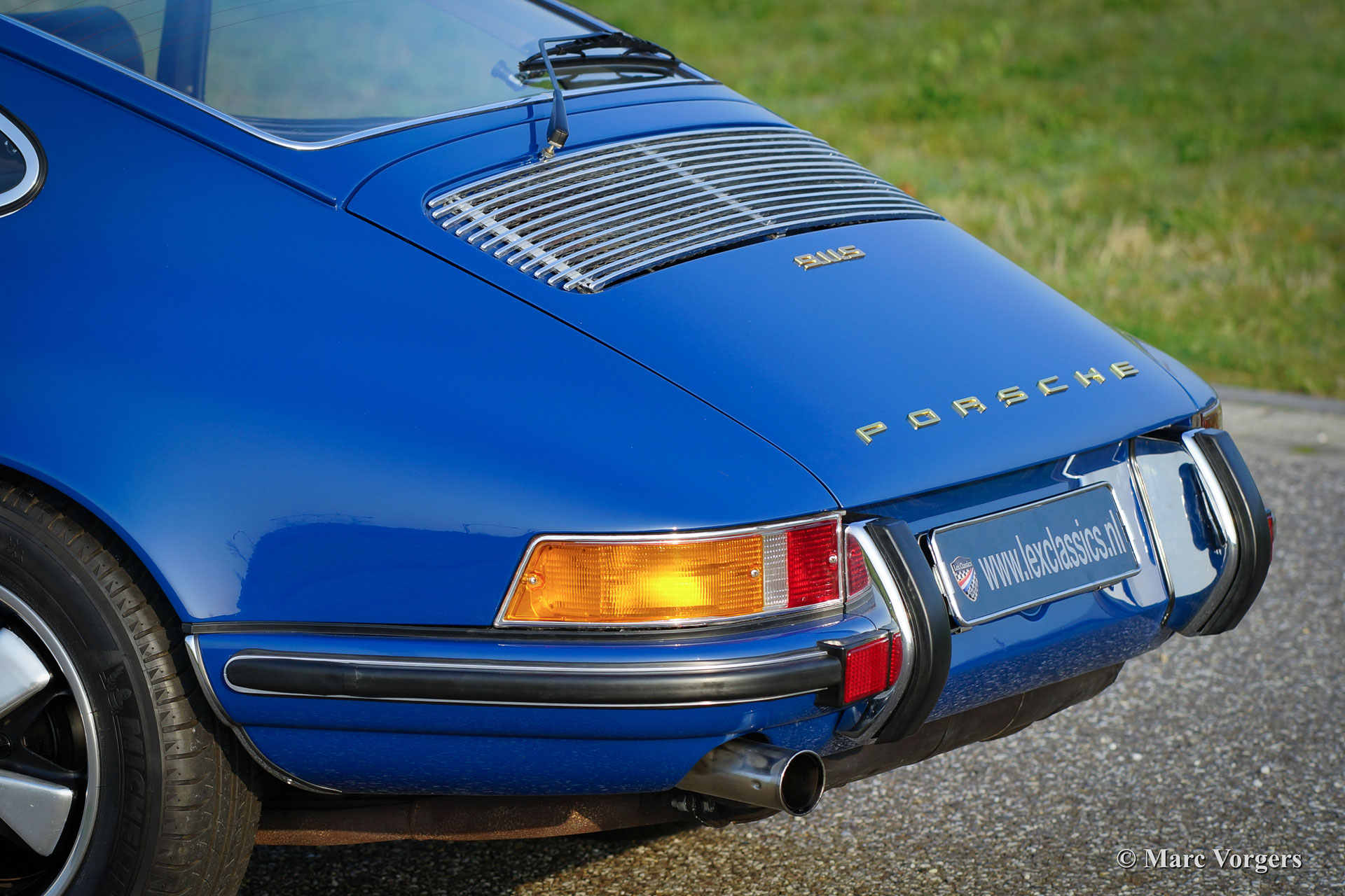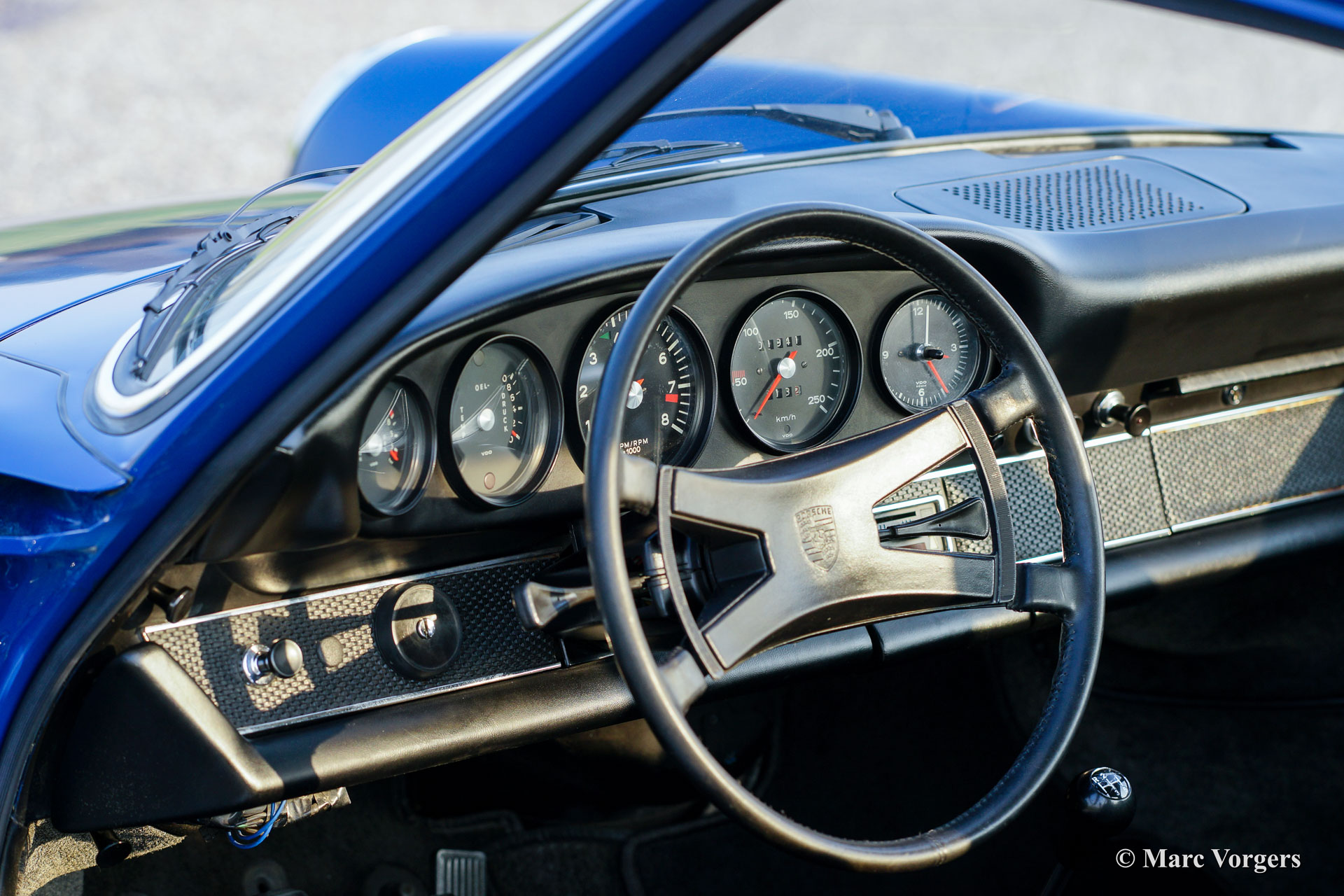 Porsche 911 2.0 S, bouwjaar 1969. Kleur blauw met een zwart interieur. Deze prachtige Porsche 911 werd in het jaar 2012 uitvoerig gerestaureerd naar oorspronkelijke specificaties. Hierbij werd zoveel mogelijk origineel gelaten. Zo werden de originele hemel en vloerbedekking gereinigd en teruggeplaatst. Er werden uiteraard wel componenten vernieuwd zoals de koplampunits, alle rubbers, de stoelbekleding en de dashboard bekleding. De onderzijde van de auto is in perfecte volledig originele staat.