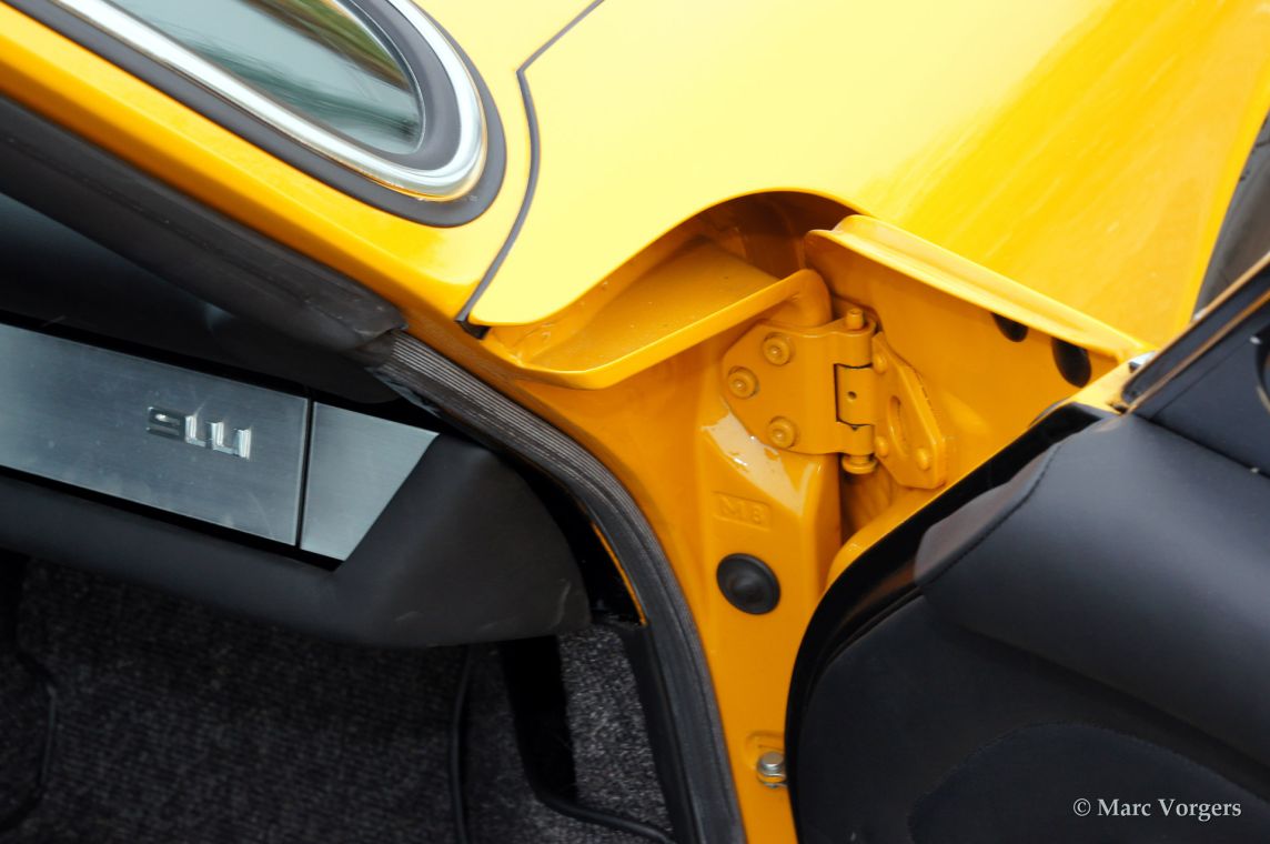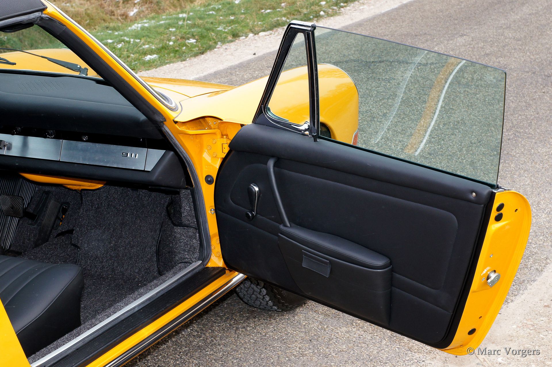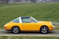 Porsche 911 2.0L Targa Sportomatic, bouwjaar 1968. Kleur Bahama geel (code 6605). Zwart lederen interieur met grijs tapijt. (Dit is een 1968 A-serie model dat in 1967 werd gebouwd - de laatste uitvoering met korte wielbasis.) Deze 911 is uitgerust met een Sportomatic versnellingsbak (schakelen zonder koppelen) en de auto werd gerestaureerd naar perfectie. Deze Targa is voorzien van een optionele glazen achterruit. Standaard was de 911 Targa in deze periode nog uitgerust met een zacht plastic achterruit ('soft window').