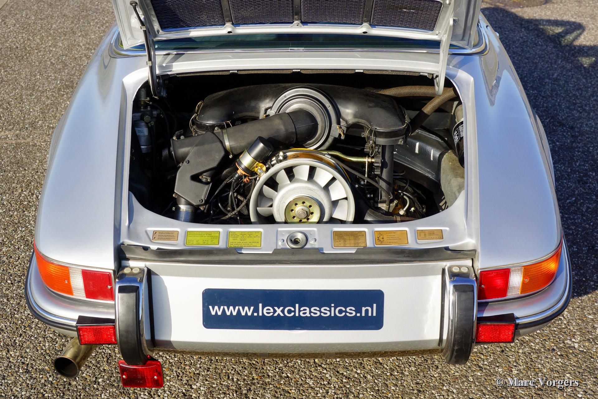 Porsche 911 2.4 T Targa, bouwjaar 1972. Kleur zilvergrijs metallic met een zwart lederen interieur. Deze 911 werd uitvoerig gerestaureerd door een Porsche specialist 3.068 kilometer geleden. Een fotoreportage van de restauratie is aanwezig. Deze Porsche 911 Targa verkeert in sublieme staat.