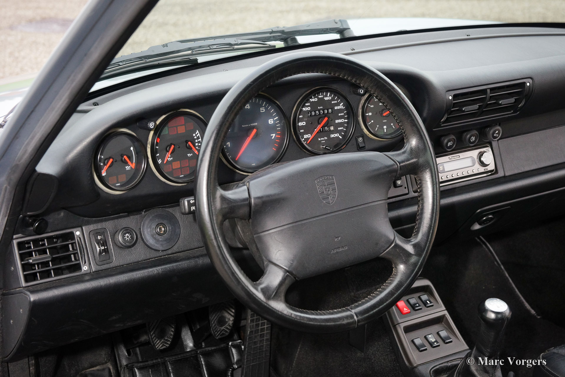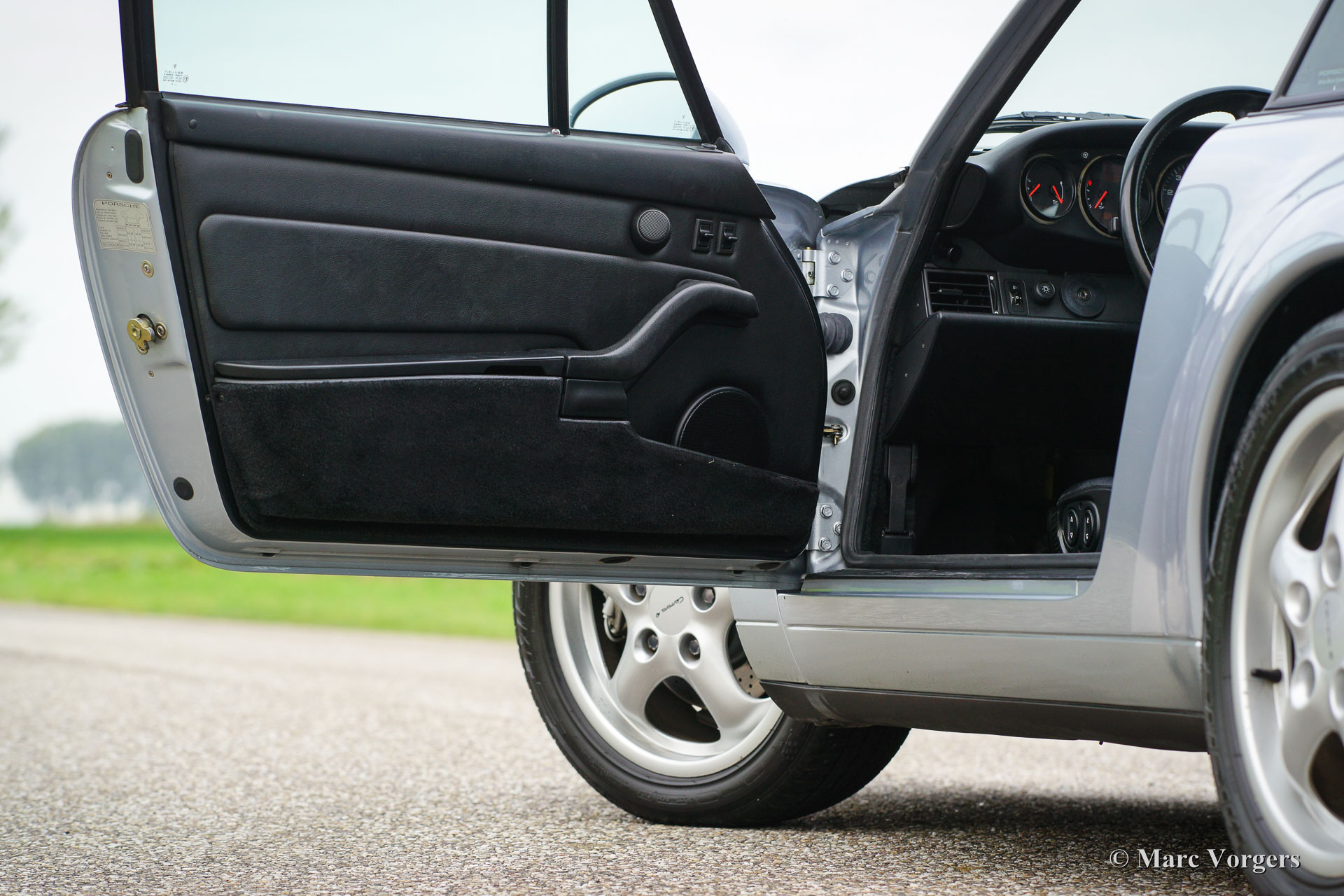 Porsche 911/993 Carrera 4, bouwjaar 1995. Kleur Polar Silver metallic met een zwart lederen interieur. Deze prachtige Porsche 993 werd nieuw verkocht in Italie. Vanaf nieuw heeft de auto 95.583 kilometer gereden. De auto verkeert in excellente originele staat, zelfs de lak is nog origineel! Deze vierwiel aangedreven Porsche 911 Carrera 4 rijdt perfect en de auto is volgens het boekje en stipt onderhouden. Deze Porsche is zeer goed gedocumenteerd, de originele boekjes, documentatie, afgestempeld onderhoudsboekje en een factuur van recent groot onderhoud zijn aanwezig. Een uitstekende investering in een van de laatste en zeer populaire luchtgekoelde Porsche modellen!