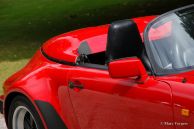 Porsche Carrera 3.2 Speedster, bouwjaar 1989. Kleur rood met een zwart lederen interieur en een zwarte soft top. Deze prachtige 911 Speedster werd nieuw geleverd in Nederland op 28 februari 1989. Deze Porsche Carrera 3.2 Speedster heeft vanaf nieuw slechts 6390 km. gereden. De auto werd geproduceerd in een gelimiteerde oplage van 2103 exemplaren.