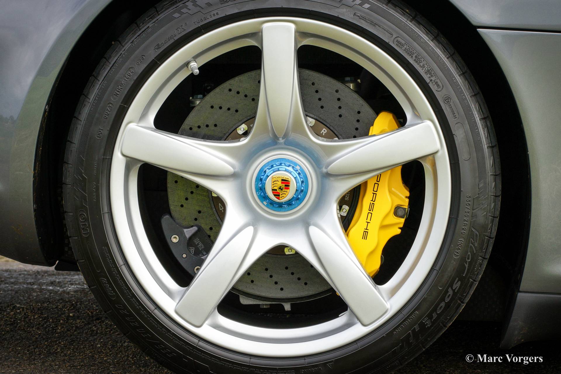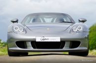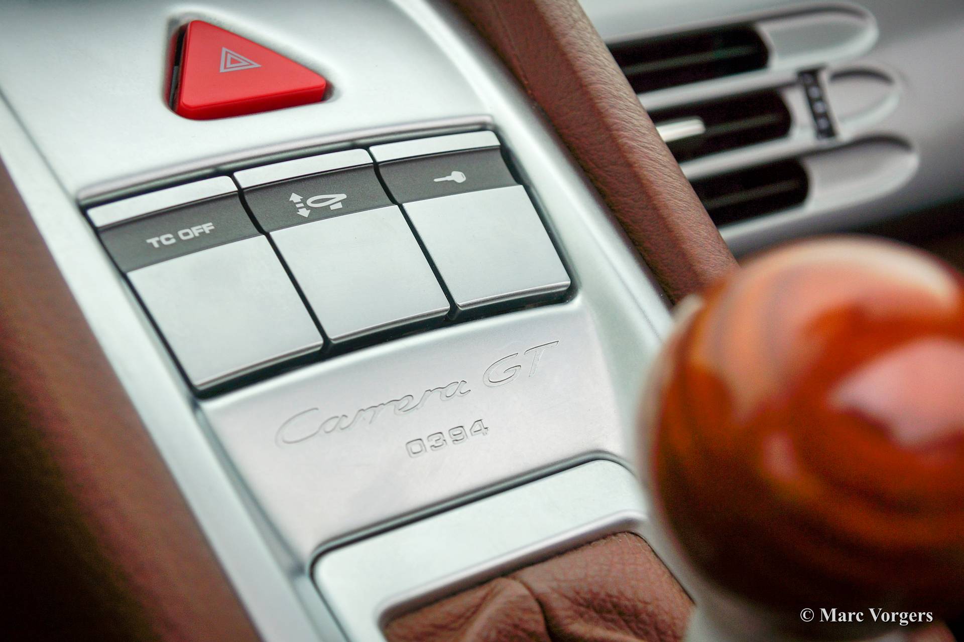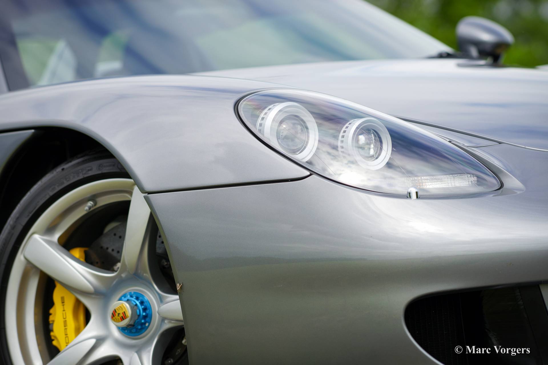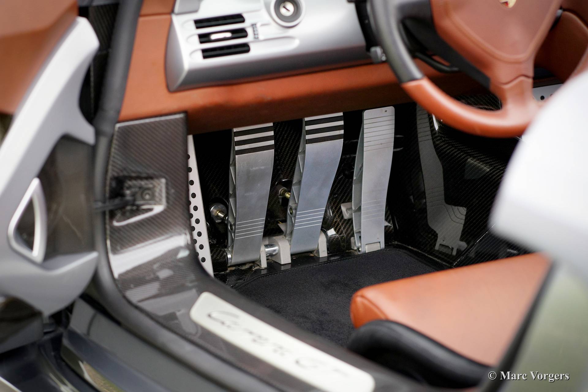 Porsche Carrera GT, bouwjaar december 2004. Kleur ‘Seal Grey’ (grijs metallic) met een tweekleurig lederen interieur in Ascot bruin met zwart. De Porsche Carrera GT is een zeer exclusieve super sport auto. Er werden slechts 1270 exemplaren gebouwd.