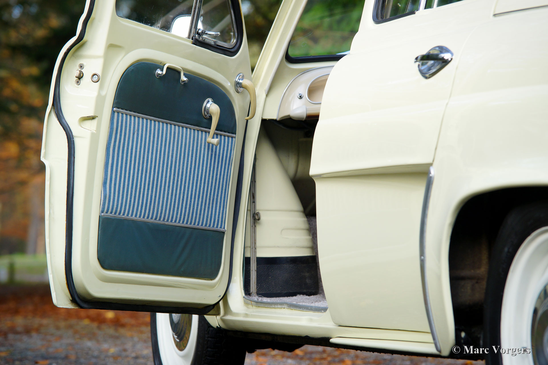 Renault Dauphine, bouwjaar 1957. Kleur pastelgeel met een wit/blauw gestreept interieur. Deze Renault werd in de jaren negentig uitvoerig gerestaureerd. De auto verkeert nog altijd in prachtige roestvrije staat! Sinds de restauratie heeft de auto circa 1000 kilometer gereden. Dit is een zeer fraaie Dauphine met alle details van een vroege versie. Hewt meest bijzondere is dat de auto Mille Miglia eligible is! Deze auto geeft u de kans om tegen geringe kosten deel te nemen aan deze beroemde en prestigieuze rally! De auto is gedocumenteerd met een aantal facturen, handboeken en originele brochures.