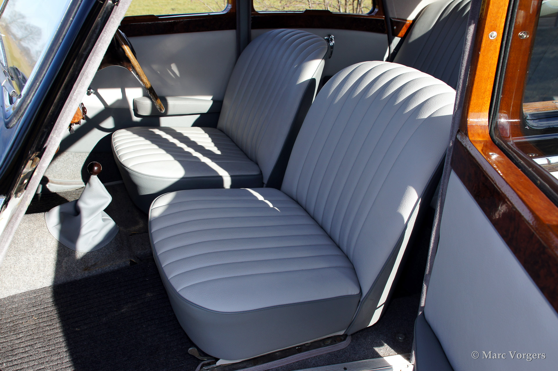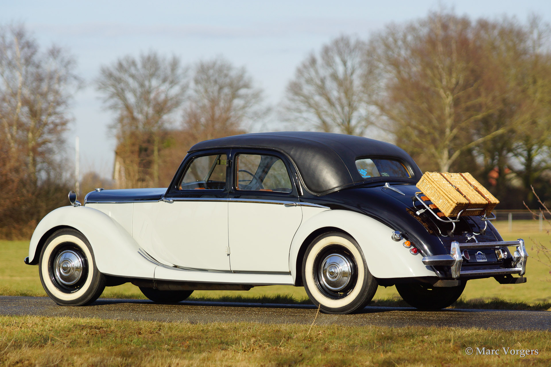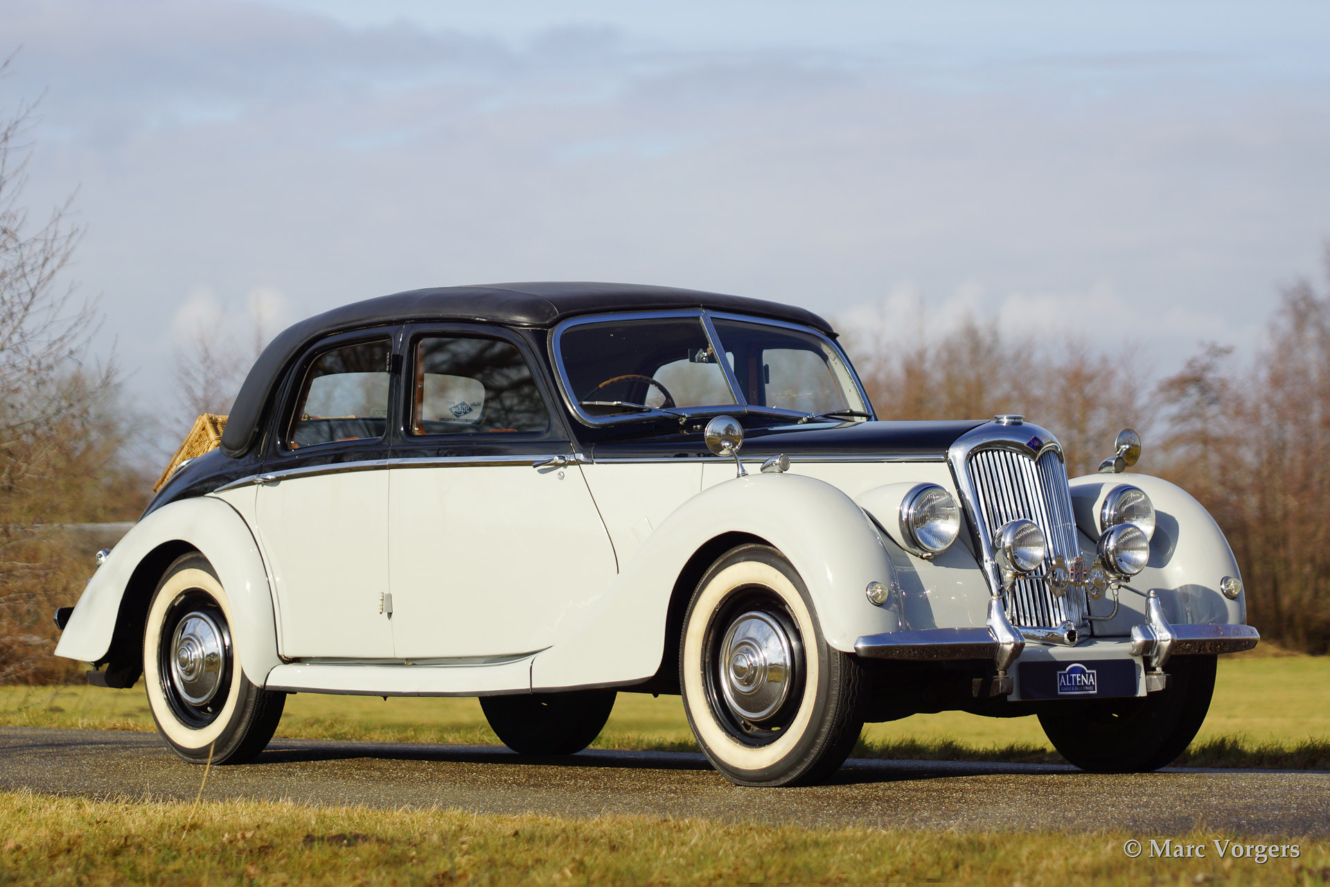 Riley RMA 1.5 Litre saloon, bouwjaar 1952. kleur 'two-tone' zwart boven grijs met een grijs lederen interieur. Deze prachtige Riley RMA verkeert in super originele staat, de auto toont alle originele details. De Riley RMA het eerste na-oorlogse Riley model. De RMA werd gebouwd van 1945 tot en met 1952. In totaal werden er 10.504 auto's van dit type gebouwd.