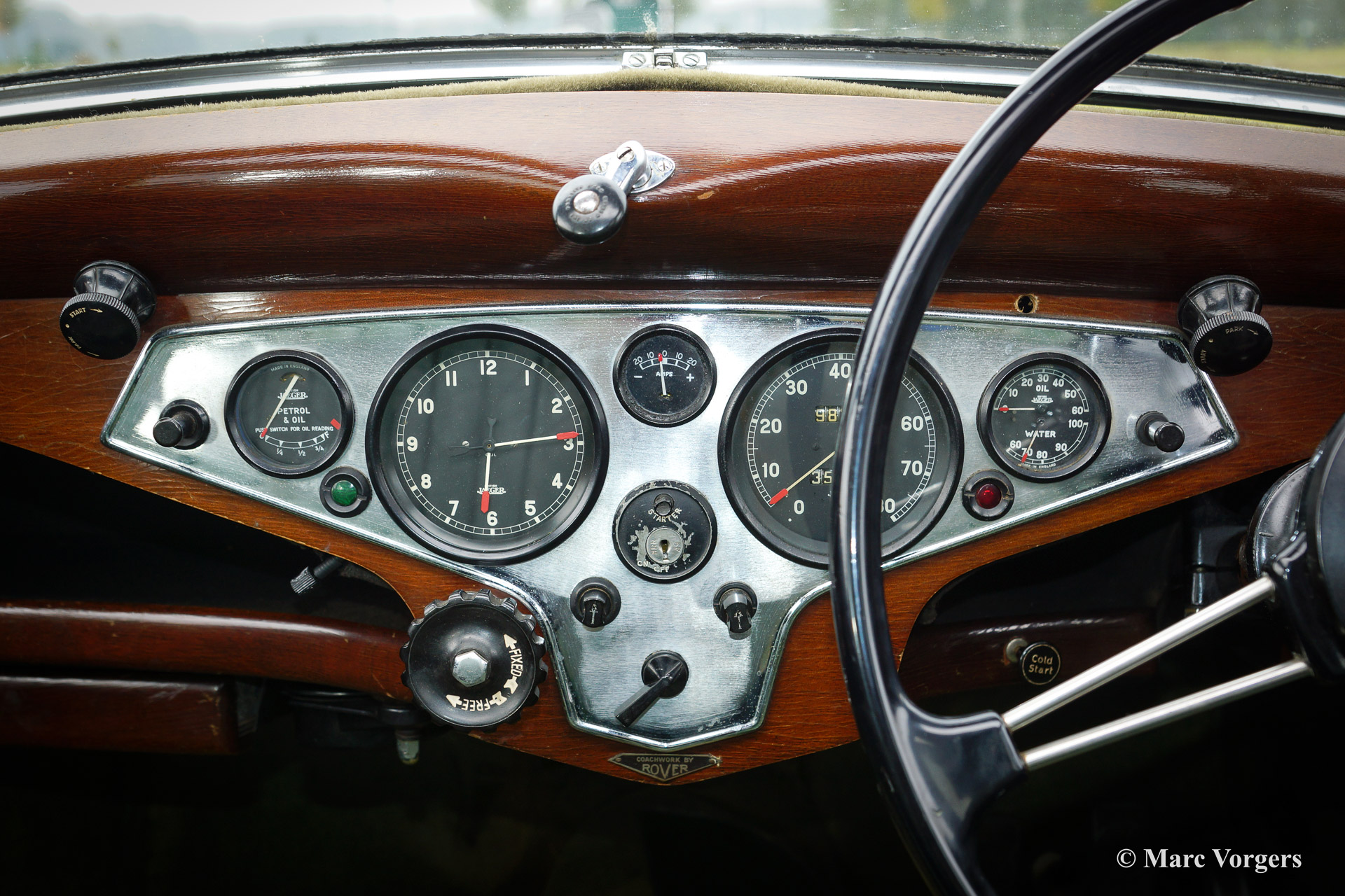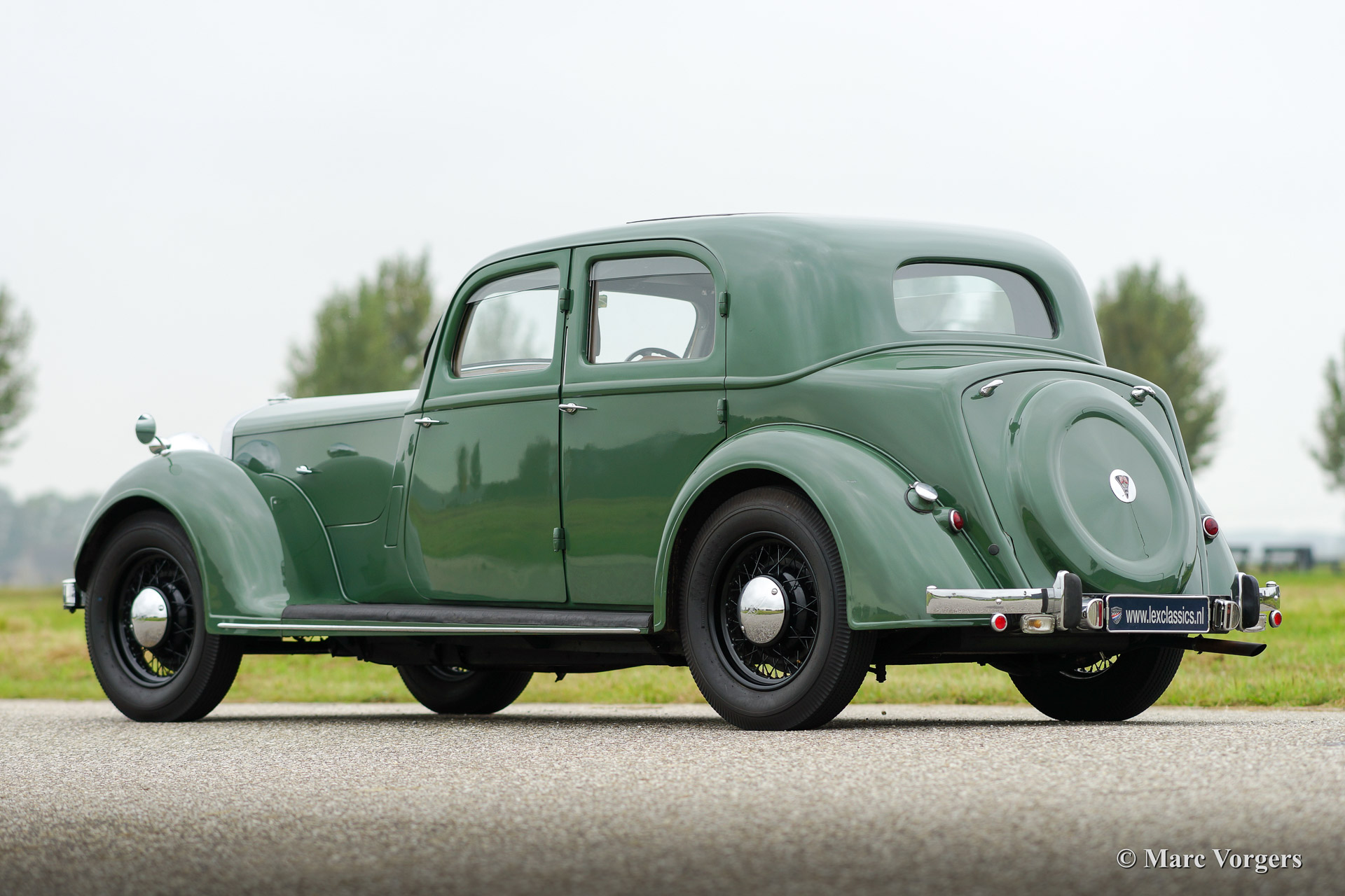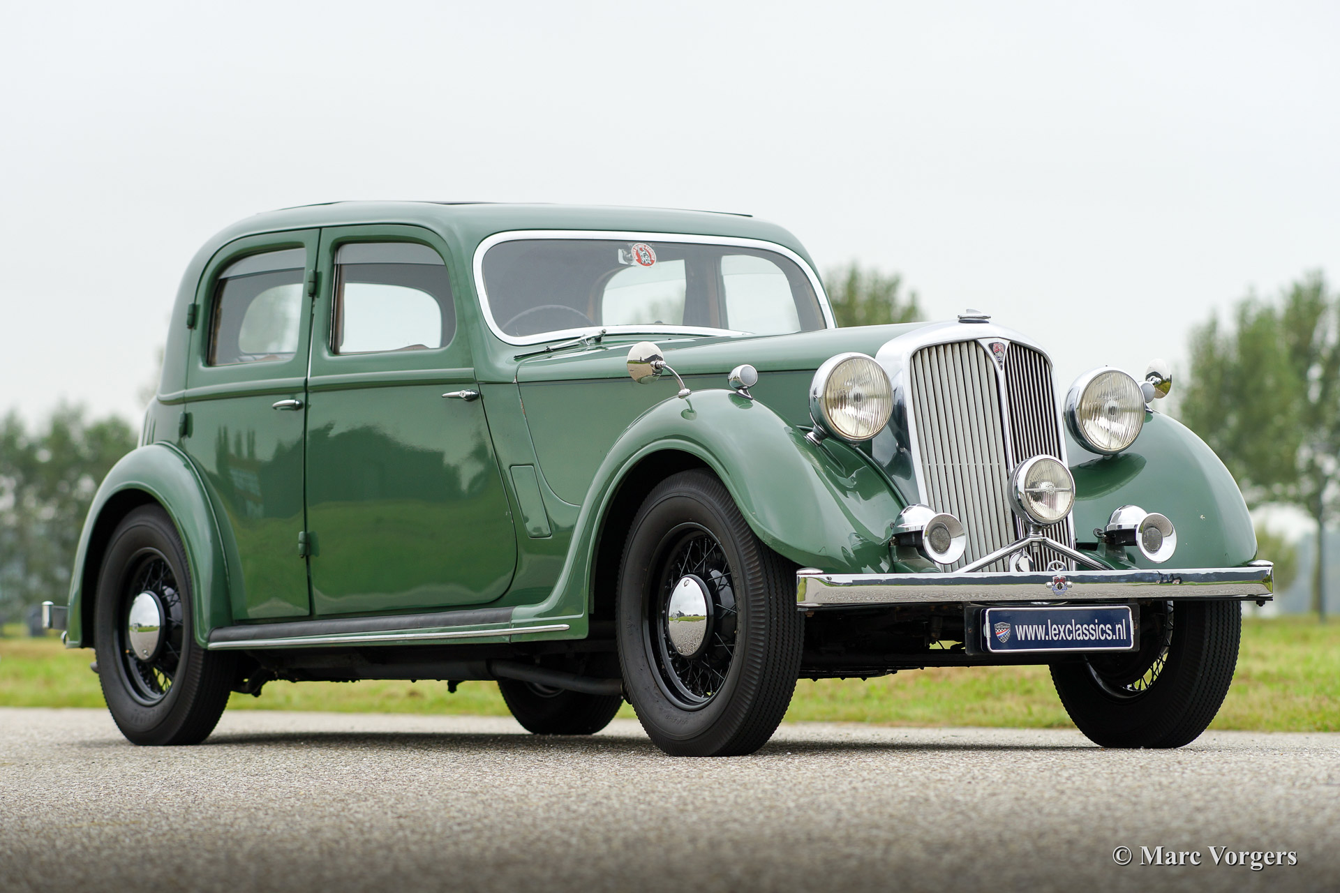 Rover 14 HP Sports Saloon, bouwjaar 1946. Kleur groen met een groen lederen interieur en groen tapijt. Deze prachtige Rover 14 Sports saloon verkeert in zeer goede originele staat. De automobiel werd in het verleden enkel een keer overgespoten, voor de rest is alles origineel en uiteraard voorzien van enige gebruikssporen. Een ware tijdmachine met een fraai patina. De auto is perfect gedocumenteerd, voorgaande eigenaren zijn bekend, Heritage certificaat, historische documenten en facturen zijn aanwezig. Er zijn zelfs enige reservedelen inbegrepen. Een voortreffelijke klassieke saloon met een soepele zescilinder motor en een origineel schuifdak!