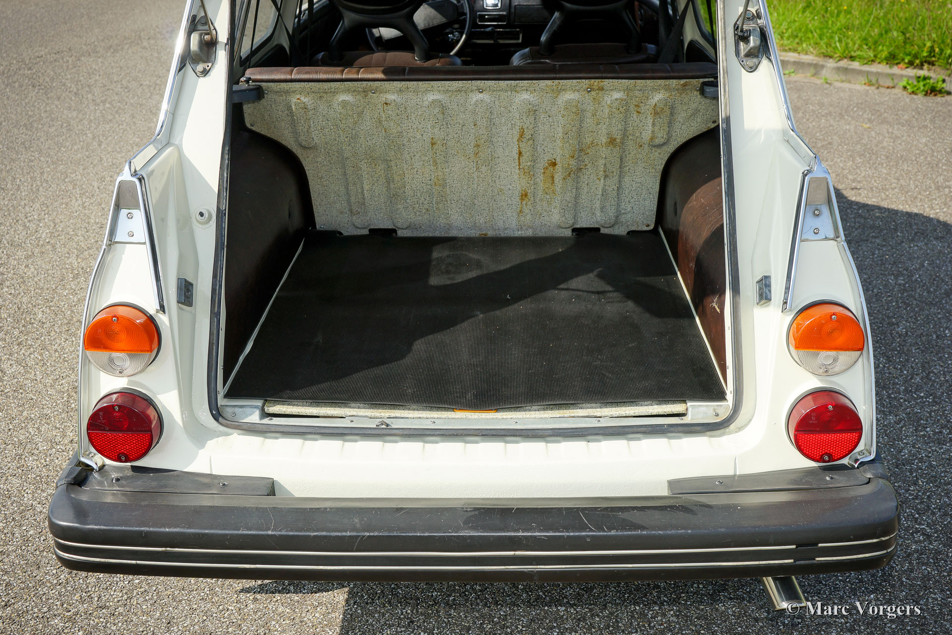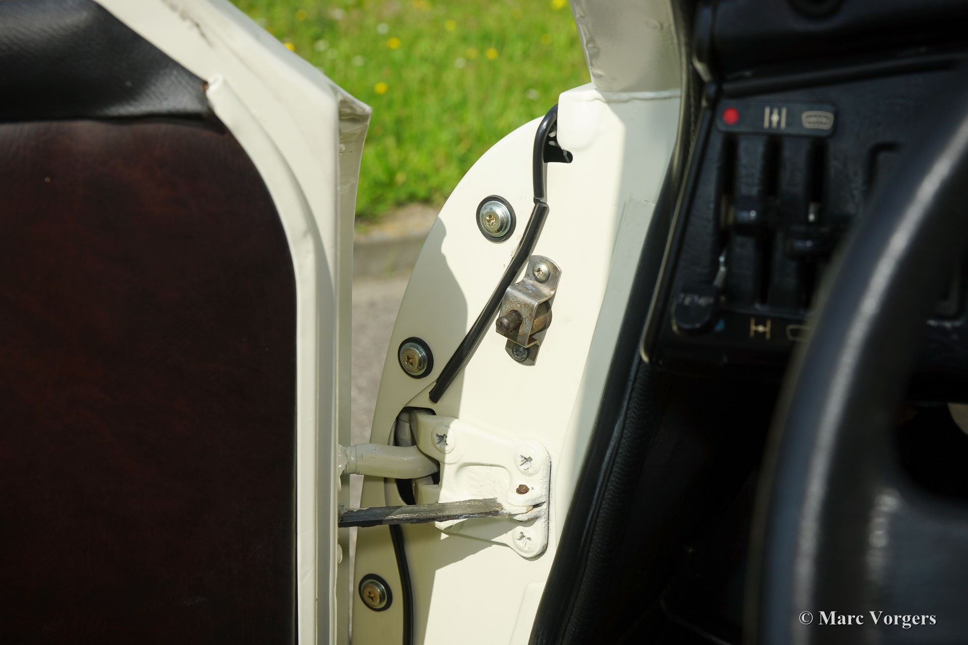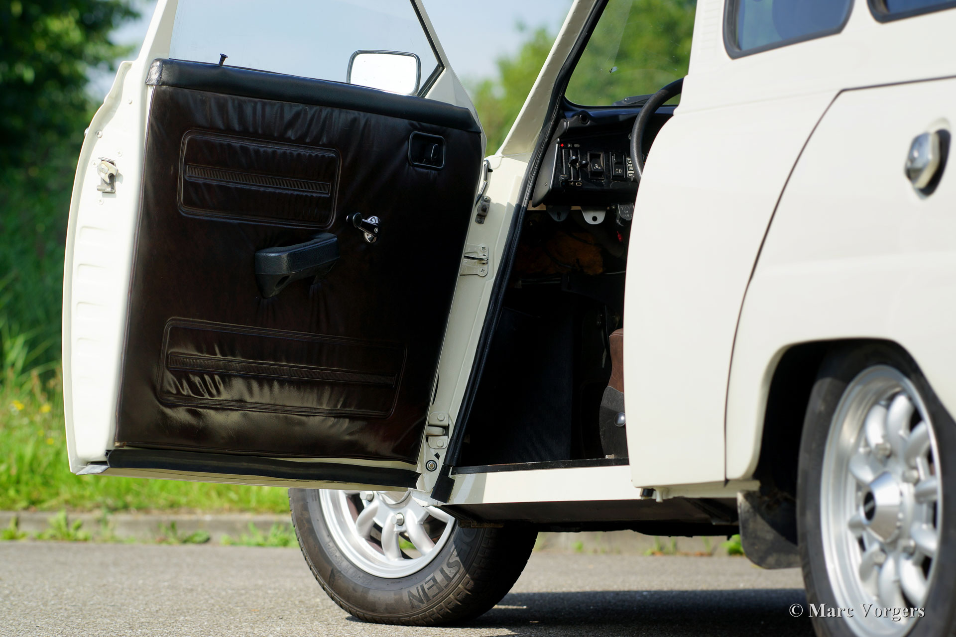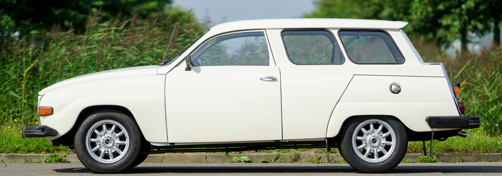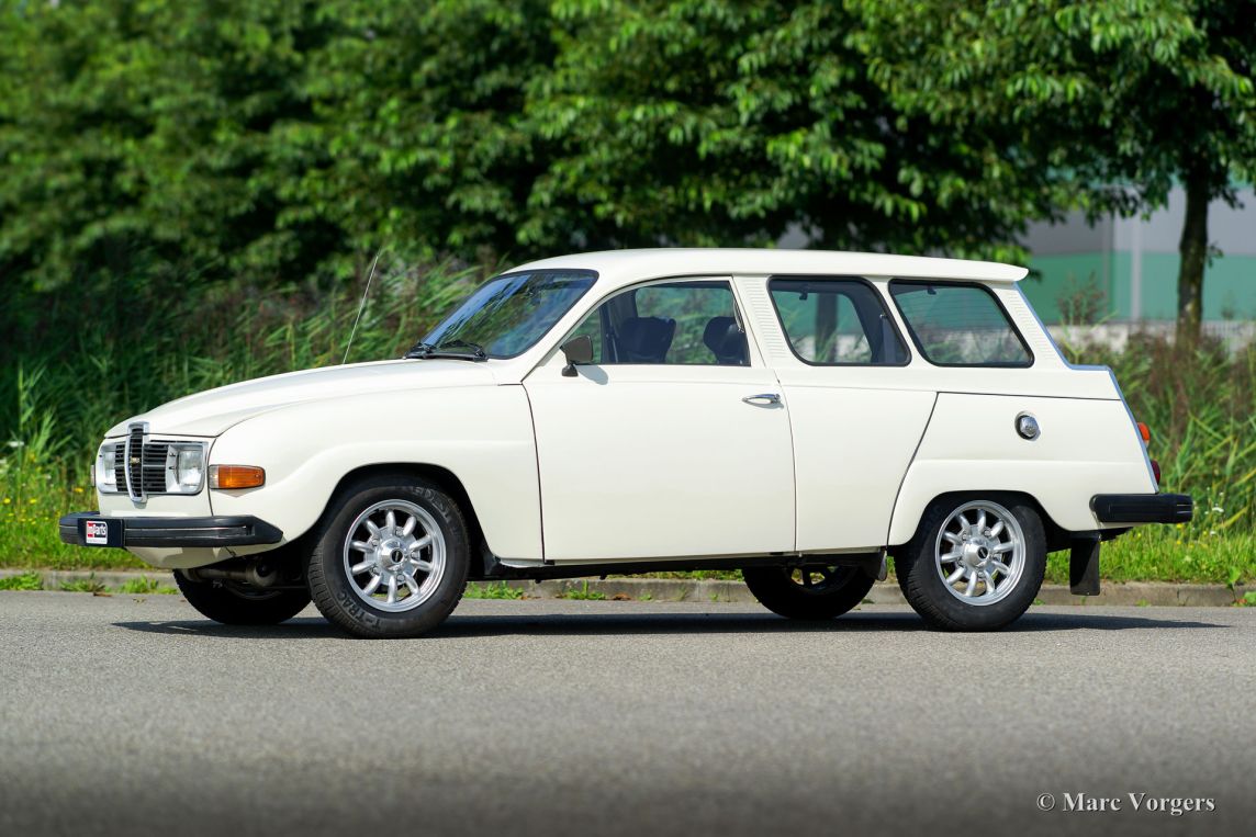 Saab 95 stationcar, jaar 1977. Kleur wit met een bruin stof/vinyl interieur en bruin tapijt. Deze karaktervolle Saab ‘stationcar’ verkeert in excellente staat en de auto rijdt uitstekend! De auto is voorzien van de soepele en fraai klinkende 1500 cc. V4 (Ford) benzinemotor en een handgeschakelde vierversnellingsbak met stuurkolomschakeling. De grote achterklep biedt toegang tot een grote laadruimte die vergroot kan worden door de achterbank neer te klappen. De sportieve Minilite-type velgen staan de auto geweldig. Een heerlijk eigenwijze Zweedse klassieker!
