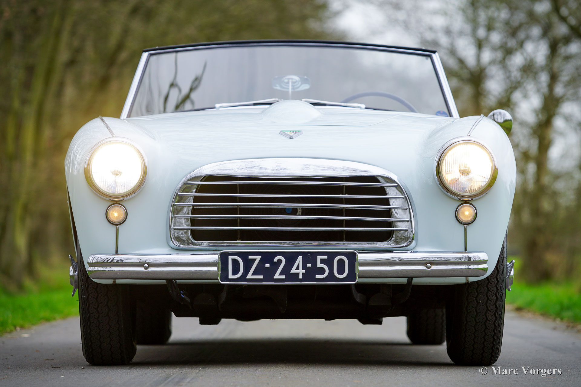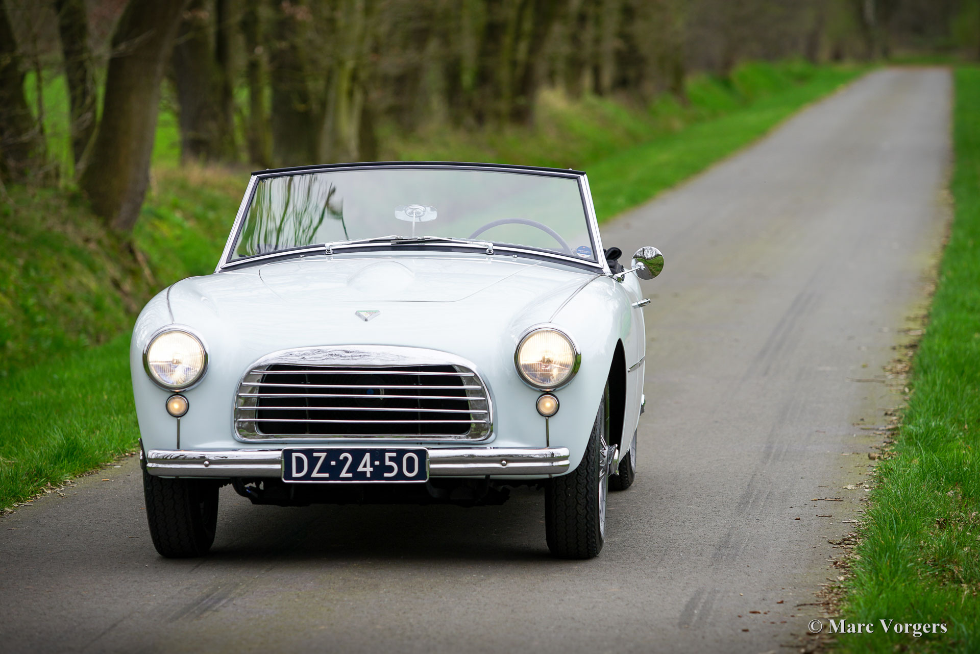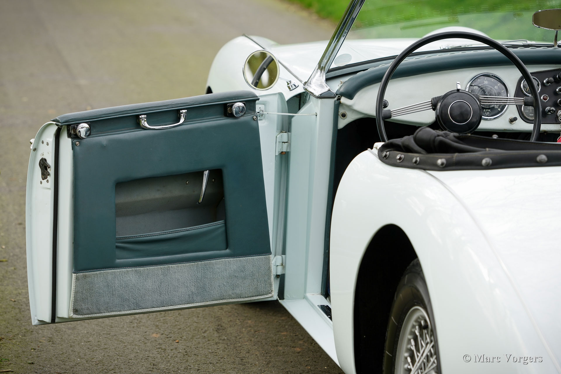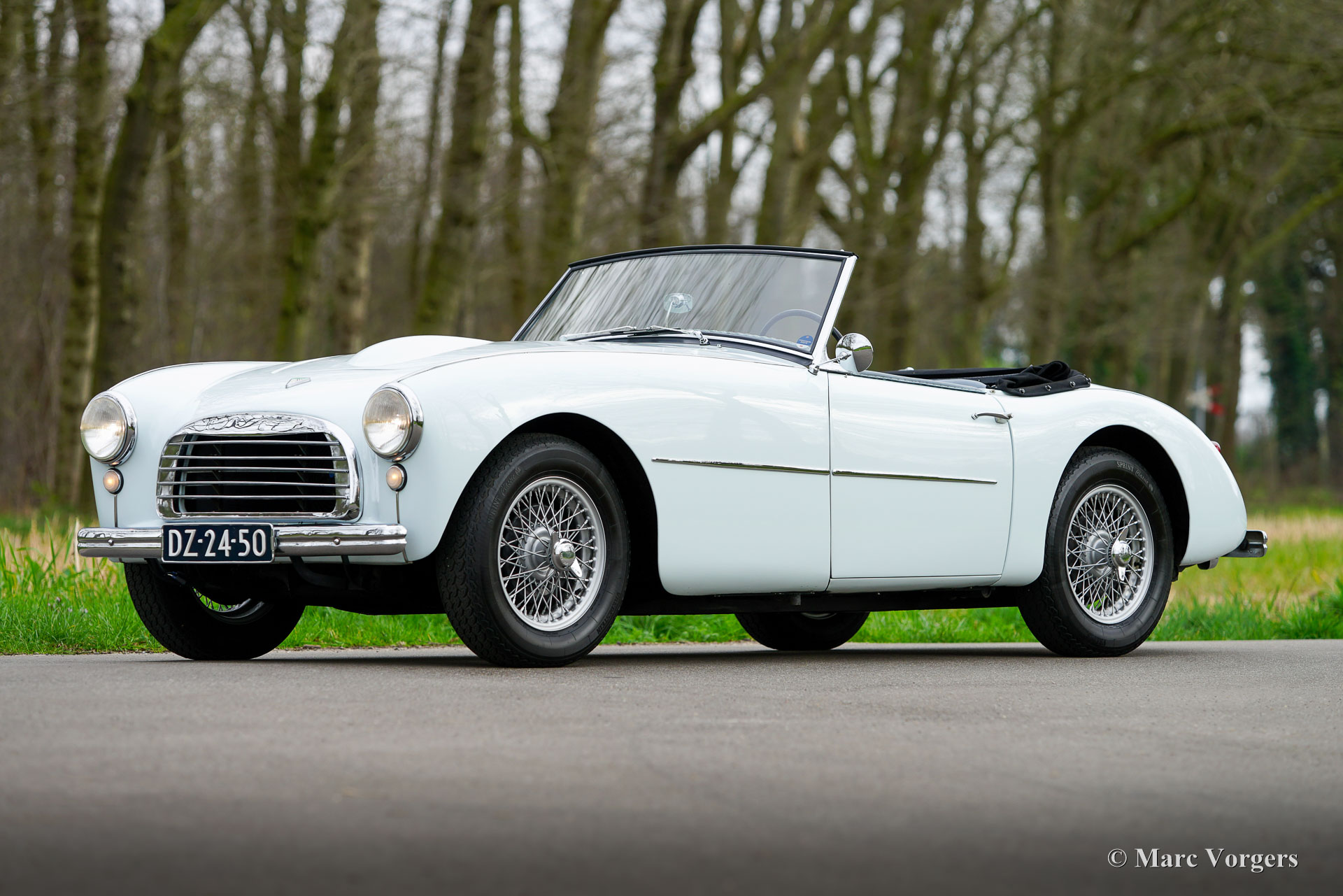 Swallow Doretti roadster, jaar 1955. Kleur ijsblauw gecombineerd met een grijs/blauw lederen interieur afgewerkt met lichtblauwe biezen, grijs tapijt en blauwe beschermmatten. Deze prachtige Swallow Doretti roadster werd nieuw verkocht in Frankrijk aan de heer P. Sellier. In 1958 werd de auto verkocht aan zijn zus. In 1961 verliet de auto de familie en werd deze verkocht aan de heer D. Amiach (in de jaren 80 een gerenommeerd Zwaluw Doretti-verzamelaar). De heer Amiach liet de auto overspuiten in het Frans blauw (denk aan Bugatti blauw) en de auto verscheen in augustus 1987 in het Franse tijdschrift Autoretro. In 1998 kregen de twee zonen van de zus van de heer Selliers de kans om de auto van hun moeder weer terug te kopen en weer in de familie te brengen. De broers lieten de auto in de oorspronkelijke glorie herstellen in de kleur ijsblauw (heel lichtblauw, bijna wit). Ze voegden veiligheidsgordels en een hoofdschakelaar toe. De huidige eigenaar kocht de auto in 2016 op de Bonhams veiling in België. In 2018 is de auto voorzien van nieuwe lak in de originele kleur. In 2019 heeft de eigenaar deelgenomen aan het mooiste klassieke auto-evenement ter wereld, de 1000 Miglia, in Italië. Deze schitterende Swallow Doretti Roadster verkeert in een zeer goede en zeer originele conditie en de auto rijdt geweldig. De firma Swallow maakte deel uit van de Tube-investeringsgroep van Jaguar-directeur William Lyons. De Swallow Doretti roadster is ontworpen door Frank Rainbow en werd gebouwd voor de Amerikaanse markt. De auto is gebouwd met behulp van Triumph TR2 componenten (motor, versnellingsbak, aandrijfas en assen). Het chassis is vervaardigd van Reynolds 531-buizen en de carrosserie is door Panelcraft gemaakt van aluminiumplaat en plaatstaal. De productie stopte nadat er slechts 276 auto’s gebouwd waren omdat de Swallow Doretti een directe concurrent werd van de Jaguar XK 120 roadster. Er zijn nog slechts 74 auto's van dit type bekend: een zeer zeldzame automobiel! Deze prachtige Swallow Doretti roadster wordt prachtig gedocumenteerd geleverd. Het dossier bevat: gedocumenteerde historie met de opeenvolgende namen van de eigenaren vanaf nieuw, de originele Franse grijze kaart (carte grise), servicefacturen, origineel instructieboek en de Bonhams veilingcatalogus uit 2016. Deze zeldzame Zwaluw Doretti komt in aanmerking voor deelname aan de Mille Miglia in de speciale klasse voor belangwekkende historische voertuigen. Dit is een zeldzame kans om een zeer goede Swallow Doretti Roadster met een prachtige historie te kopen!