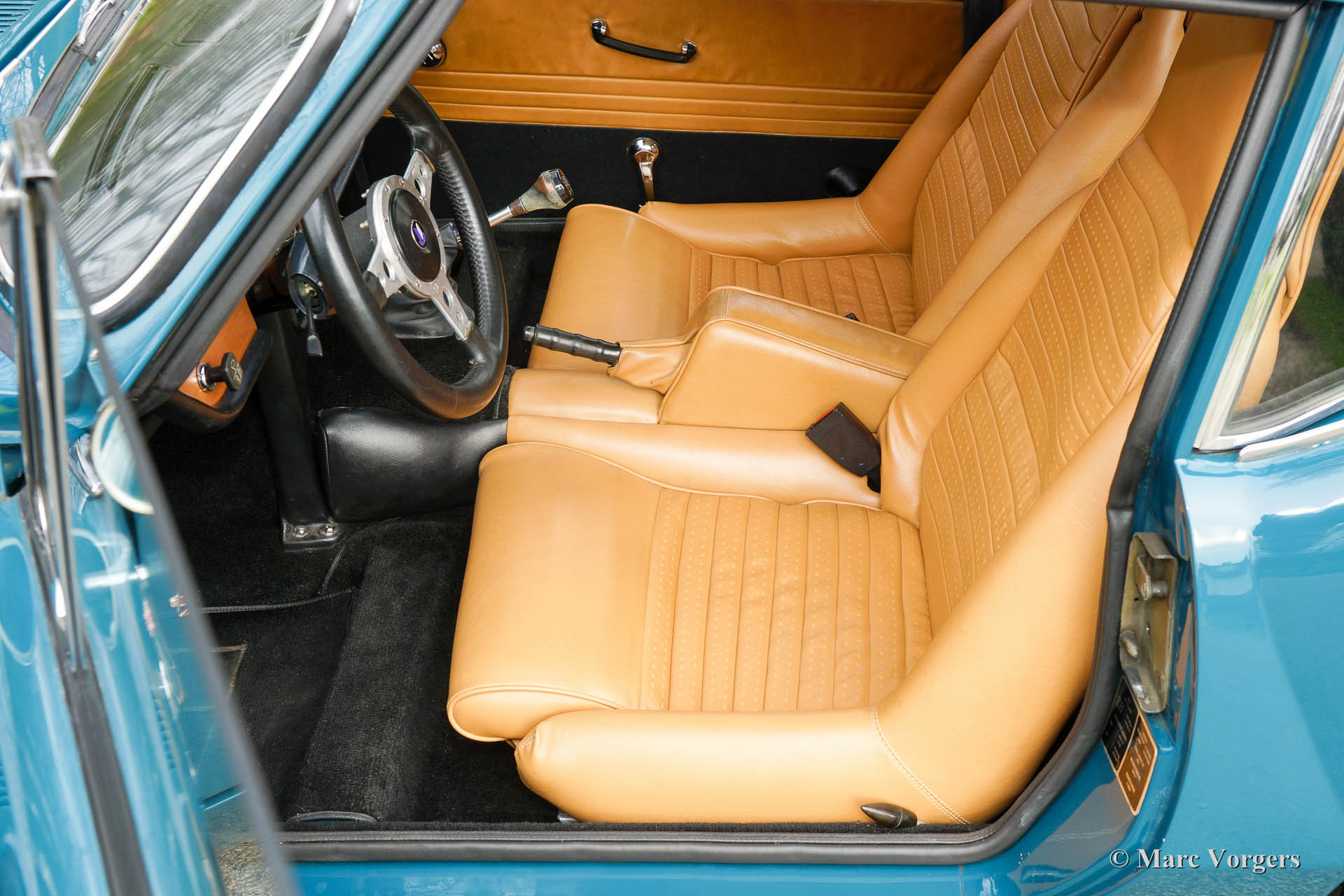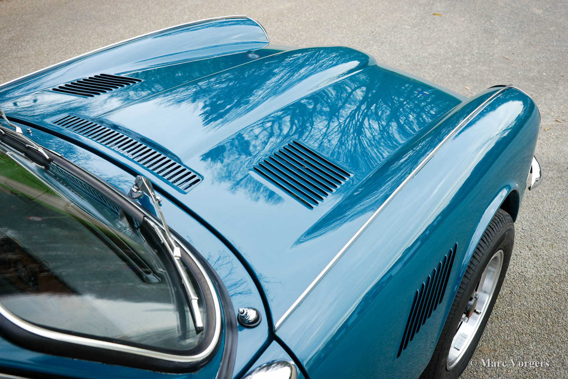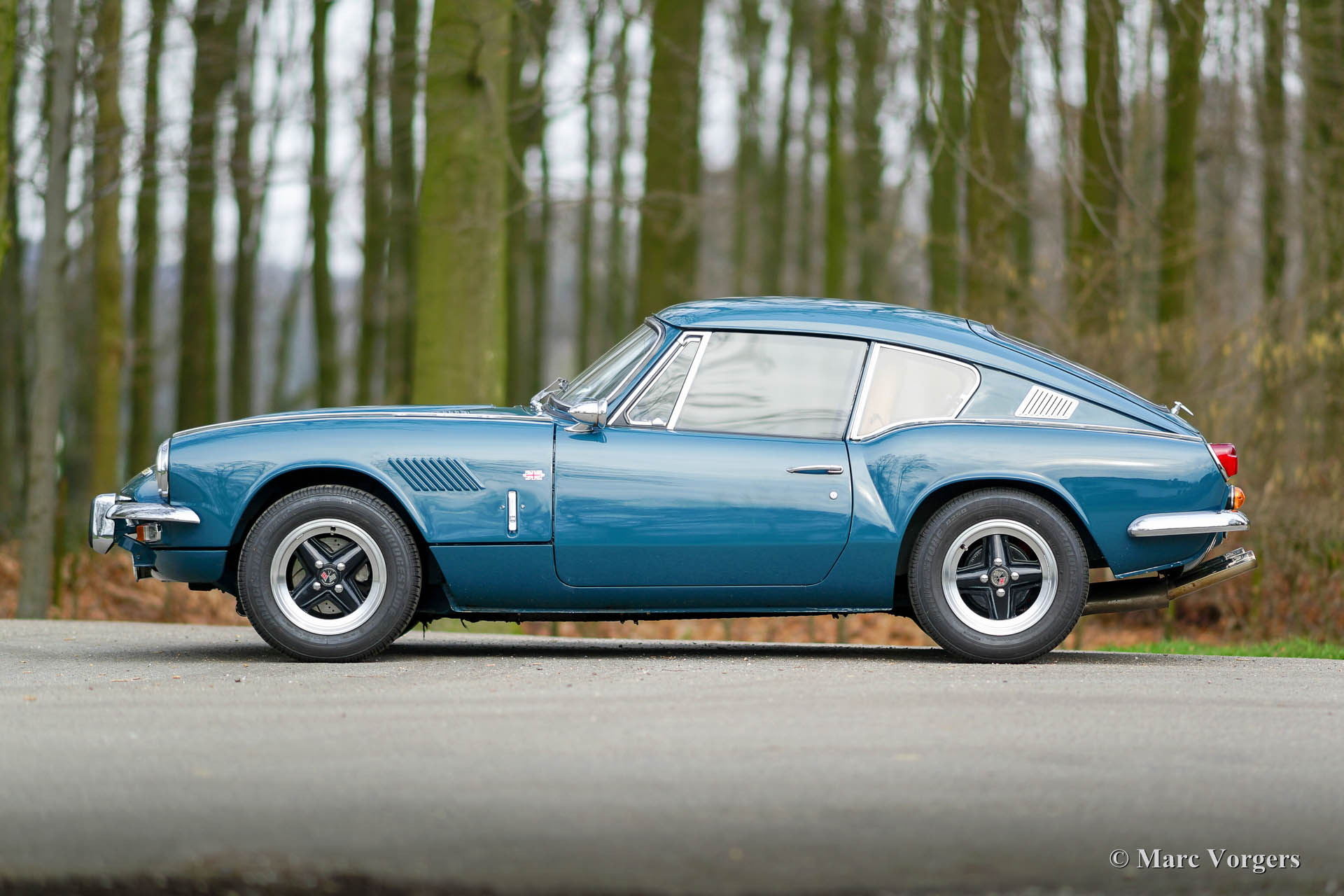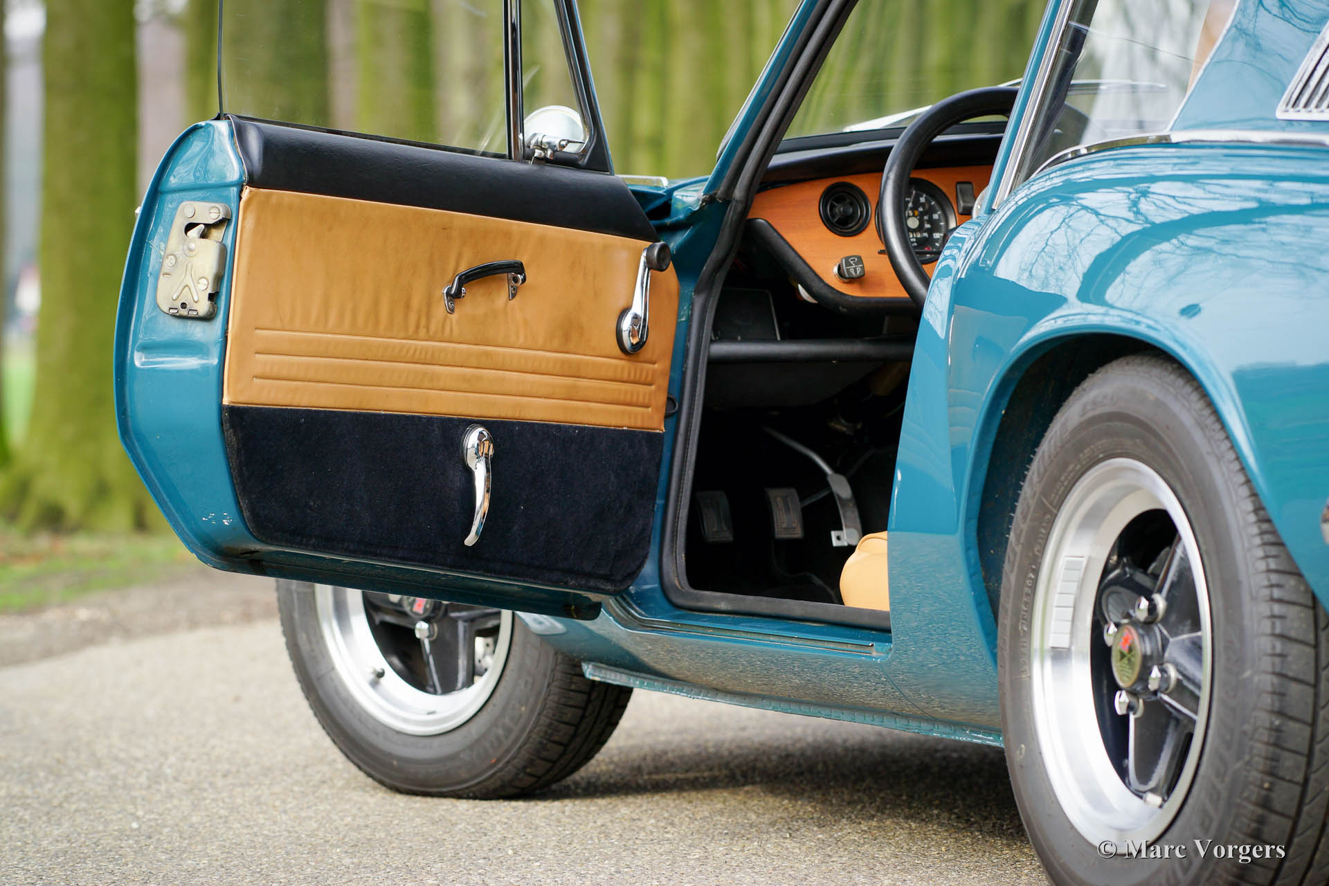 Triumph GT 6+ (Mk II), jaar 1968. Kleur Valencia blauw met een beige kunstlederen interieur en zwart tapijt. Deze prachtige GT6 is in excellente staat en is uitgerust met overdrive, 'Revolution' lichtmetalen wielen en een aluminium kleppendeksel. De Triumph GT 6 is het coupe model van de Triumph Spitfire en uitgerust met de zescilinder lijnmotor van de Triumph Vitesse. Deze prachtige GT 6 werd gefotografeerd voor een boek over 'British Sports Cars' waarover u later in 2016 meer zult horen en lezen.