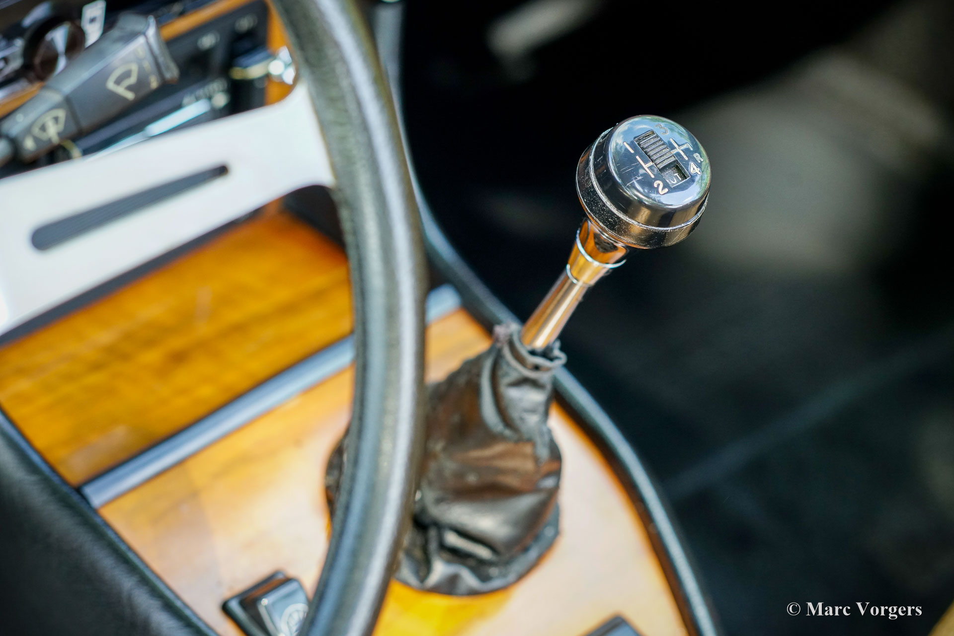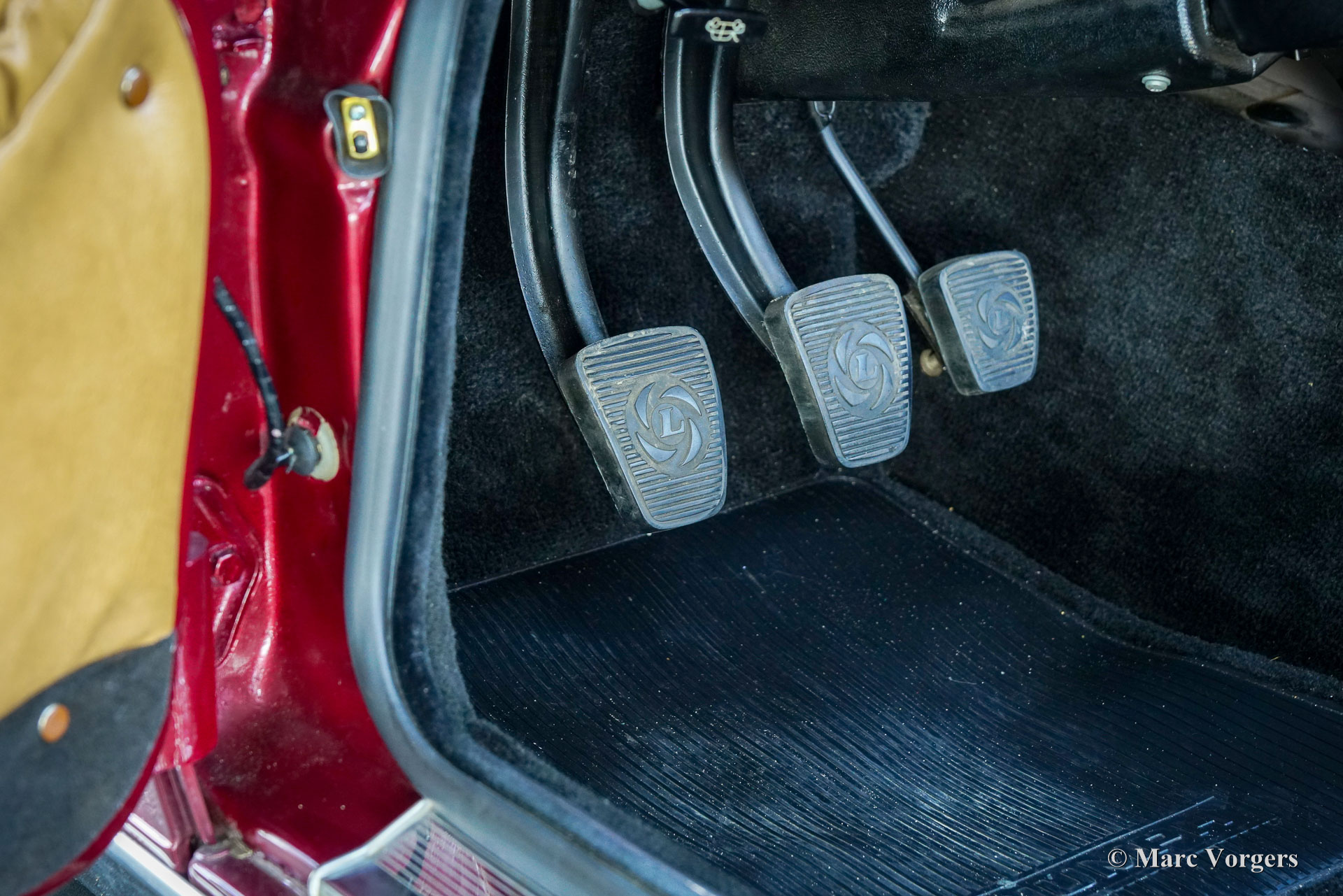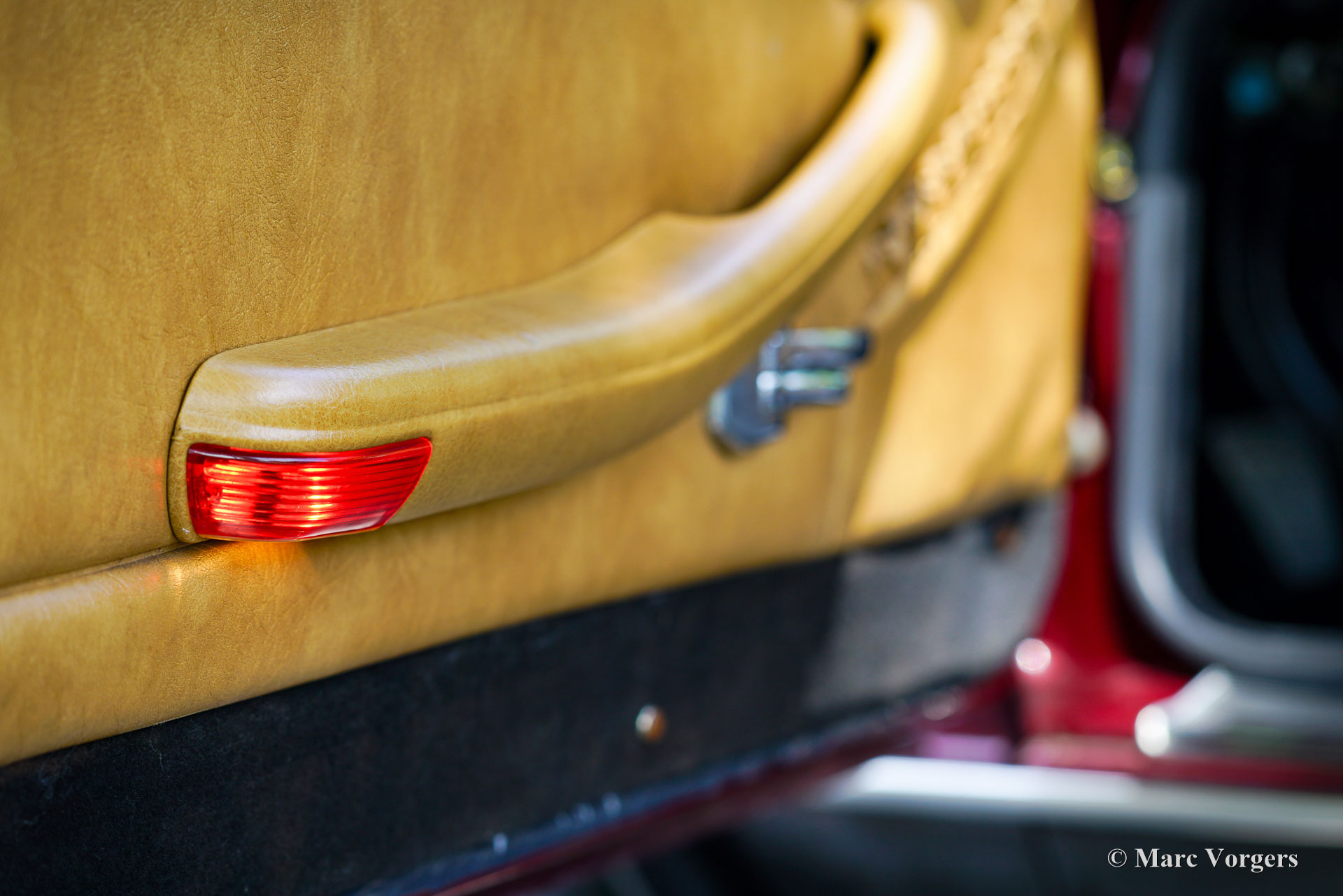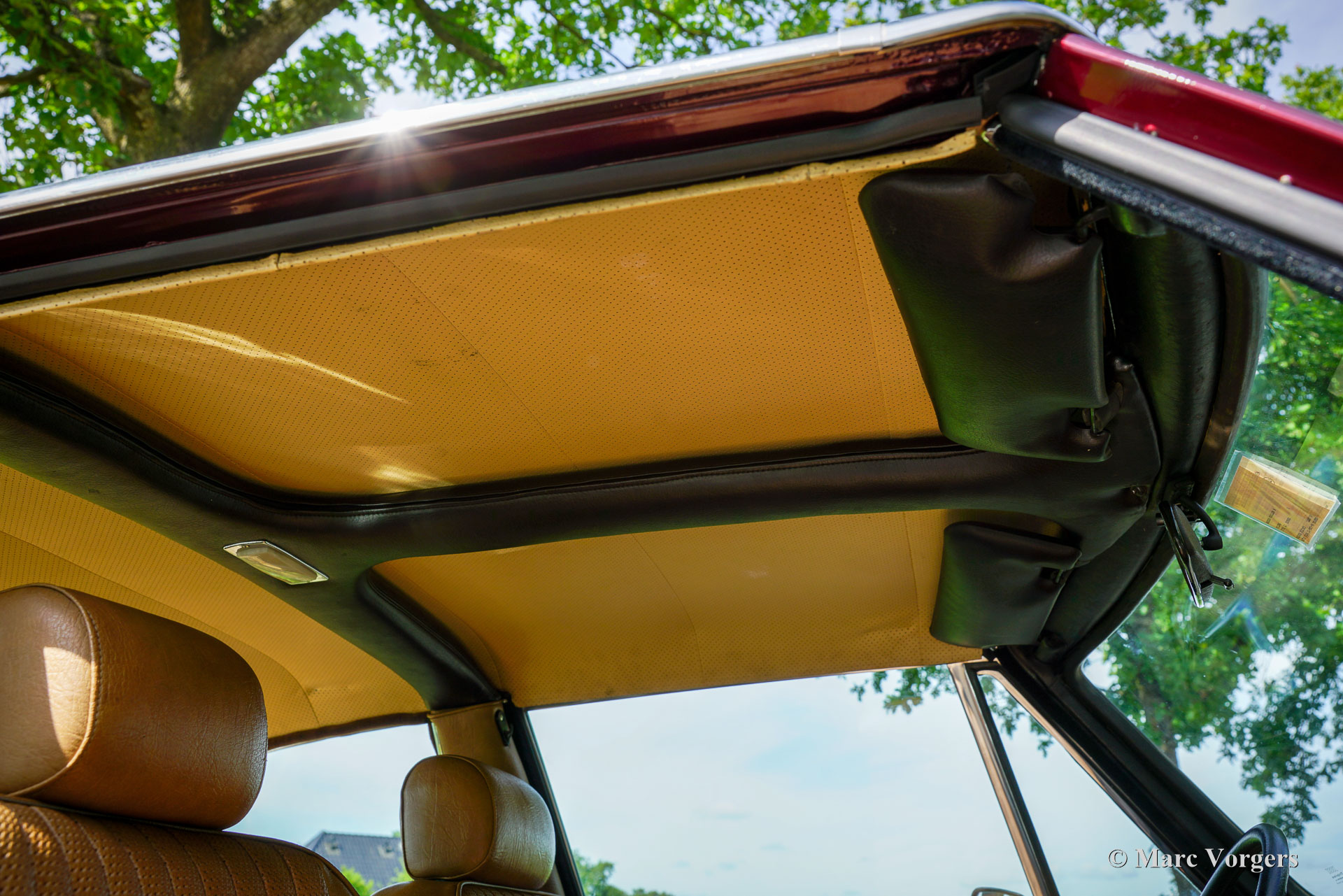 Triumph Stag, jaar 1975. Kleur donkerrood metallic gecombineerd met een donkerbeige kunstleren interieur en zwart tapijt. Zwarte mohair soft-top en originele hard-top (winterdak) in carrosseriekleur. De magnifieke Triumph Stag is ontworpen door de bekende Italiaanse topdesigner Michelotti. De Stag is bedacht in de jaren dat veiligheid een hot item werd in de VS en sportieve open auto's als onveilig werden beschouwd. Daarom kreeg de Triumph Stag een speciale rolbeugel (T-bar), een behandeling die ook werd gegeven aan de Jaguar XJS uit die tijd. De motorkapconstructie en opbergruimte van de Triumph Stag is geïnspireerd op de Mercedes SL-oplossing, waarbij de kap in een speciaal compartiment neerklapt dat wordt afgesloten met een harde klep. De stoere hard-top maakt van de Stag een fraaie coupé! Deze prachtige Triumph Stag verkeert in een zeer goede staat en de auto rijdt en schakelt uitstekend! De auto is enkele jaren geleden prachtig donkerrood metallic gespoten, onder de motorkap is te zien dat de auto oorspronkelijk bruin is geweest. Het originele interieur is in een bijna perfecte staat en vertoont slechts de minste tekenen van eerder gebruik. De motorruimte ziet er geheel origineel uit met gebruiks- en ouderdomssporen. De 3000 cc Triumph V8 motor loopt perfect en het uitlaatgeluid is zeer verslavend! De handgeschakelde vierversnellingsbak schakelt precies en is voorzien van overdrive. Verder is de auto voorzien van stuurbekrachtiging, rembekrachtiging en elektronische ontsteking. De originele wielen zijn drie jaar geleden gerestaureerd naar topstaat en zijn prachtig! Tussen 1970 en 1977 werden er ongeveer 25.800 exemplaren gebouwd waarvan de meeste uitgerust waren met een automatische versnellingsbak... Dit exemplaar is voorzien van de gewilde handgeschakelde versnellingsbak met overdrive-optie die de sportieve maar comfortabele rijervaring naar een hoger plan tilt.