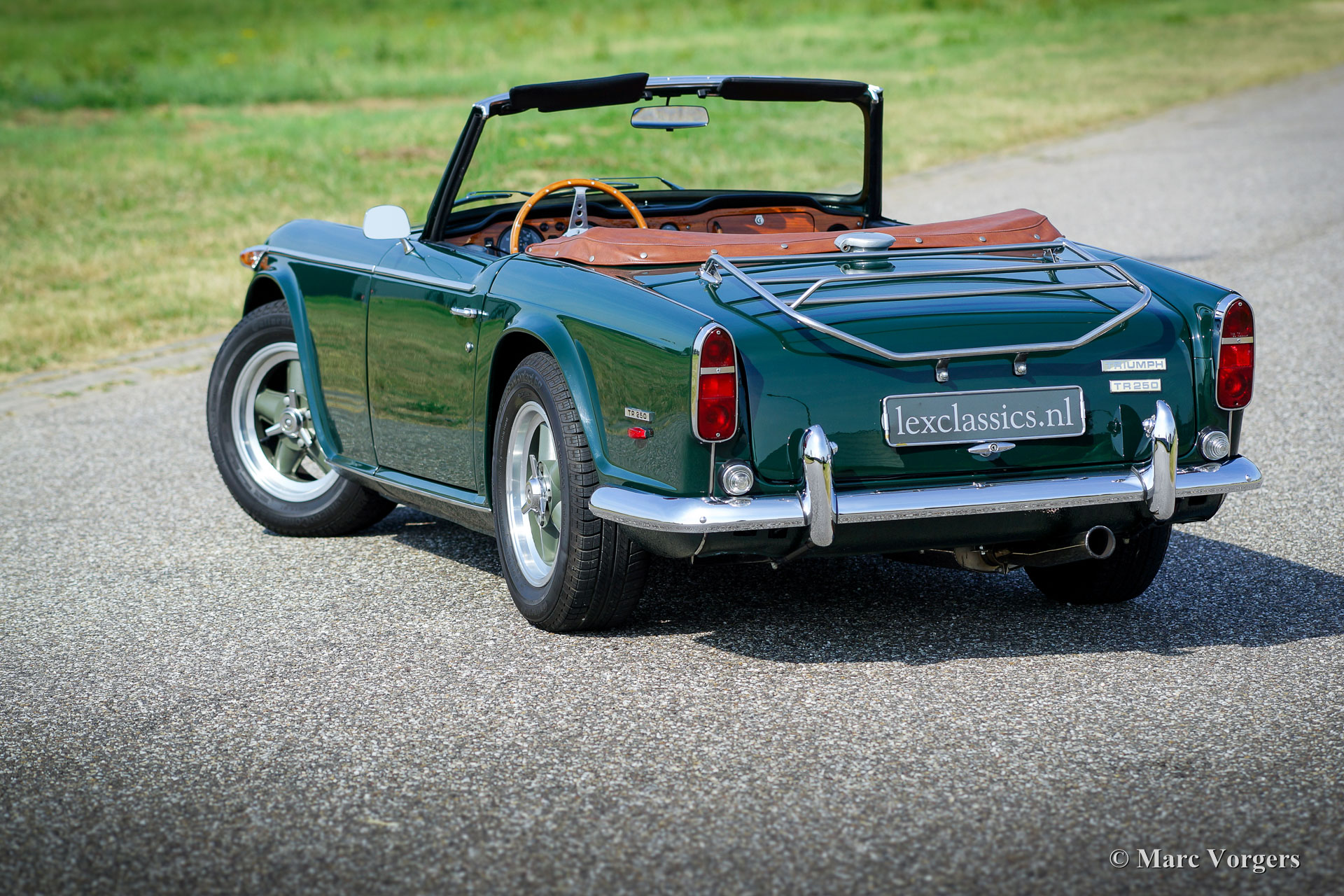 Triumph TR 6. De TR had een nog sterkere, krachtigere, uitstraling gekregen en de, voornamelijk Amerikaanse, TR klandizie was razend enthousiast. De TR 6 beschikte over een handigere kofferbak, beter zichtbare verlichting en natuurlijk de zes cilinder motor van de TR5/ 250. De TR 6 werd beter verkocht dan alle voorgaande TR modellen!