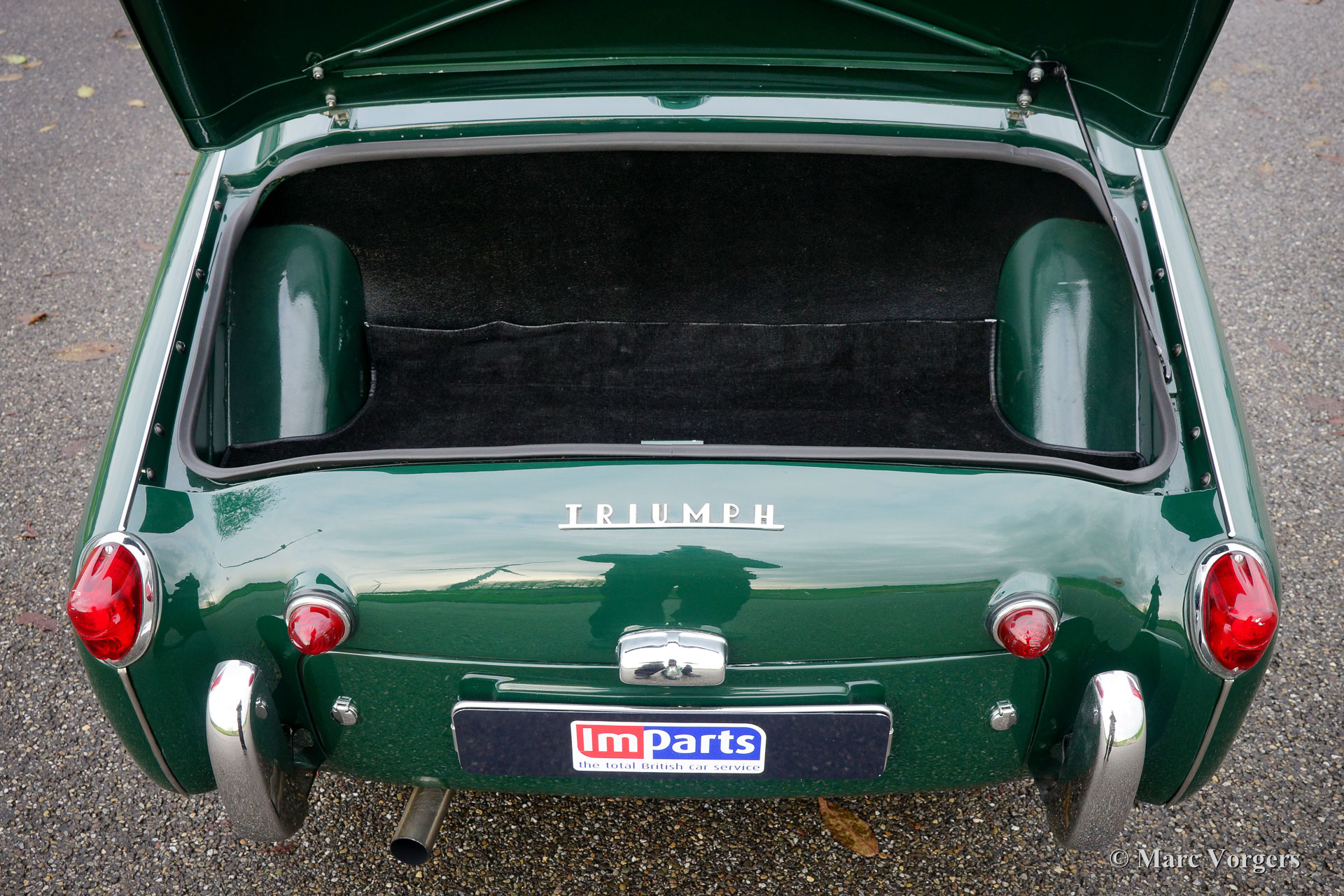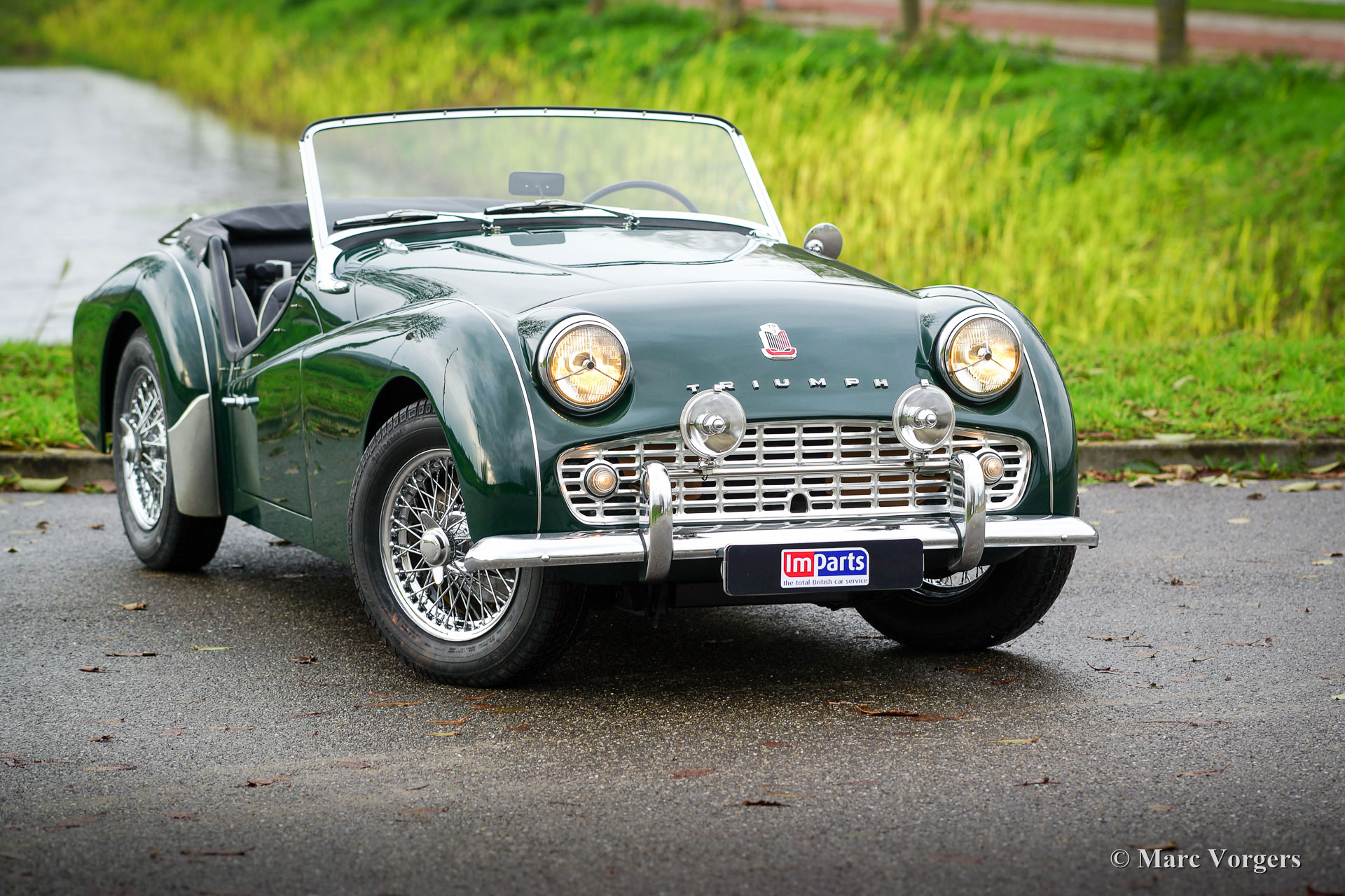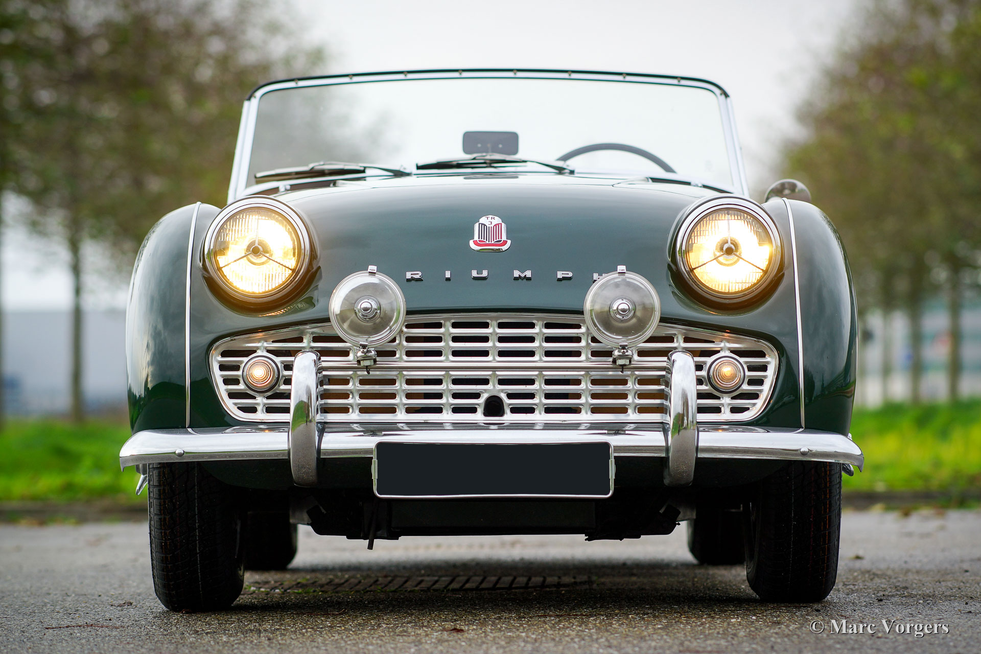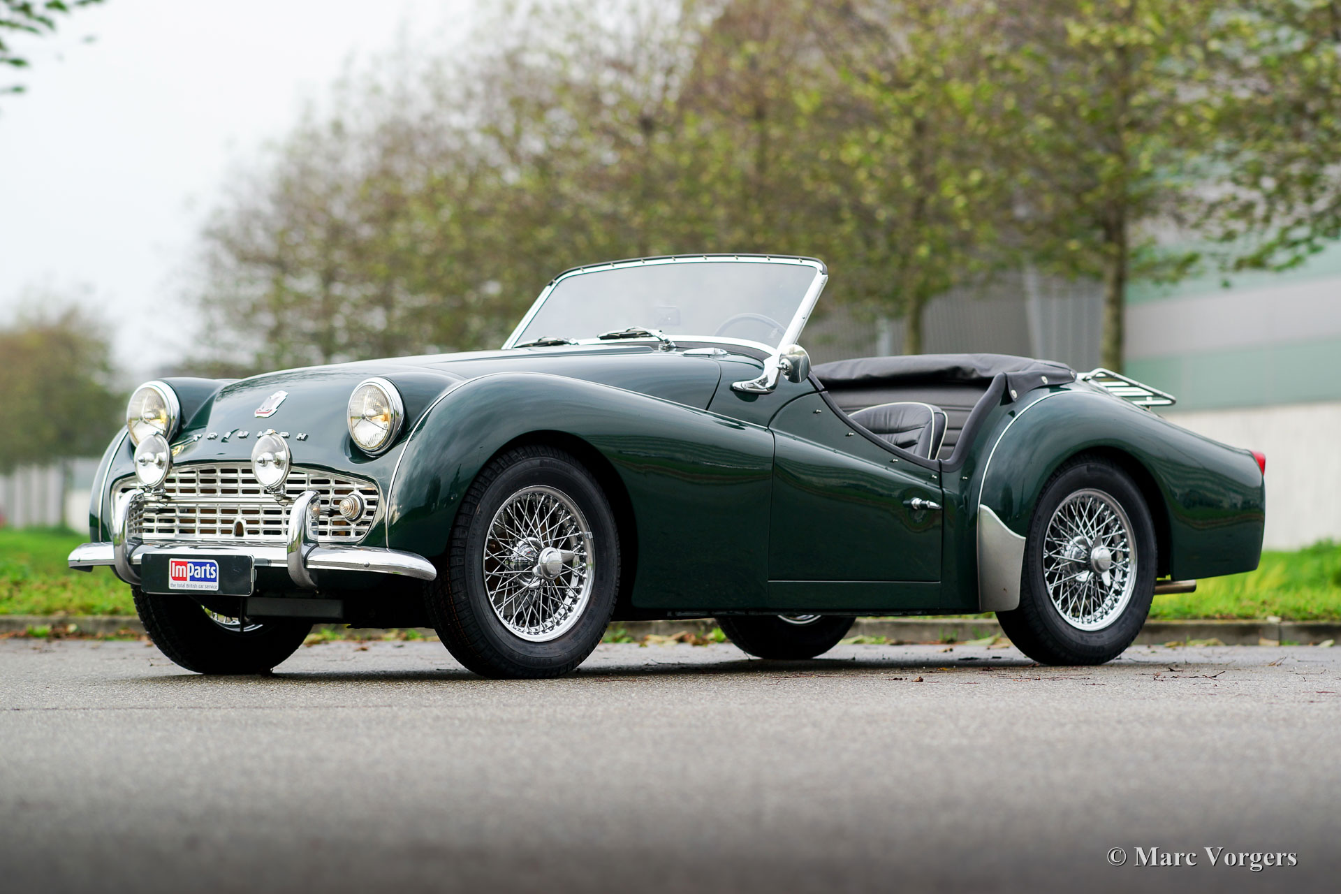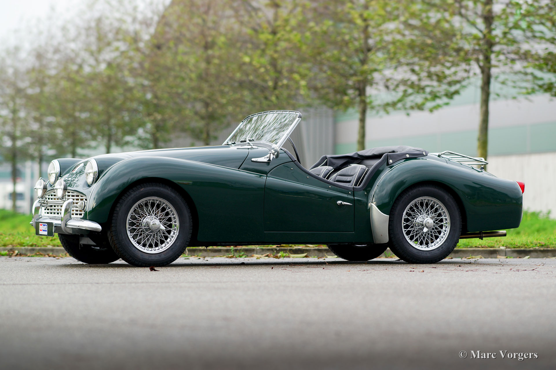 Triumph TR 3A, jaar 1959. Kleur British Racing Green met een zwartleren interieur afgewerkt met witte biezen. Zwarte soft-top, zijruiten, hood-cover en tonneau-cover. Deze magnifieke Triumph TR 3A is in recente jaren uitvoerig en ‘body-off’ gerestaureerd naar originele specificaties. Sinds afronding van de restauratie heeft de auto 200 testkilometers gereden. Deze TR 3A verkeert in sublieme TOPSTAAT; concours! Foto’s van de restauratie zijn aanwezig. De motor is gereviseerd en geschikt gemaakt voor het gebruik van loodvrije benzine. Deze fraaie TR 3A toont alle originele details en de auto is zelfs voorzien van de optionele achterbank. De auto is uitgerust met een rvs-uitlaatsysteem en luxe extra’s zoals verchroomde spaakwielen, een chroom kofferrek en een ‘badge-bar’ met twee verchroomde vérstralers. Een TOP-exemplaar!