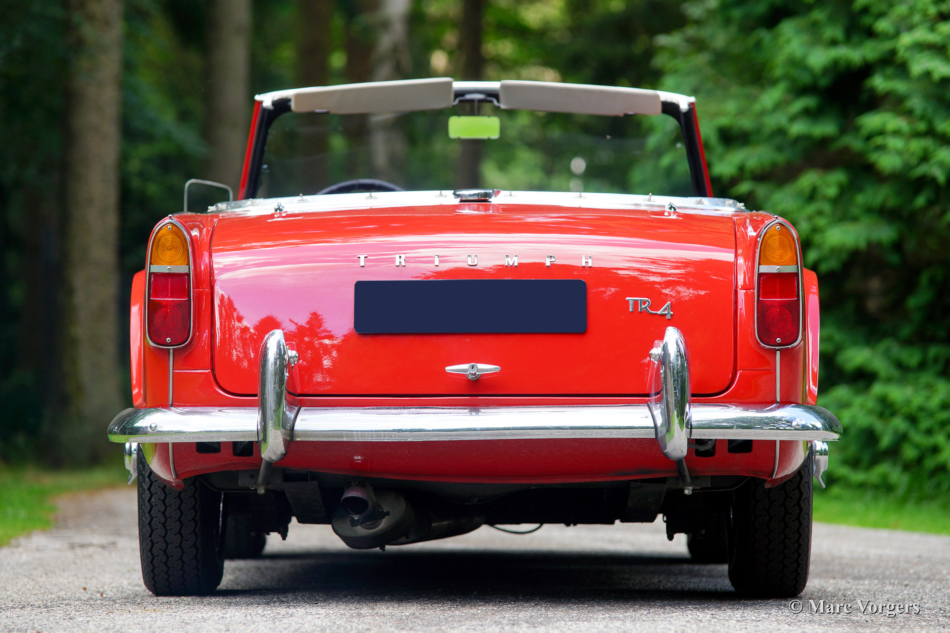 De Triumph TR 4 is de opvolger van de Triumph TR 3. Deze door Michelotti vormgegeven Triumph kwam in 1961 op de markt. De Triumph TR 4is een rasechte roadster zoals deze allen in Engeland gemaakt konden worden, recht door zee, puur en zeer sportief! De TR 4 beschikt over een stevig chassis, onafhankelijke voorwielophanging en een starre as achter. (De IRS versies beschikken over onafhankelijke wielophanging achter). Op de voorwielen zijn schijfremmen gemonteerd en op de achterwielen trommelremmen. Op de motorkap is een fraaie "powerbulge" te zien die plaats biedt aan de twee carburateurs. De TR 4 beschikt over een zeer fraai en overzichtelijk houten dashboard met grote, duidelijk afleesbare klokken dat klassieke sportiviteit ademt. Als accessoire is voor de TR 4 de zeer fraaie "Surrey-top" verkrijgbaar. Deze "Surrey-top" inspireerde Porsche tot het bouwen van haar "Targa" uitvoeringen.