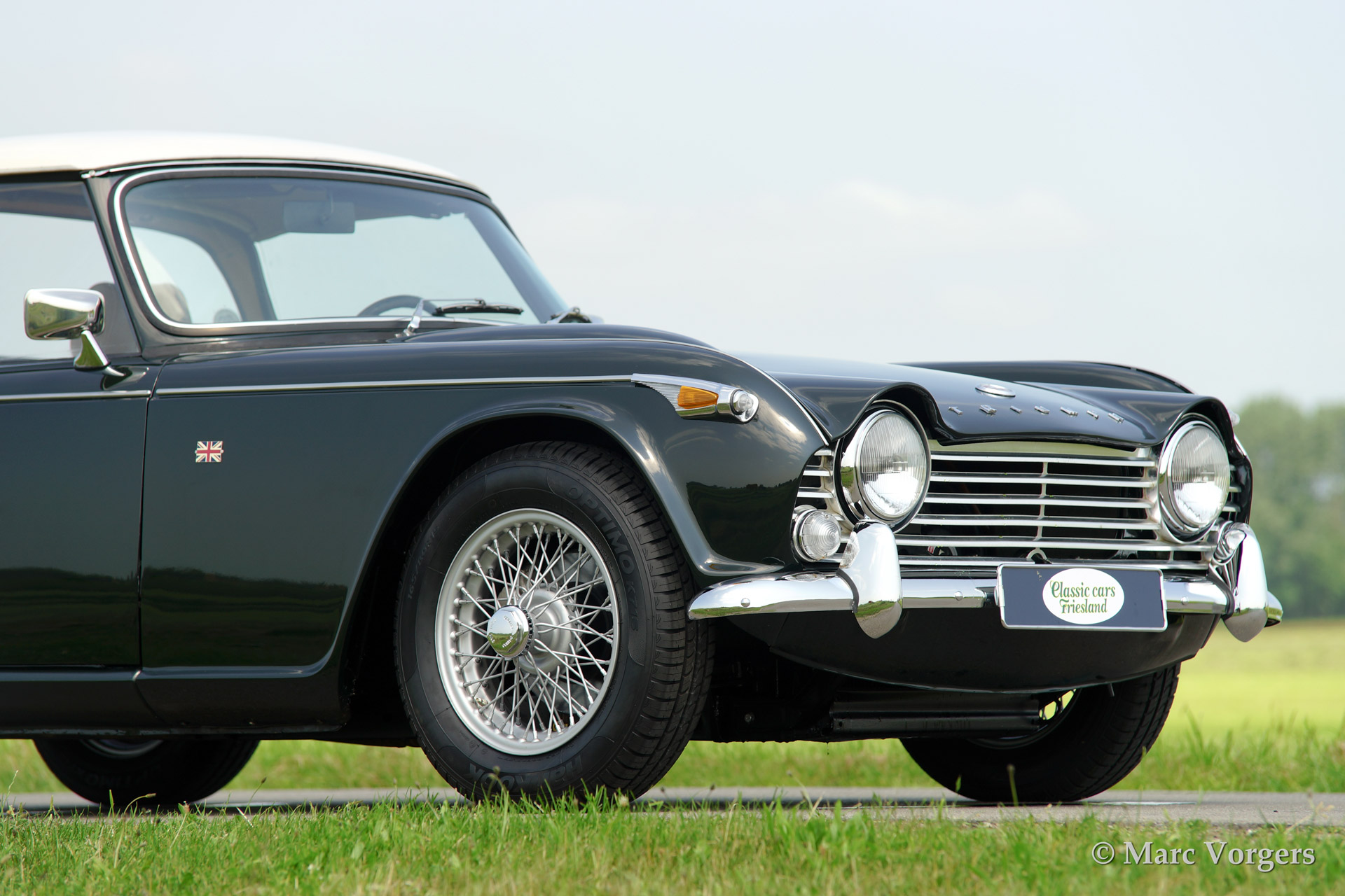 Triumph TR 6. De TR had een nog sterkere, krachtigere, uitstraling gekregen en de, voornamelijk Amerikaanse, TR klandizie was razend enthousiast. De TR 6 beschikte over een handigere kofferbak, beter zichtbare verlichting en natuurlijk de zes cilinder motor van de TR5/ 250. De TR 6 werd beter verkocht dan alle voorgaande TR modellen!