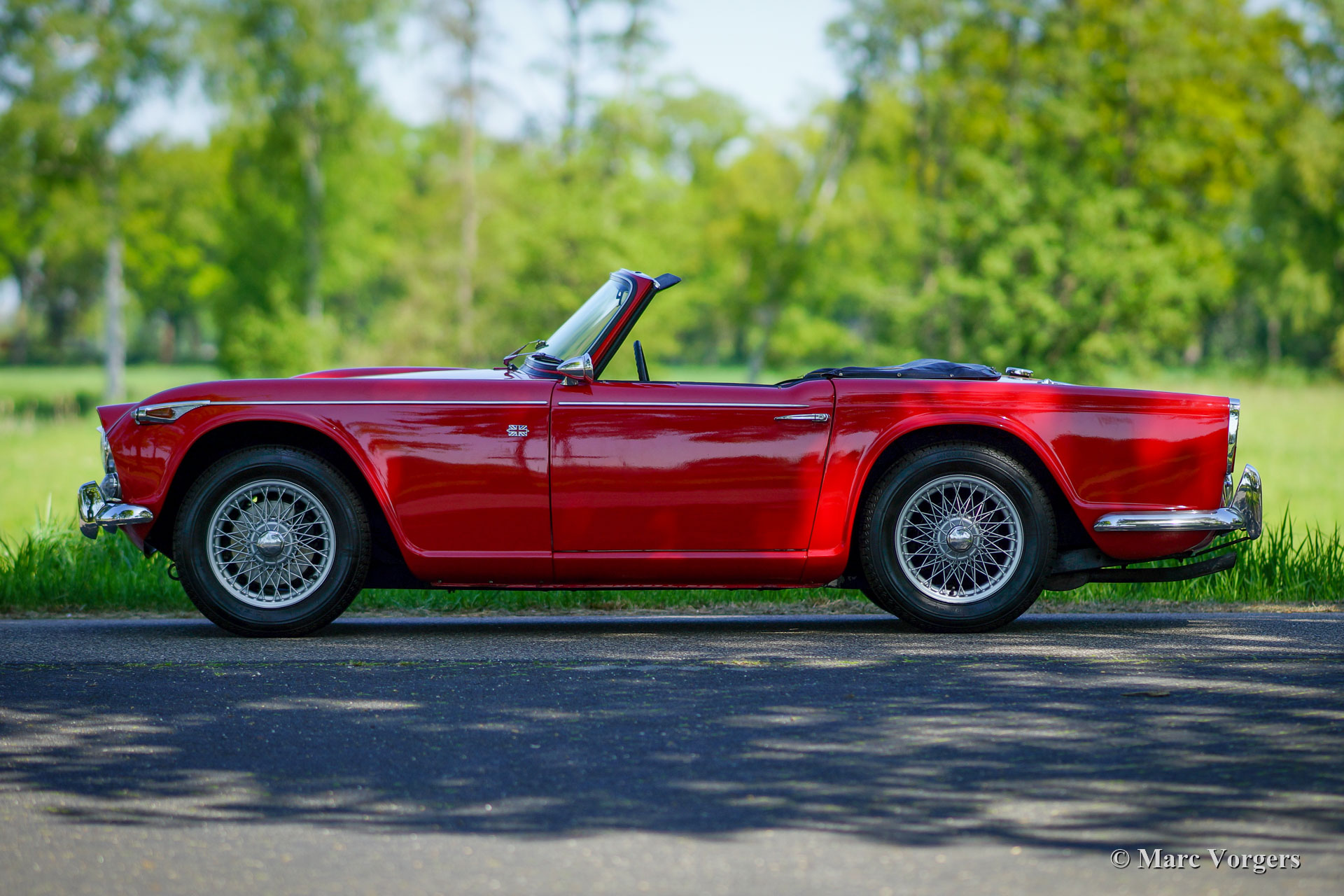 Triumph TR 6. De TR had een nog sterkere, krachtigere, uitstraling gekregen en de, voornamelijk Amerikaanse, TR klandizie was razend enthousiast. De TR 6 beschikte over een handigere kofferbak, beter zichtbare verlichting en natuurlijk de zes cilinder motor van de TR5/ 250. De TR 6 werd beter verkocht dan alle voorgaande TR modellen!