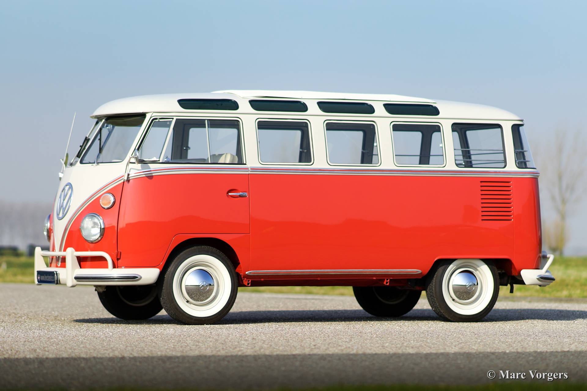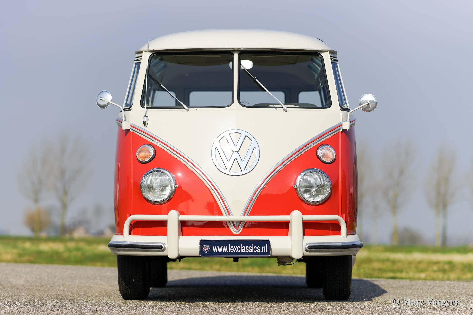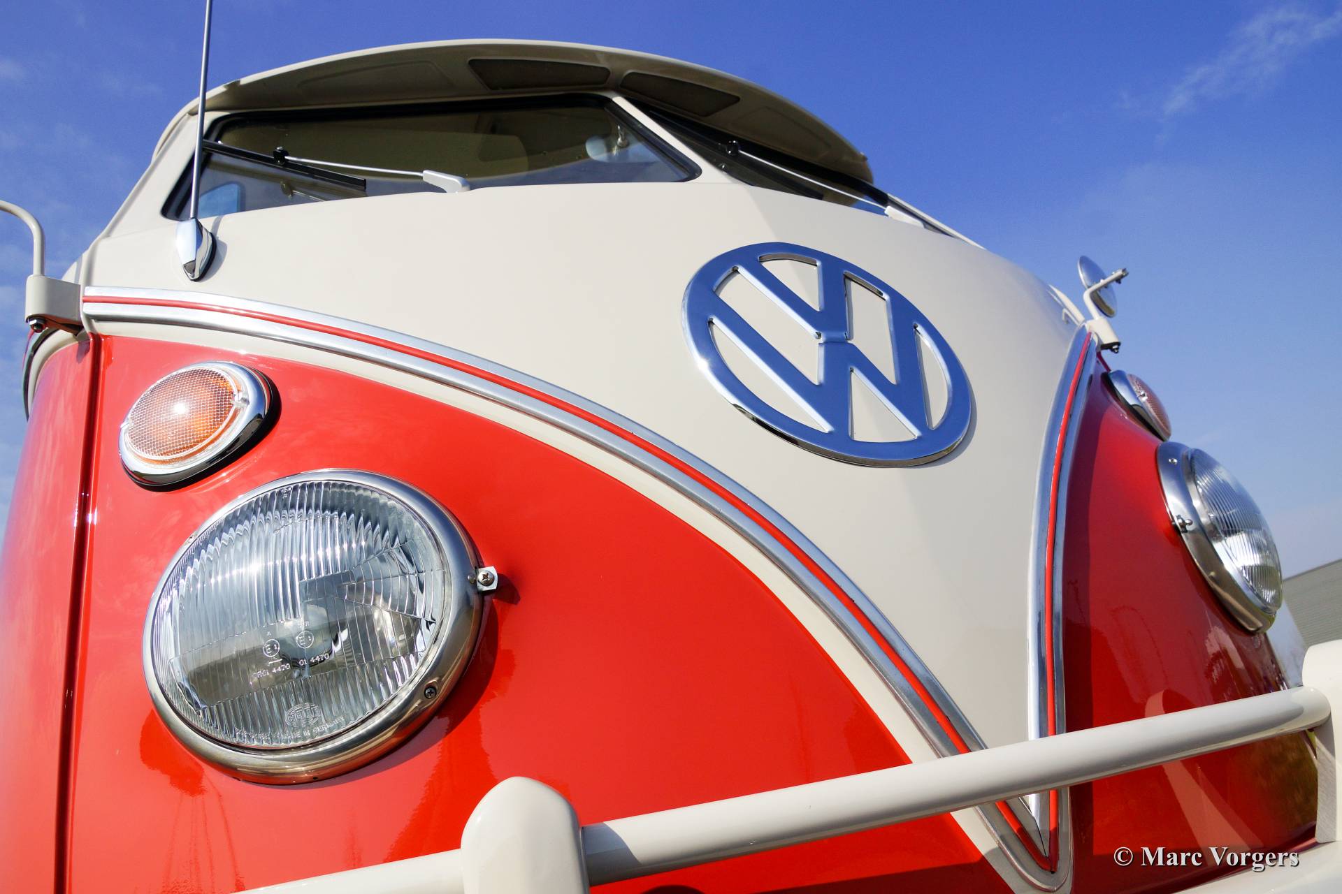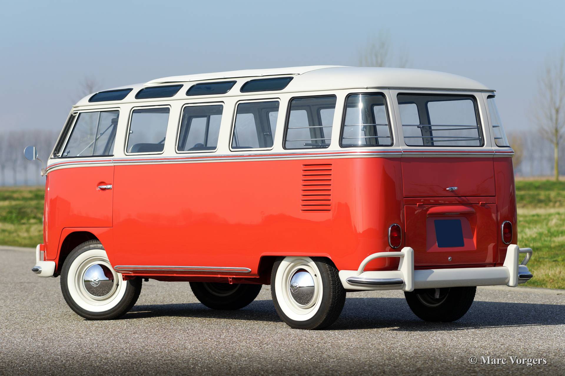 Volkswagen T1 Samba bus, bouwjaar 1963. Chassisnummer 1082XXX. Kleur ‘Sealing Wax Red’ met een ‘pearl white’ dak en een ‘basalt grey’ interieur. Deze Volkswagen bus van het T1 type Samba is een gewilde uitvoering met 23 ruiten en de tweedelige voorruit. Het betreft een ‘deluxe’ uitvoering met een prachtig groot vouw/schuifdak! Deze Volkswagen Samba bus werd in 2008 geïmporteerd vanuit de USA. Aansluitend werd de auto uitvoerig gerestaureerd waarbij kosten noch moeite werden gespaard. De restauratie was gereed in het jaar 2013, sindsdien is er slechts 114 km. Met de auto gereden. Deze Samba bus met 23 ruiten verkeert in sublieme topstaat, concours!