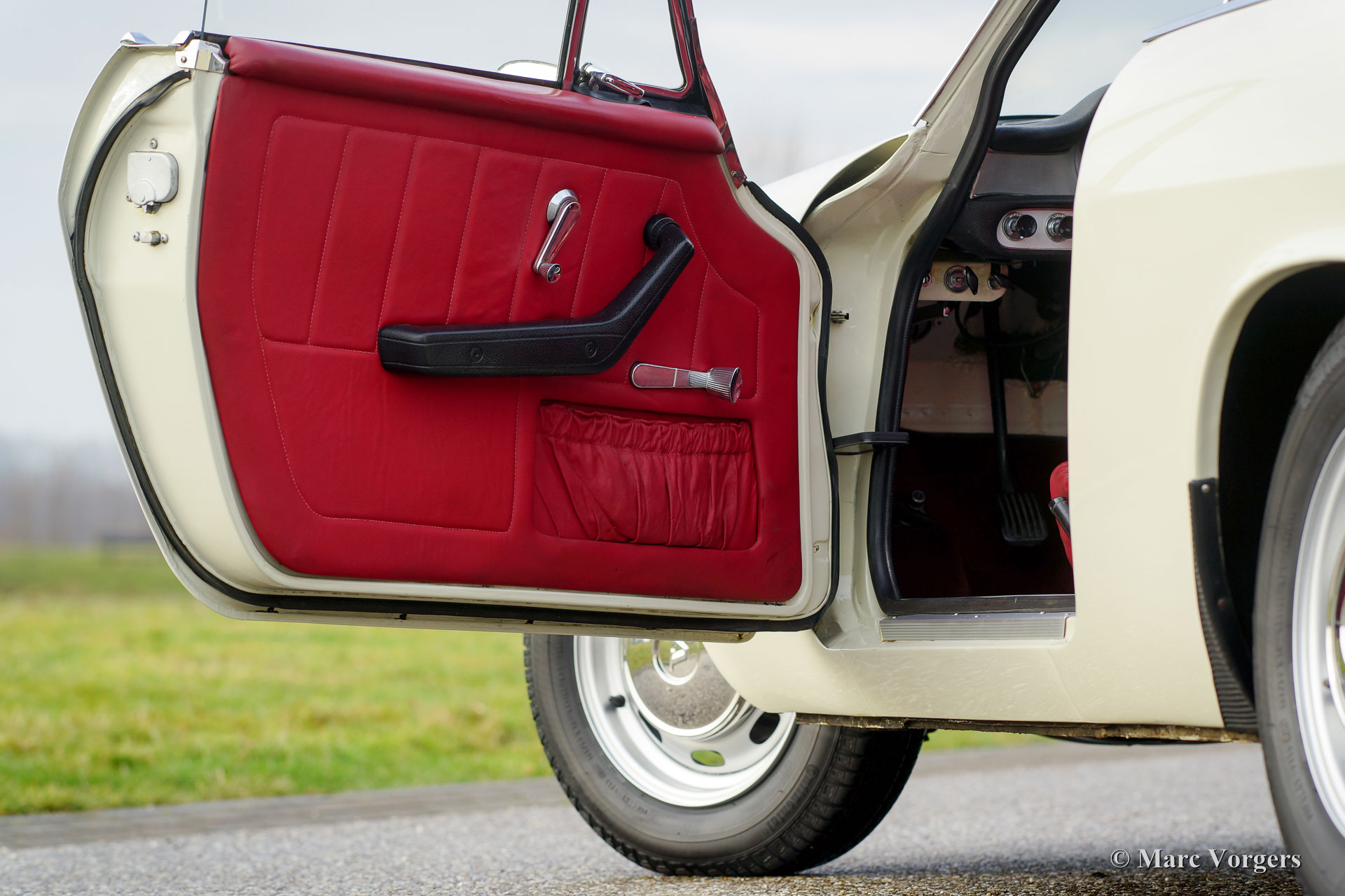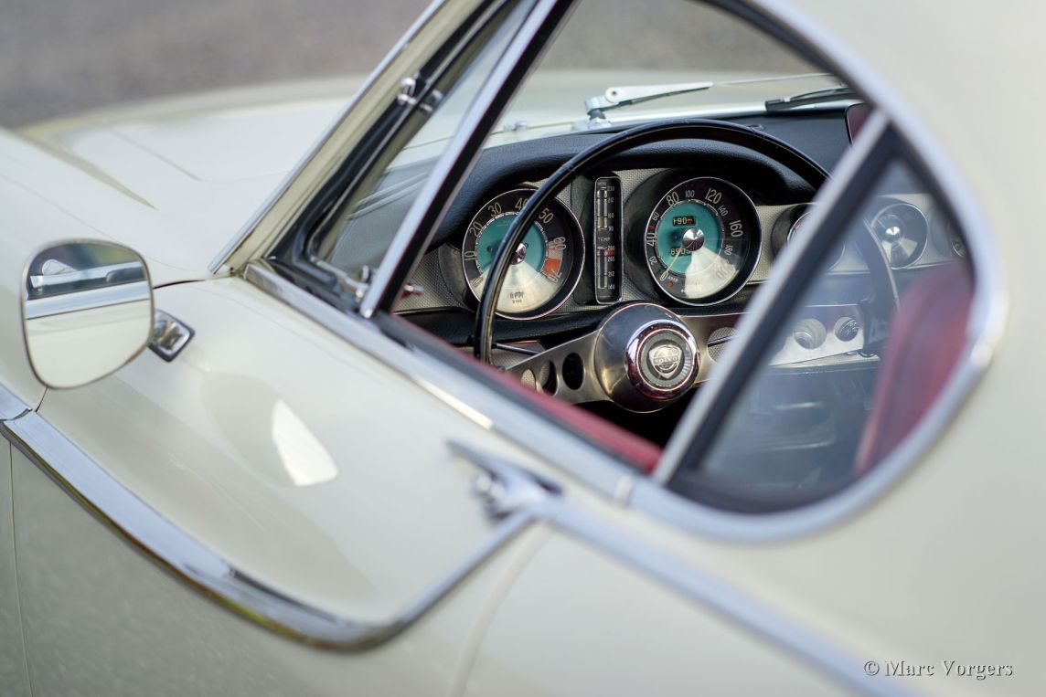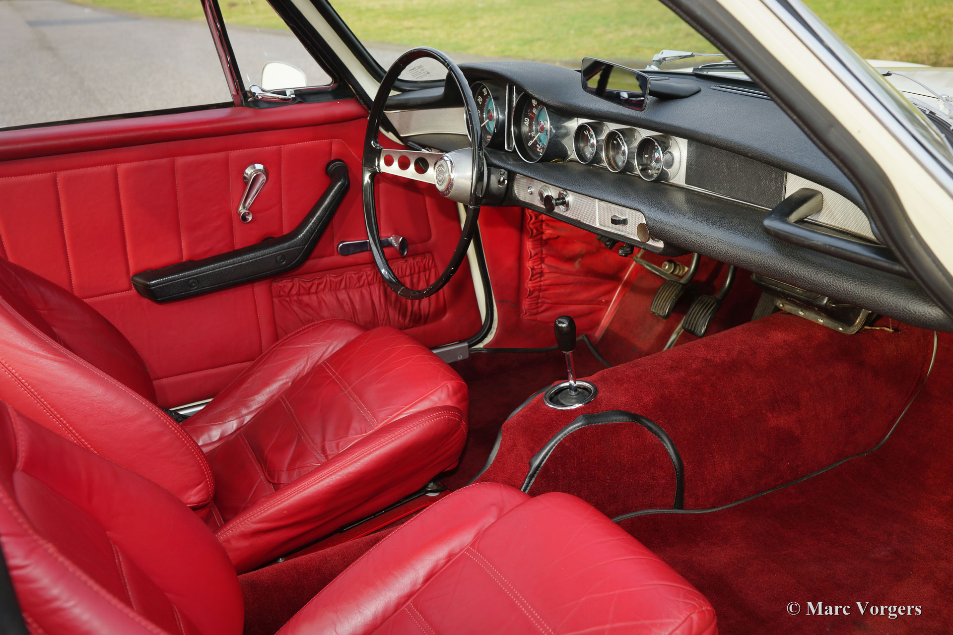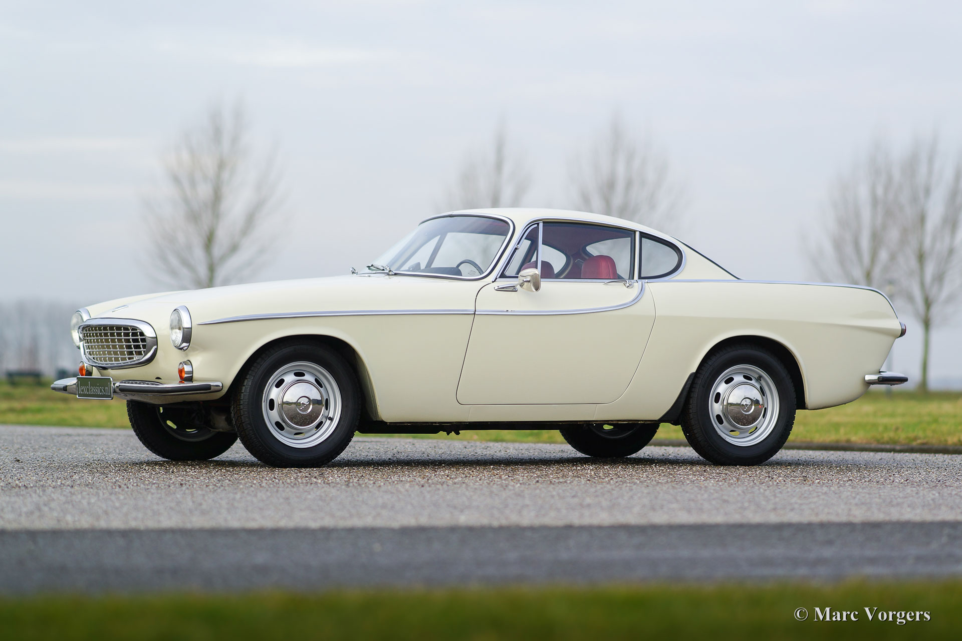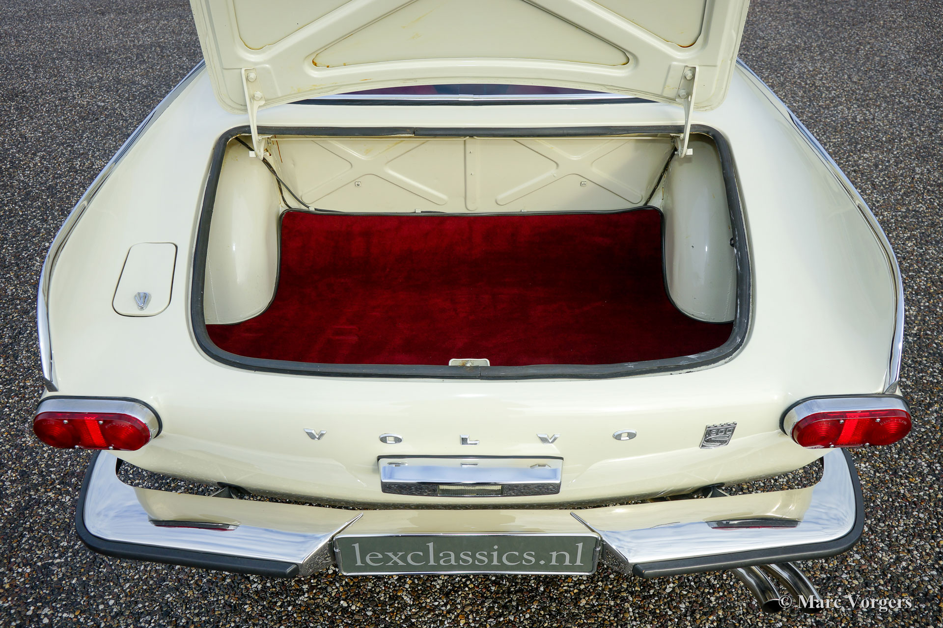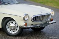 Volvo 1800 S, jaar 1966. Kleur crème wit met een rood leren interieur en rood tapijt. Deze geweldige Volvo 1800 S werd in het verleden uitvoerig gerestaureerd door een Nederlandse specialist. De auto verkeert in excellente staat. Deze Volvo is uitgerust met speciale stoelen en overdrive. De auto toont prachtige originele details en is voorzien van de originele stalen velgen met chroom wieldoppen. Inbegrepen zijn 16 inch lichtmetalen wielen.
