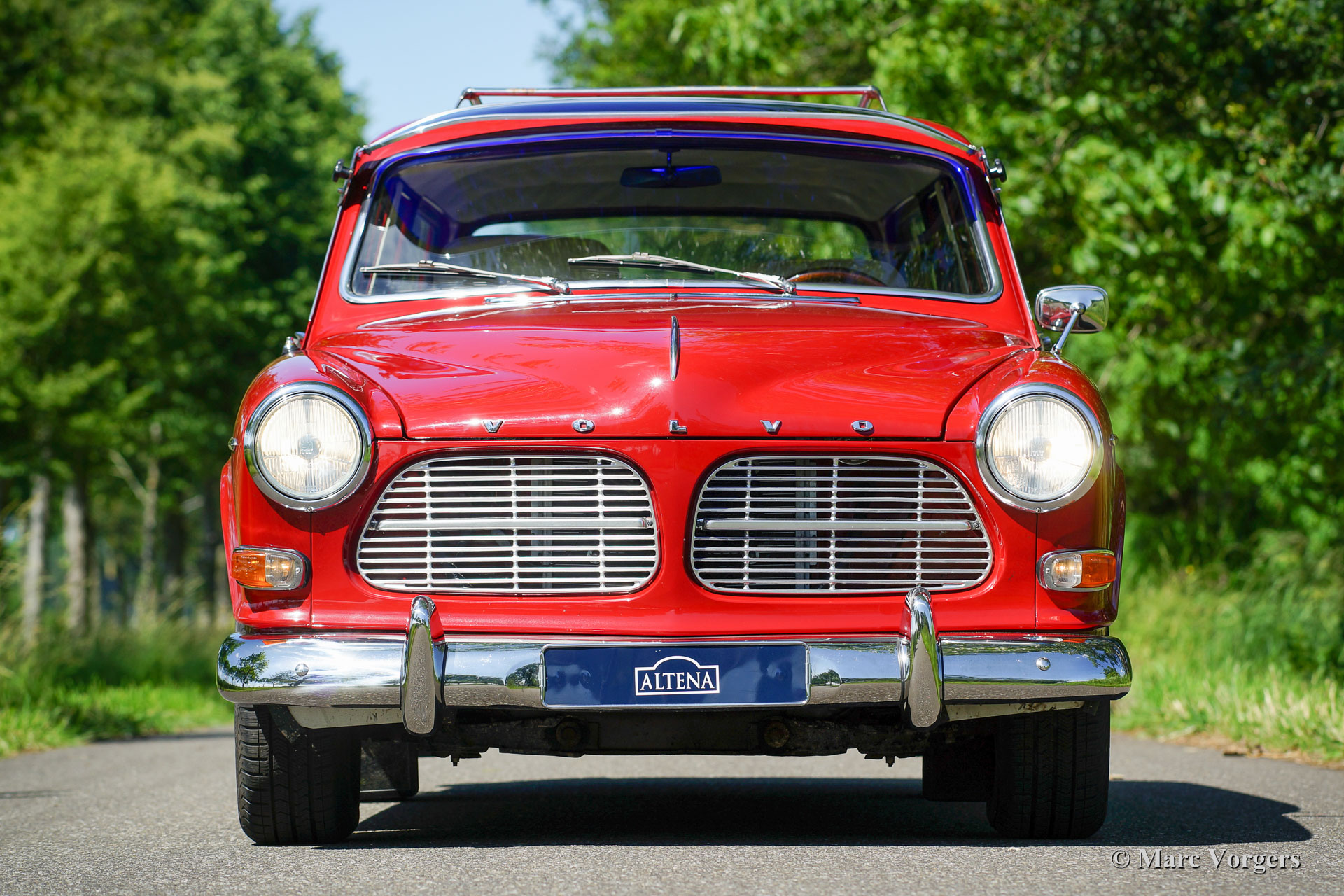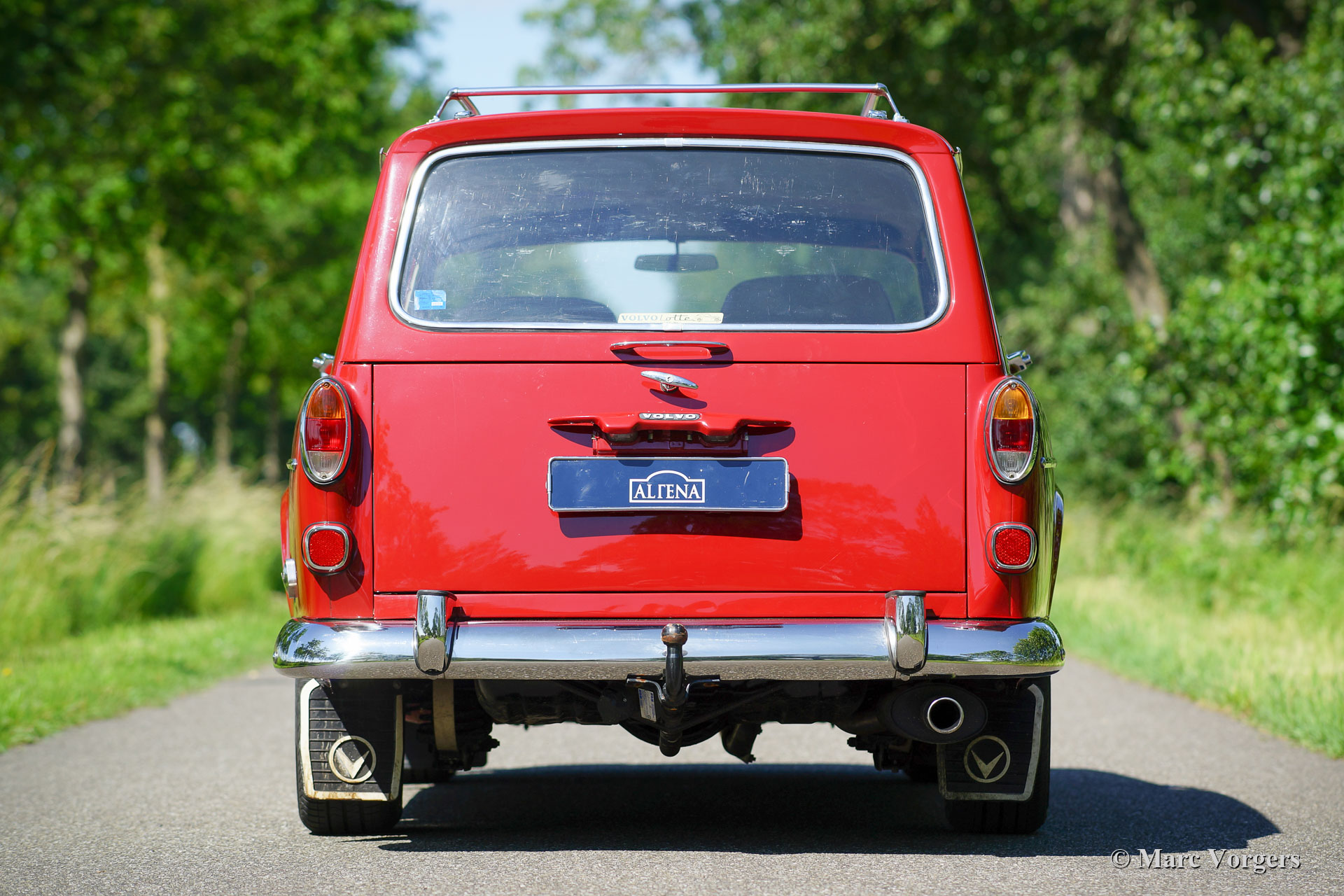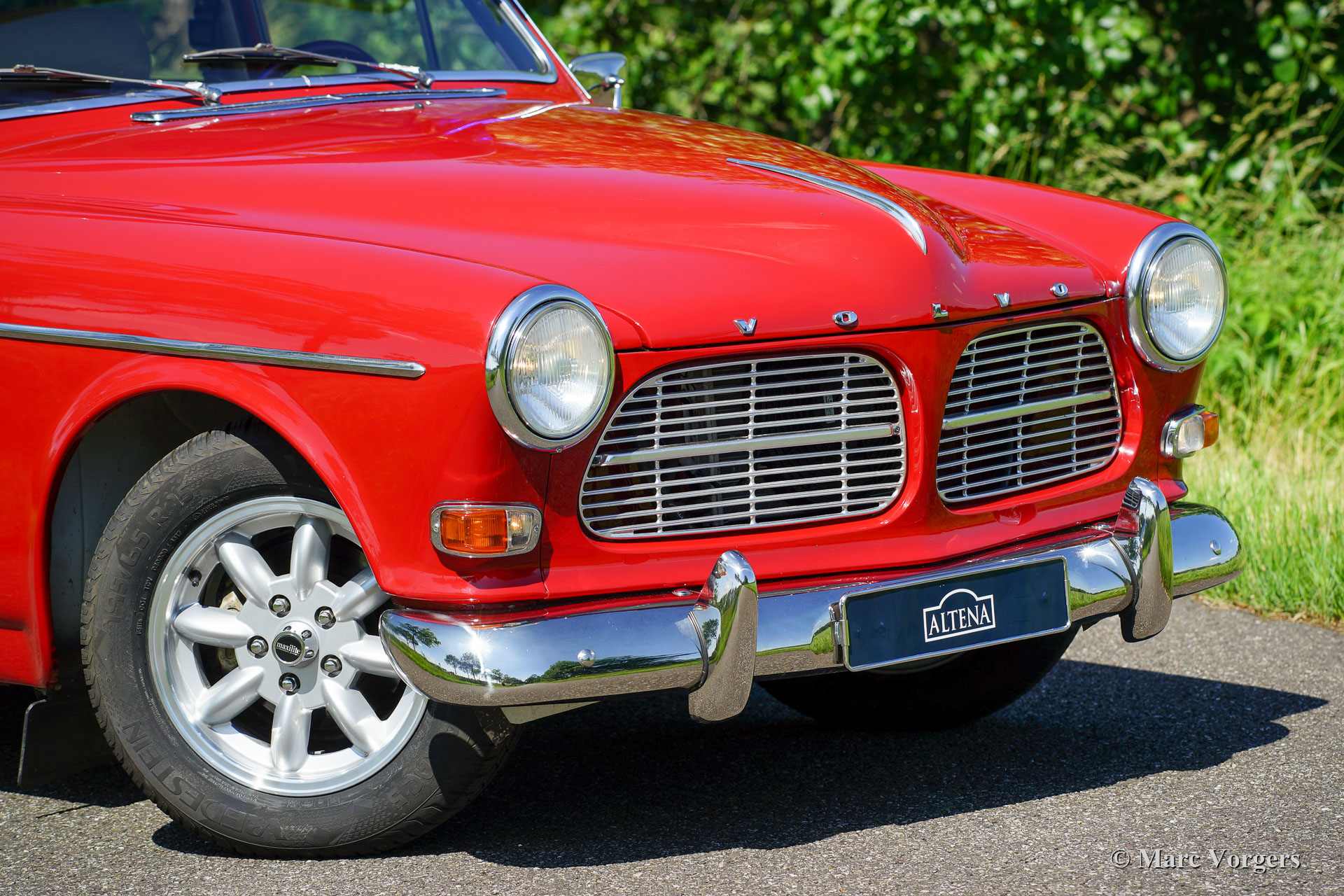 Volvo 221 'Amazon' stationwagen, jaar 1967. Chassisnummer 2224410507XX. Kleur rood met een beige leren interieur en zwart tapijt. Deze prachtige Volvo 221 stationwagen/ kombi werd in 1996 in Nederland geïmporteerd. Ongeveer vijf jaar geleden werd de auto uitgebreid gerestaureerd en gereviseerd naar topstaat! Alles werd gerestaureerd en gereviseerd; de carrosserie, het interieur en de mechanische componenten. De carrosserie toont een zeer fraaie paneelpassing, prachtige lak en sublieme chroom. Het interieur is gloednieuw gestoffeerd en met beige leer bekleed. De motorruimte is brandschoon en fraai gedetailleerd. Deze Volvo 221 'Amazon' verkeert in sublieme TOP-staat; concours! Het zal moeilijk zijn om een ander exemplaar in deze topconditie te vinden. De auto is voorzien van overdrive, een originele verchroomde dakdrager, een trekhaak en lichtmetalen wielen in Minilite stijl. Dit is een zeer gezochte Volvo 221 'Amazon' stationwagen!