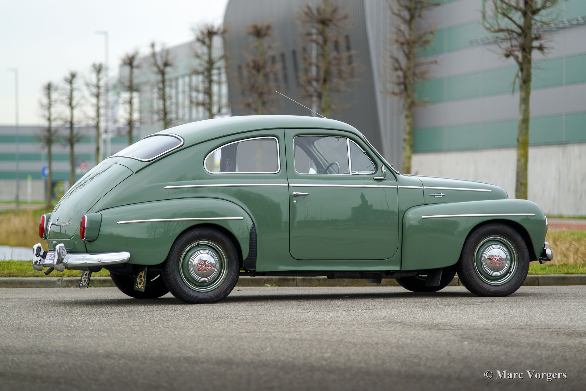 Volvo PV 544 Sport, jaar 1958. Kleur lichtgroen met een grijs/ rood interieur en zwart rubbertapijt. Deze fantastische Volvo PV 544 Sport is in het verleden prachtig gerestaureerd, de Volvo verkeert in excellente staat en de auto rijdt zeer goed. De auto is voorzien van een 1600 cc-viercilinder lijnmotor gekoppeld aan een handgeschakelde vierversnellingsbak. De 'Sport'-motor is voorzien van twee S.U.-carburateurs en de motor levert een gezonde 85 pk. De kleurencombinatie van deze auto is werkelijk prachtig en het grijs/ rode interieur is in perfecte staat! De auto is uitgerust met twee op de deuren gemonteerde achteruitkijkspiegels en een klassieke Blaupunkt Solingen-radio. Dit is een geweldig exemplaar; een begeerlijke Volvo PV 544 Sport!