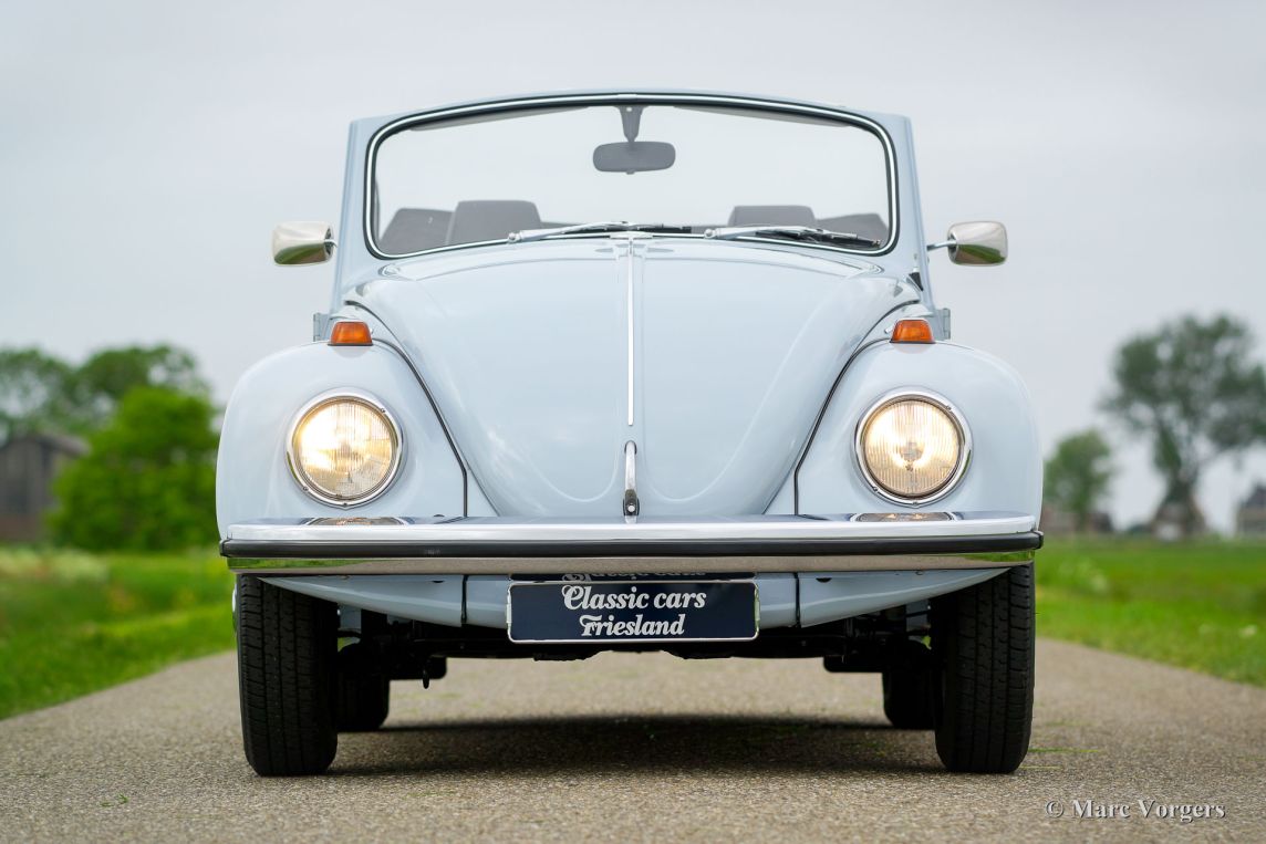 VW 'Kever' 1500 cabriolet, jaar 1970. Kleur Diamant Blauw (VW-kleurcode LB 50) gecombineerd met een zwart kunstleren interieur. Zwarte vinyl Sonnenland-kap en een zwarte kapafdekhoes. Deze prachtige Volkswagen 'Kever' is super origineel, de auto heeft ‘matching numbers’ (chassis, motor, versnellingsbak allemaal origineel af fabriek) en de originele kleuren! Deze prachtige Volkswagen 'Kever' werd nieuw verkocht in Duitsland, de auto is de afgelopen jaren in Nederland uitvoerig en fraai gerestaureerd. Deze VW-cabriolet verkeert in sublieme staat (concours) en de auto rijdt voortreffelijk! De auto wordt geleverd met Nederlandse instructieboekjes en een kopie van het VW ‘geboorte’-document. De auto is momenteel geregistreerd in Nederland. Dit is een zeer begeerlijke Volkswagen ‘Kever’ cabriolet!
