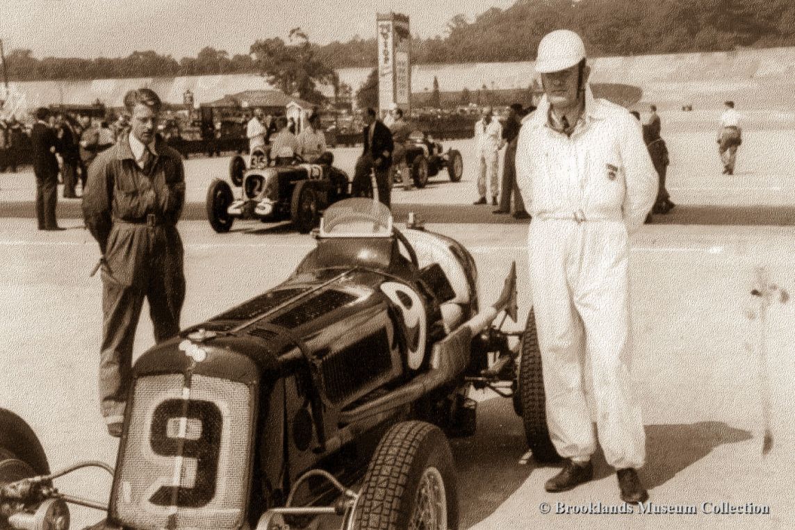 73 Freddy Dixon the 'Riley tuning wizard' and very successful racing driver pictured with his Riley Brooklands just before the 1937 BARC 500 KM race at Brooklands