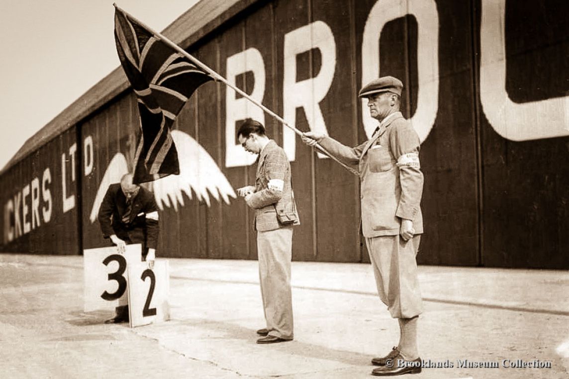 74 Malcolm Campbell is waving the starting flag in the 1937 500 KM race