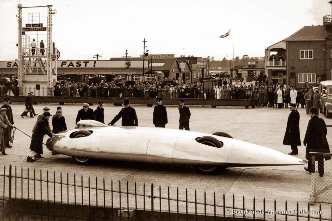79 The impressive Railton Special on show at the Brooklands finishing straight early 1938. The car is almost finished, the stream-lined fairings over the wheels are still missing