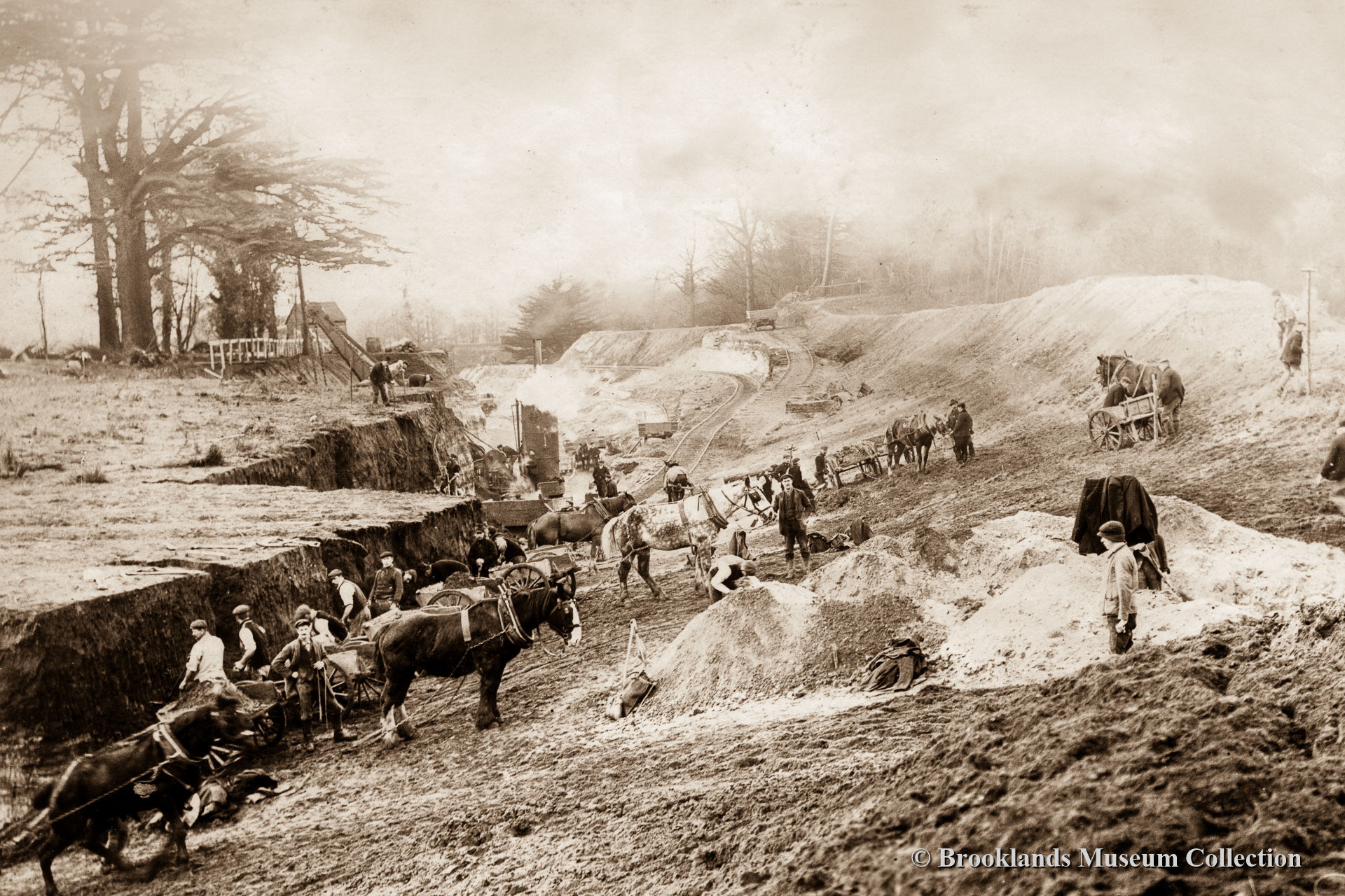 4-6 Construction of Brooklands in 1906-1907. 1500 man carried out the work in just nine months. Total investment made by the Locke Kings estimated at 150.000 Pounds