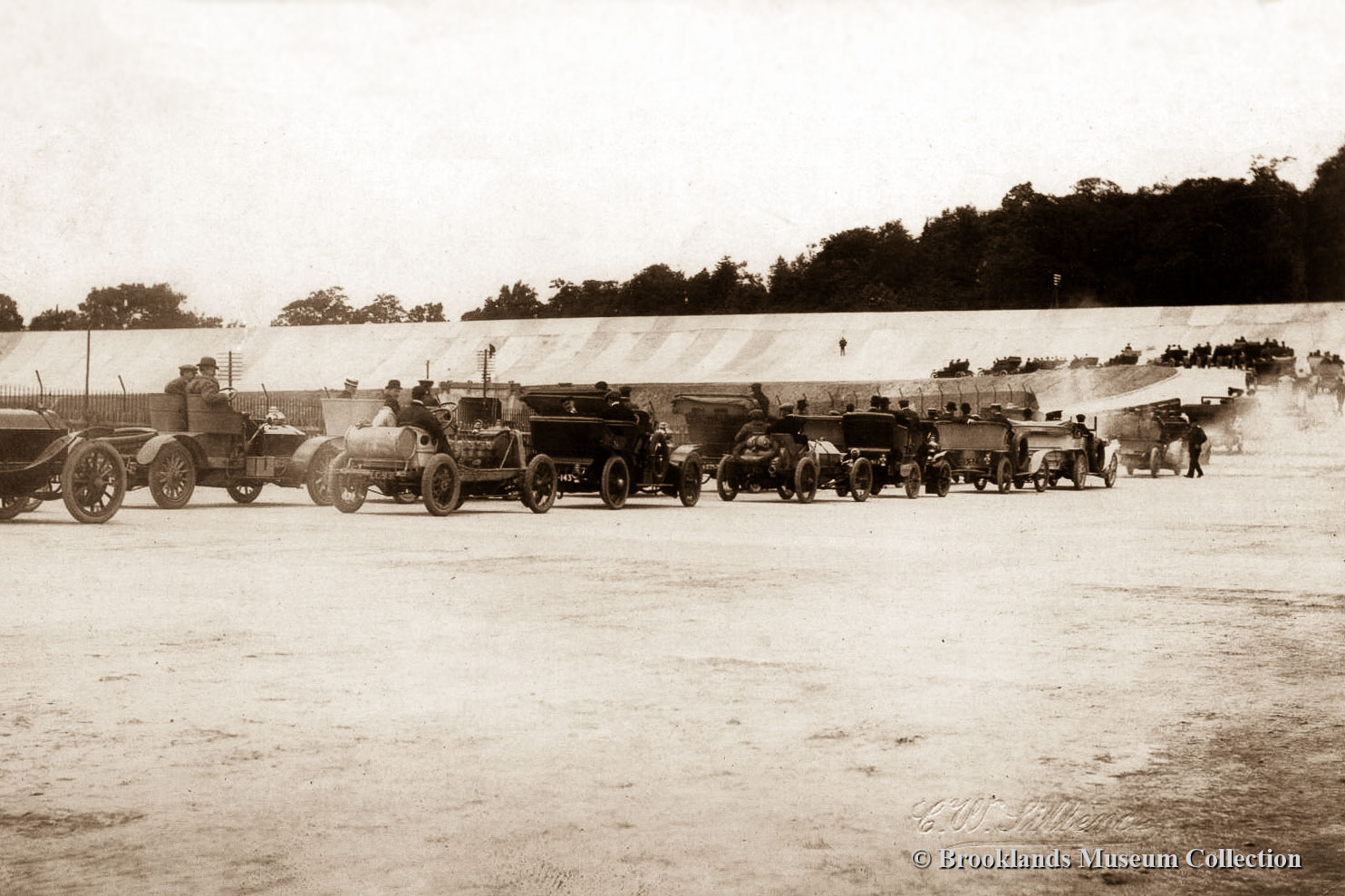 7-8 Opening of the track with speech by Hugh Locke King, opening parade and luncheon 17 June 1907. During the parade a few participants raced each other on the fresh concrete