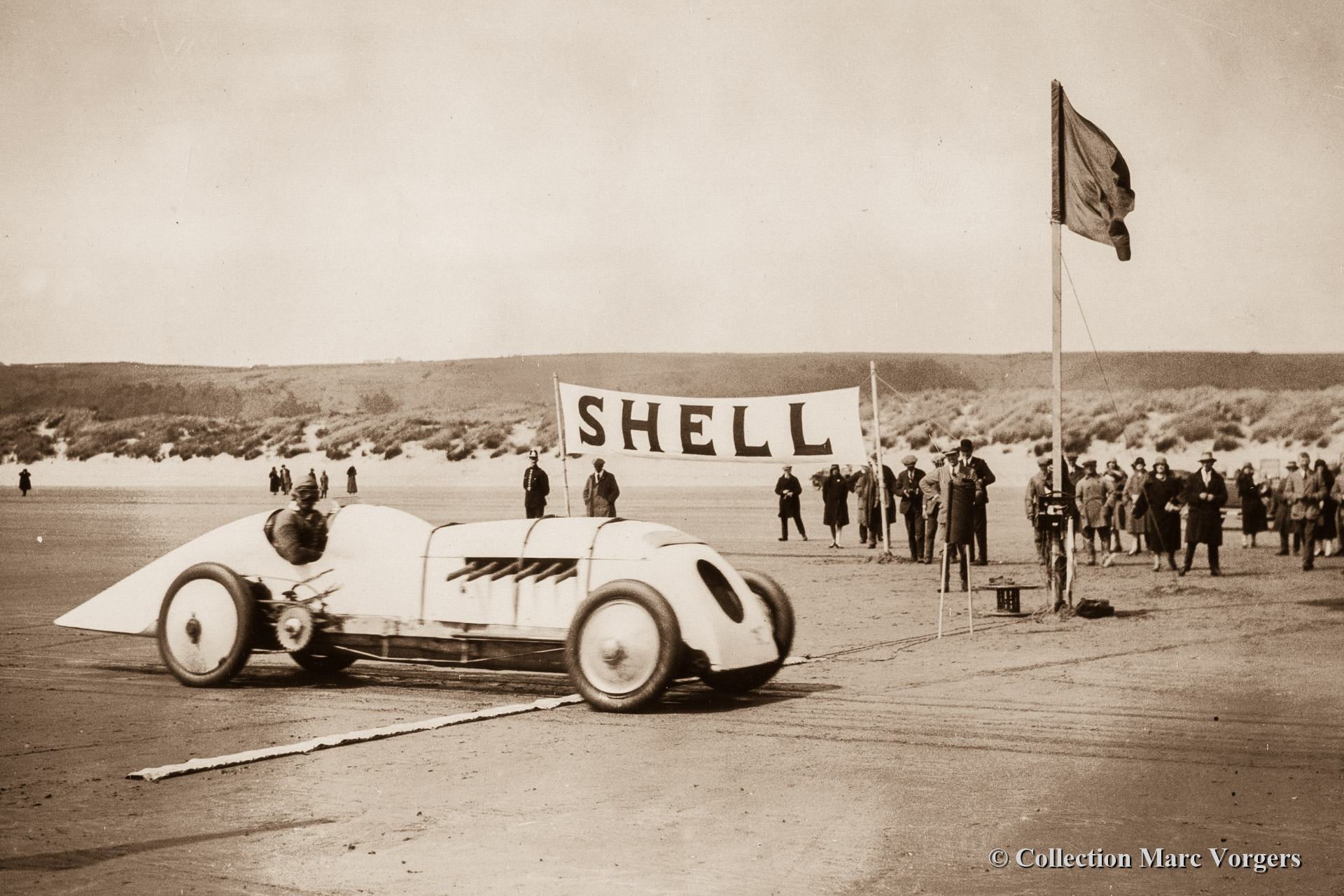 20 Sunbeam 350 HP at Fanoe Island (Denmark) 1923. Now in the hands of speed ace Malcolm Campbell. Shortly after the car was painted blue and christened 'Blue Bird', the fourth in succession