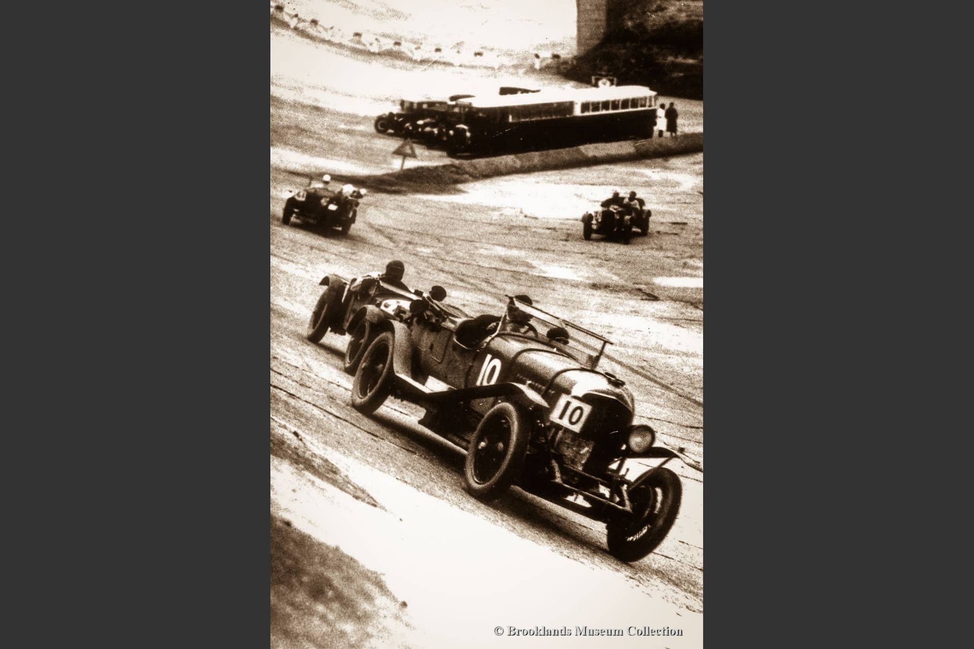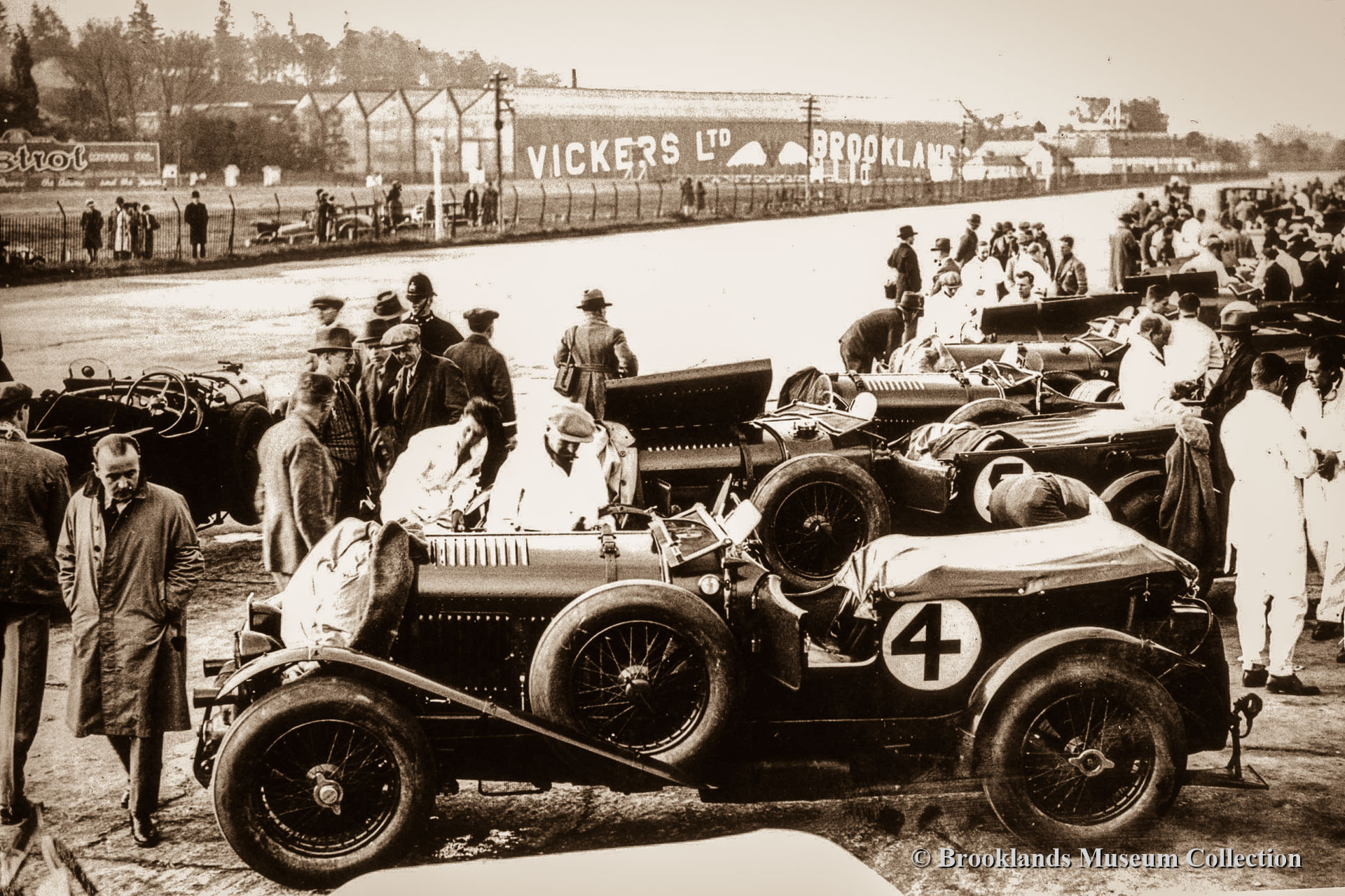Below the photo descriptions you will find short original Pathe films of the Junior Car Club (JCC) 200 Miles race of 1923, the JCC Double Twelve race of 1930 and a film featuring the winning Napier Railton and John Cobb in the Brooklands Automobile Racing Club (BARC) 500 Miles race of 1935.