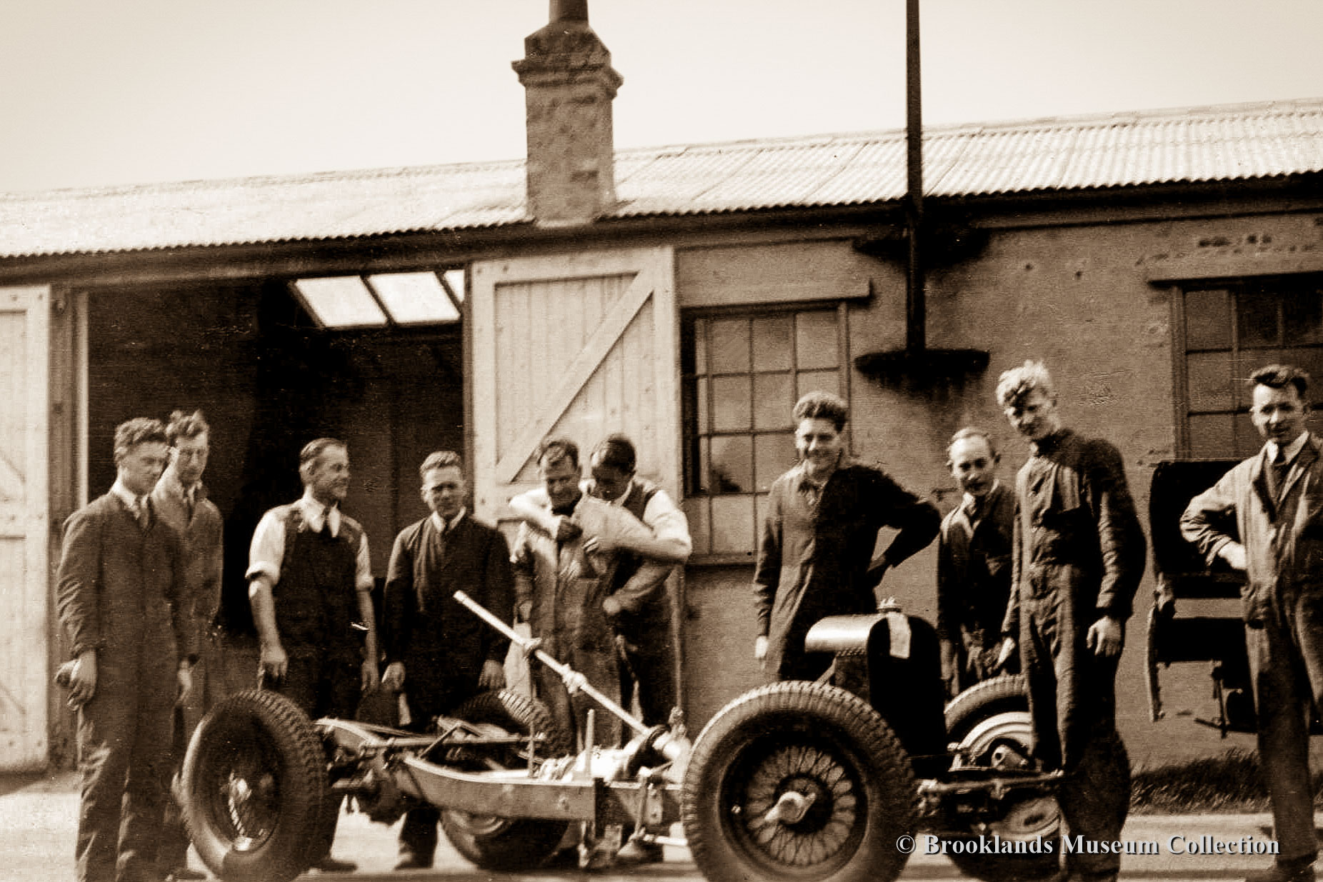 54 Jackson Bentley Special in front of the Jackson shed at Brooklands
