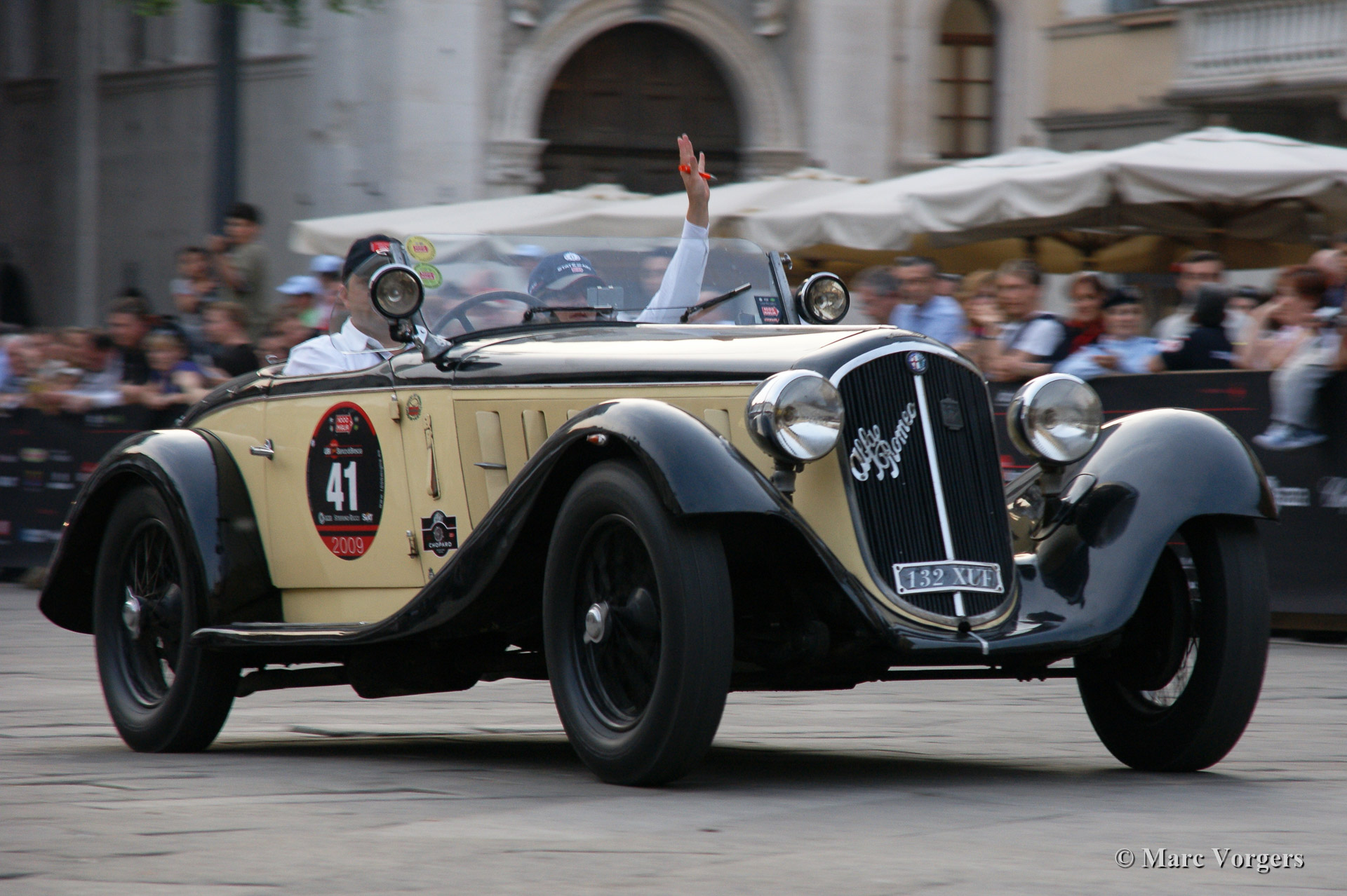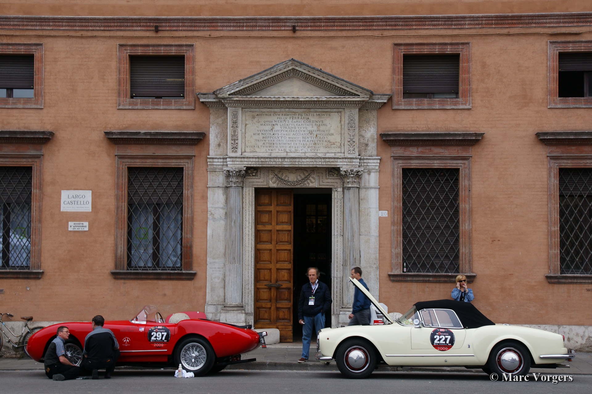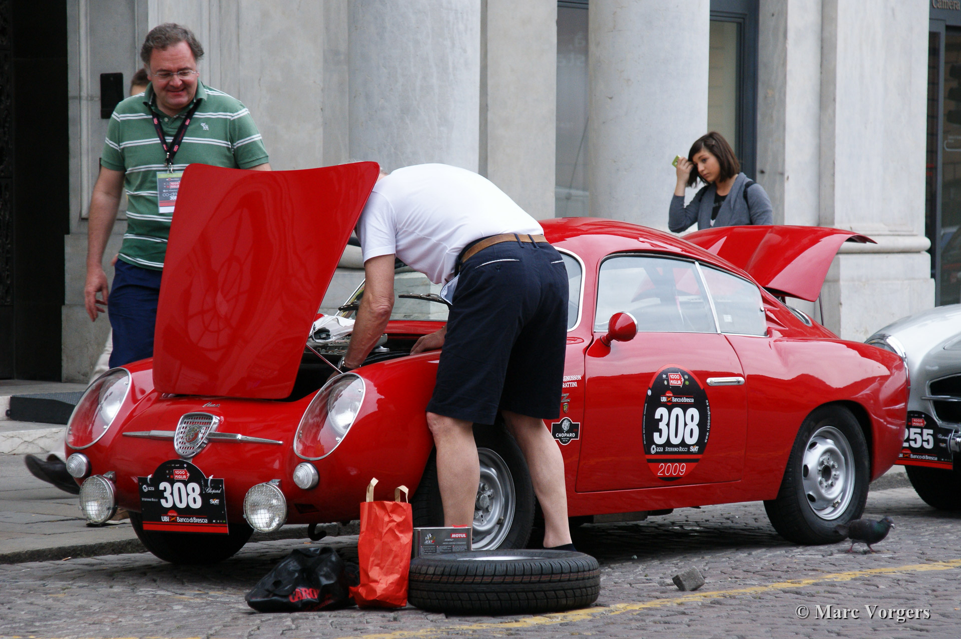 On May 14 and 15 2009 we visited the legendary Mille Miglia in Brescia and Ferrara in Italy. Hereby we present a chronological photo reportage. It all starts with the assembly of all the participating cars in Brescia and the start in the early evening.