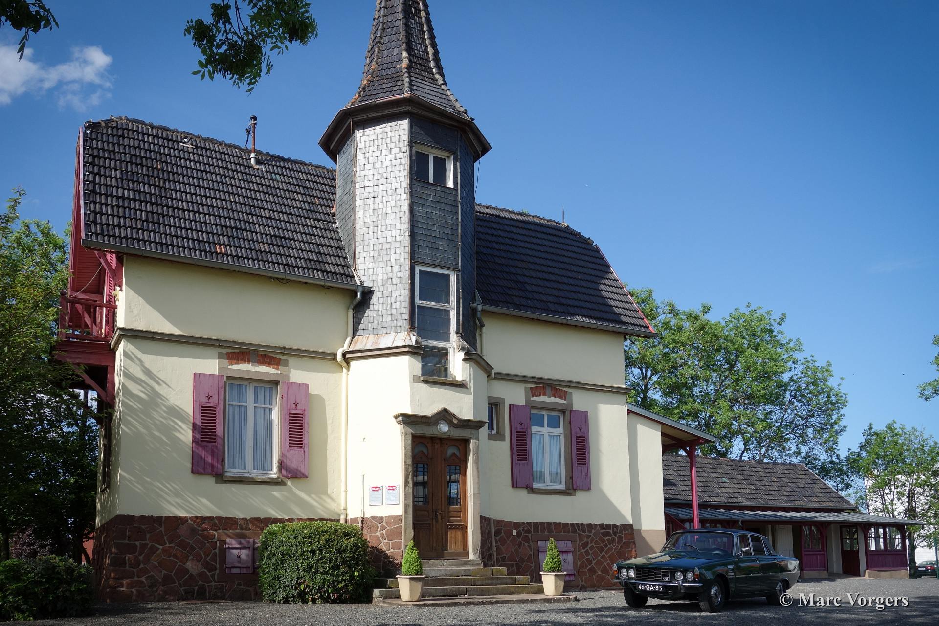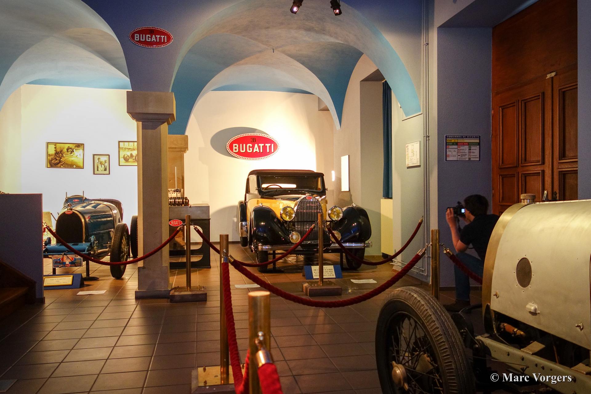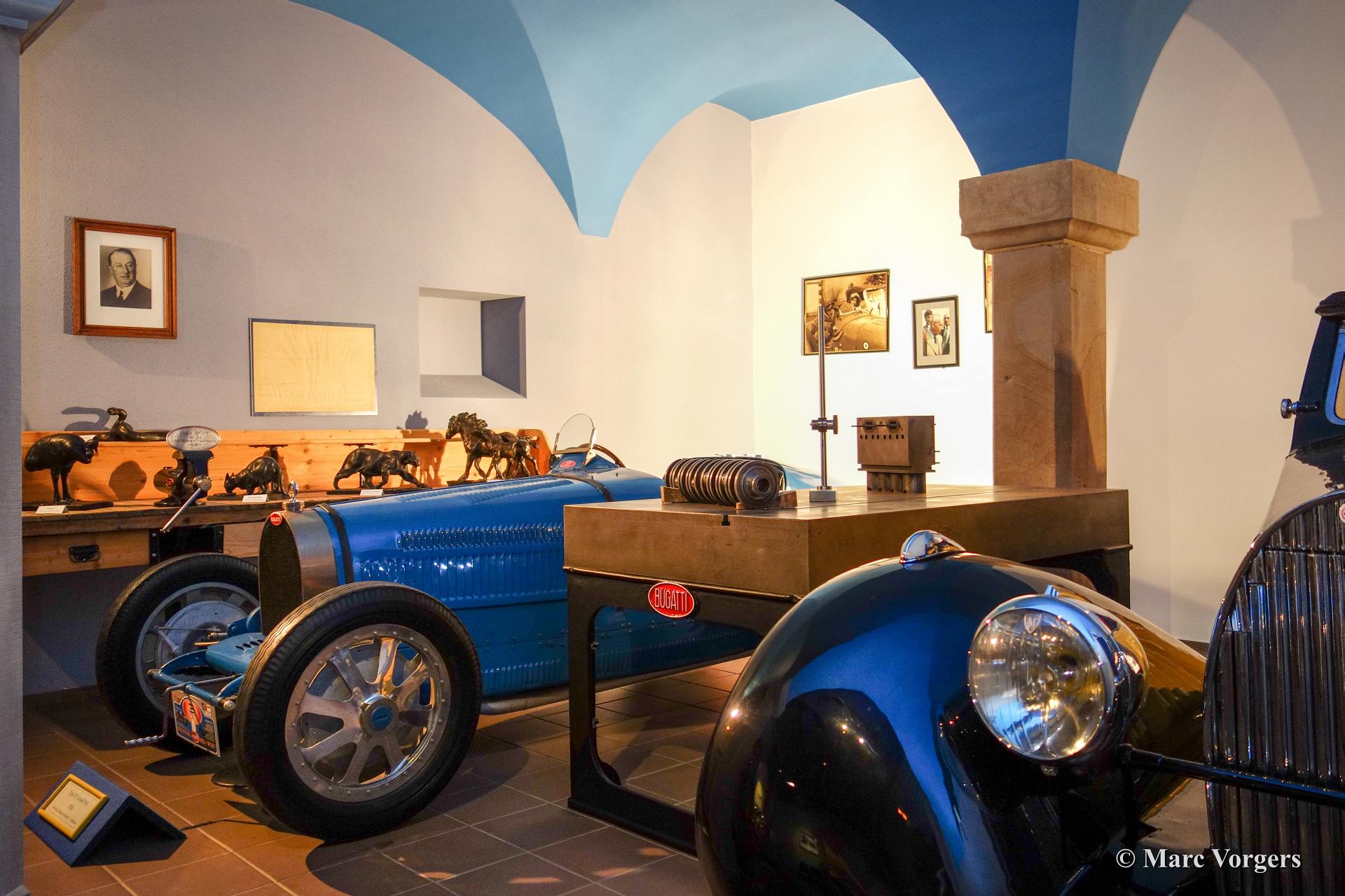 Op 7 mei, de eerste dag van onze ontdekkingsreis, arriveerden we na een voortreffelijke rit van ruim 500 kilometer rond het middaguur in een zonovergoten Molsheim. Naast de parkeerplaats stonden we in het kleine parkje direct oog in oog met een levensgroot bronzen beeld van Ettore Bugatti. Naast hem, in een ovale vijver, ontwaren we een beeld van een prachtige Bugatti Type 35. Na deze eerste kennismaking begint onze ‘Bugatti Trail’ pas echt. Een fraaie wandeling door het historische centrum van Molsheim brengt ons naar de ‘Foundation Bugatti’ waar een klein maar zeer interessant museum is ingericht door de ‘Enthusiastes Bugatti’. Daarna volgen wij het historische spoor naar de ‘Hostellerie du Pur Sang’, een pittoresk oud hotel dat door Bugatti werd gebuikt om zijn klanten en bezoekers voor een of meerdere nachten onder te brengen. Tegenwoordig is de ‘Hostellerie’ het clubhuis van de ‘Enthousiastes Bugatti Alsace’. Naast de ‘Hostellerie’ staat ons hotel dat toepasselijk ‘Hotel Le Bugatti’ is genaamd.