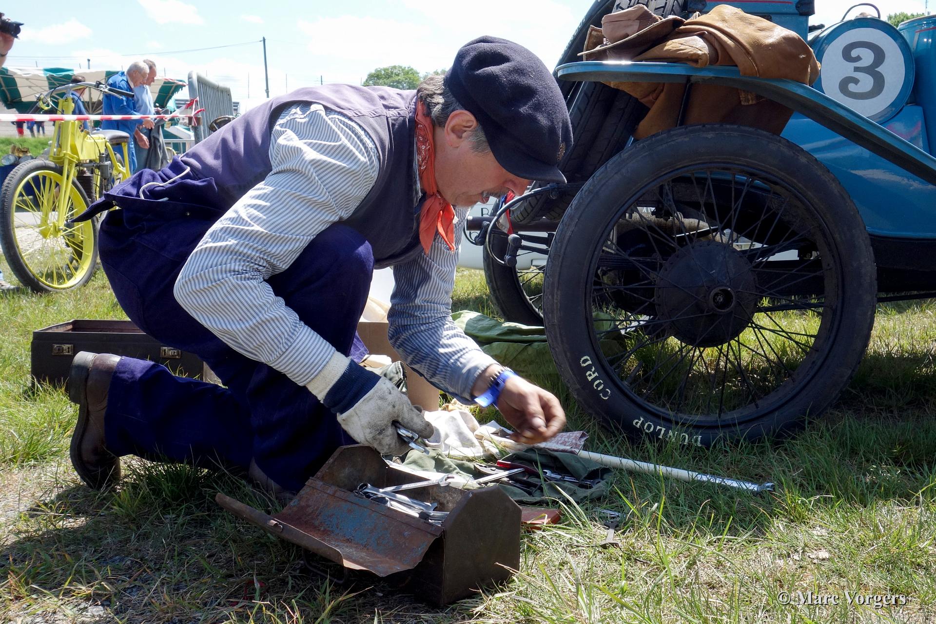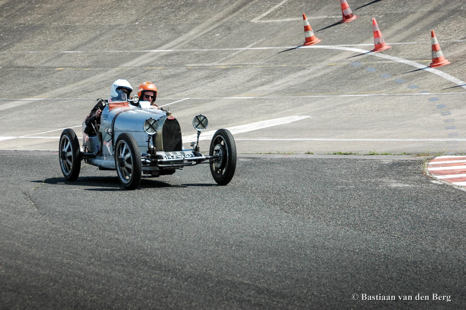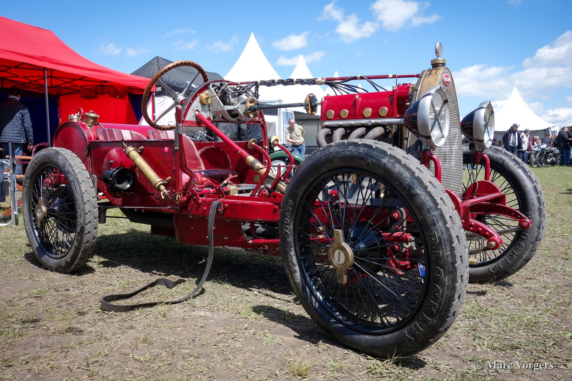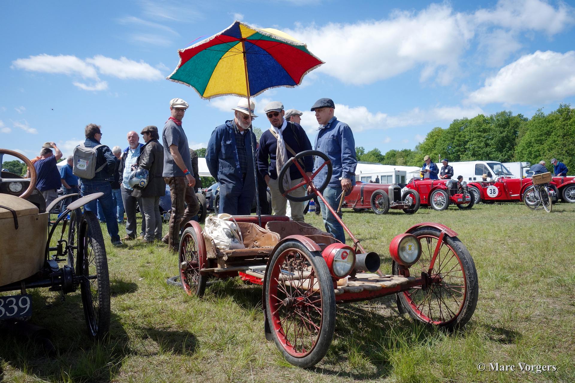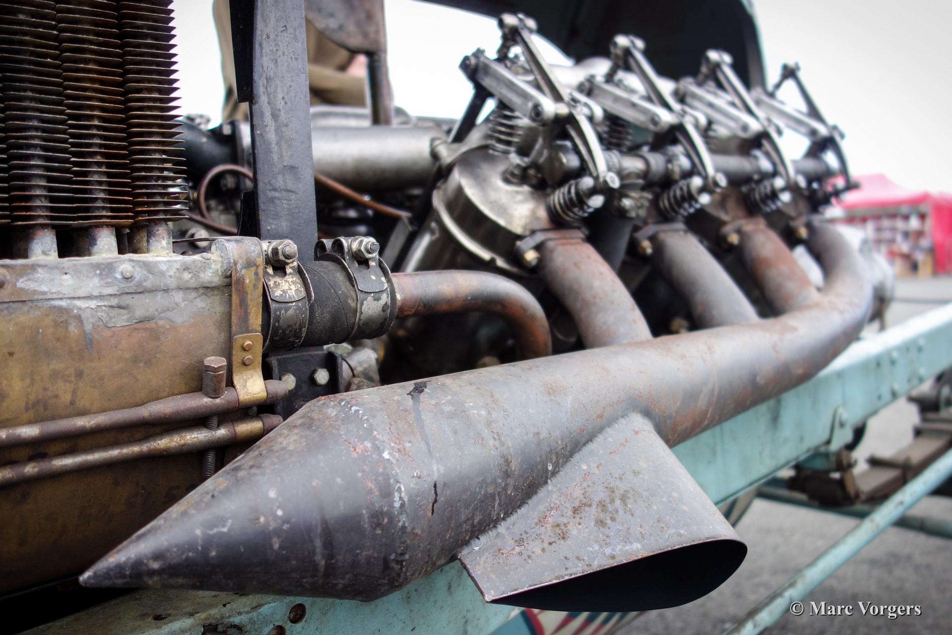 De derde dag van onze ontdekkingstocht reisden we bijna 600 kilometer naar Montlhery. We kozen voor de mooiste route langs Belfort en over de N19/E54 van Vesoul naar Langres. Hier vonden we een klein stukje Engeland in het dorpje Cintrey. Hier maakten we foto’s van onszelf met de Rover bij een oude garage met prachtige Castrol en Champion reclames op de muur! Vroeg in de middag arriveerden we op de historische kombaan van Montlhery. Op slag werd de klok van onze beleving tientallen jaren teruggedraaid naar de Jaren 1920 en 1930. Met een beetje inleving en het negeren van moderne veiligheidshelmen en mensen in te moderne kleding is de tijdreis compleet. Tijdens de Vintage Revival zagen we vele Bugatti’s die nog altijd intensief gereden worden, er wordt zelfs mee geracet en de auto’s worden zonder uitzondering gekoesterd door de eigenaren. Maar er was veel meer te zien, ook auto’s van andere merken maakten indruk. Ik heb me twee dagen verlekkerd aan een originele Grand Prix Mercedes uit 1908… Uiteindelijk mocht ik plaatsnemen in de auto waarmee Christian Lautenschlager in 1908 de Franse Grand Prix won in Dieppe.