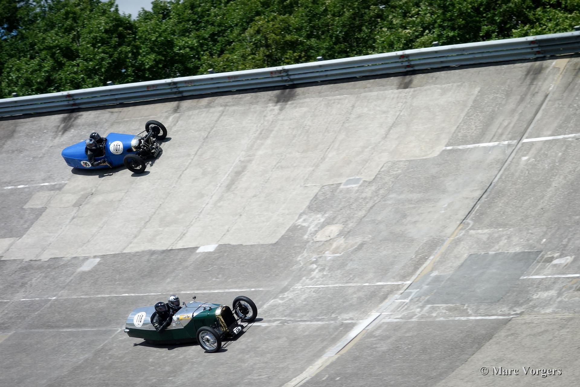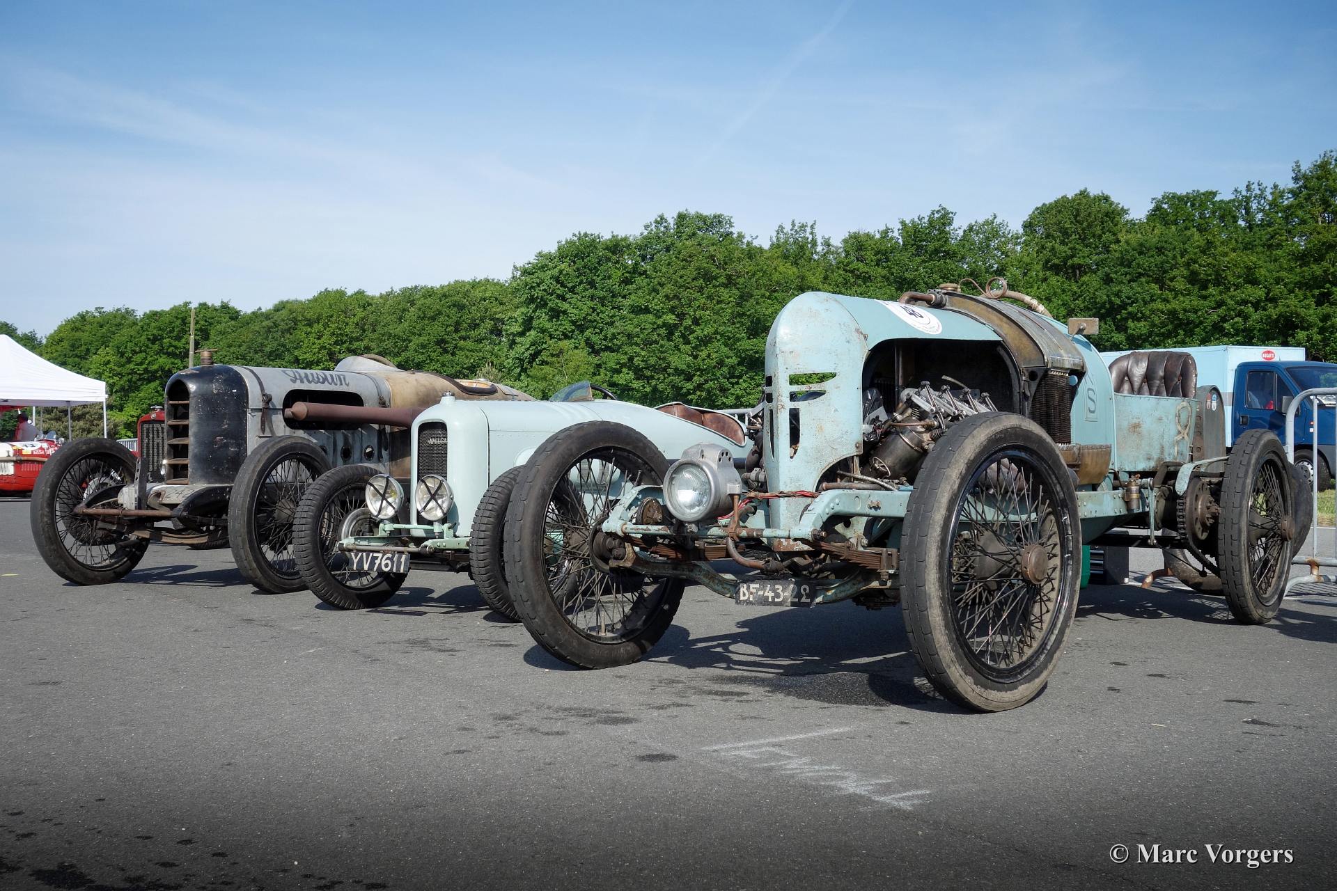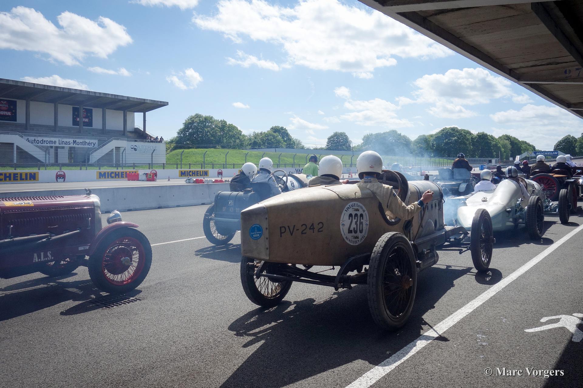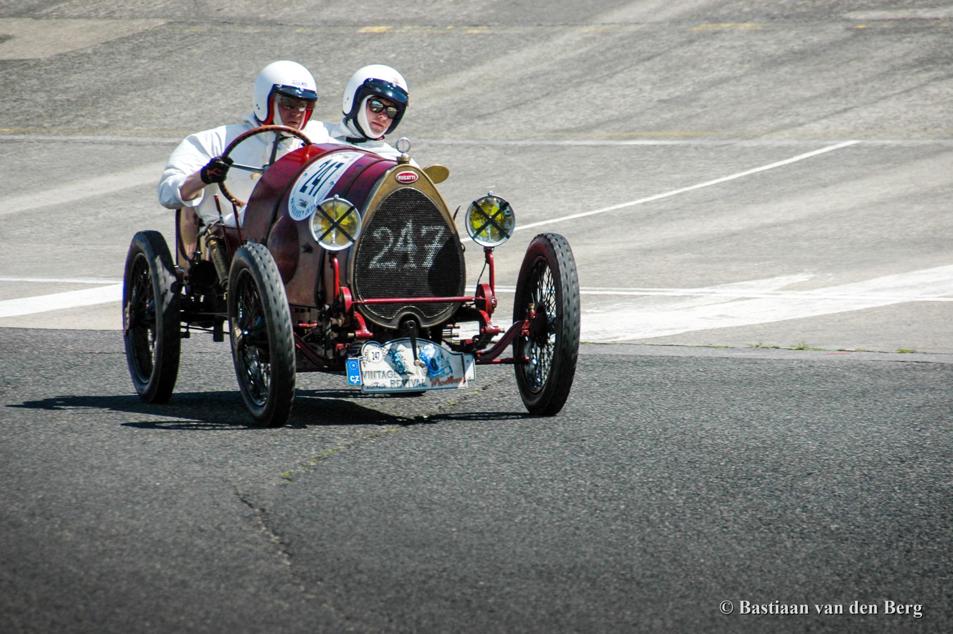De derde dag van onze ontdekkingstocht reisden we bijna 600 kilometer naar Montlhery. We kozen voor de mooiste route langs Belfort en over de N19/E54 van Vesoul naar Langres. Hier vonden we een klein stukje Engeland in het dorpje Cintrey. Hier maakten we foto’s van onszelf met de Rover bij een oude garage met prachtige Castrol en Champion reclames op de muur! Vroeg in de middag arriveerden we op de historische kombaan van Montlhery. Op slag werd de klok van onze beleving tientallen jaren teruggedraaid naar de Jaren 1920 en 1930. Met een beetje inleving en het negeren van moderne veiligheidshelmen en mensen in te moderne kleding is de tijdreis compleet. Tijdens de Vintage Revival zagen we vele Bugatti’s die nog altijd intensief gereden worden, er wordt zelfs mee geracet en de auto’s worden zonder uitzondering gekoesterd door de eigenaren. Maar er was veel meer te zien, ook auto’s van andere merken maakten indruk. Ik heb me twee dagen verlekkerd aan een originele Grand Prix Mercedes uit 1908… Uiteindelijk mocht ik plaatsnemen in de auto waarmee Christian Lautenschlager in 1908 de Franse Grand Prix won in Dieppe.