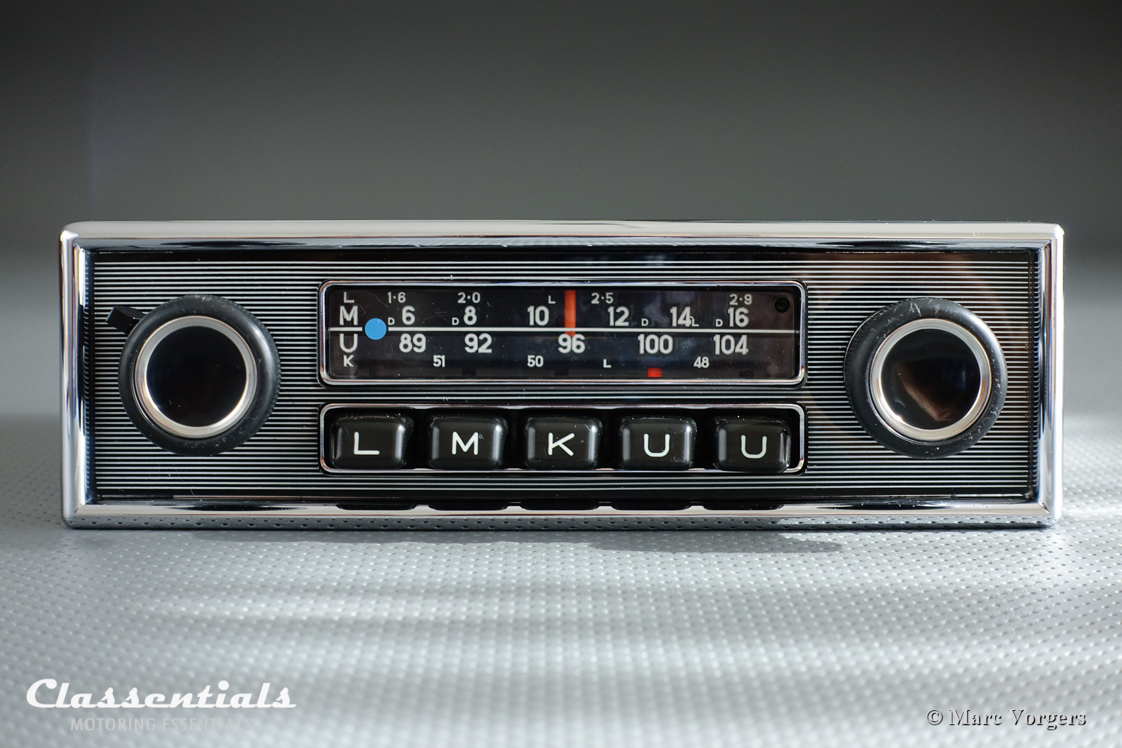 Now what? you must be thinking reading the title of this blog post. Vintage dashboard jewelry is how I prefer to think of vintage auto-radios from the late 1950s, 1960s and early 1970s. Superbly engineered old-school electronic technology fronted with beautifully shaped chrome ‘facings’ and finely detailed knobs and radio scales. My classic motor-cars do not feel complete without a vintage radio looking at me from the dashboard. Now I have to admit that I scarcely listen to radio programmes driving my cars, usually one does not travel alone in a classic car, petrol talk galore with friends and discussing the scenery when on the road with my better half. When driving alone I prefer to enjoy the sound of the sports engines; four-, six- or eight-cylinder soundtracks cannot be bettered by anything! So every now and then I try to pick up the hourly news broadcast, and driving at night I just turn on some background music… This for one reason only: To have the lights of the dial light-up with the rest of the gauges on the dashboard. Only in classic cars with an indifferent (boring) engine-sound I will crank up the volume to enjoy some good music!