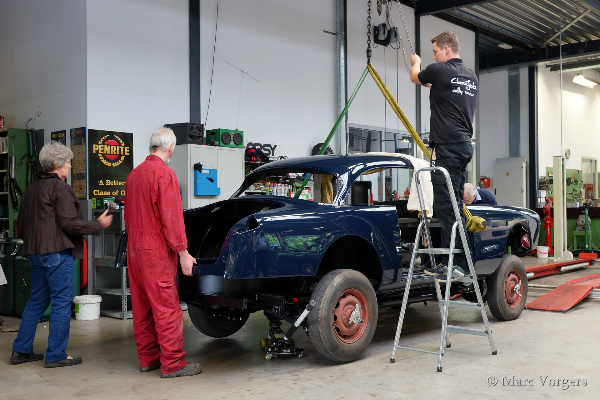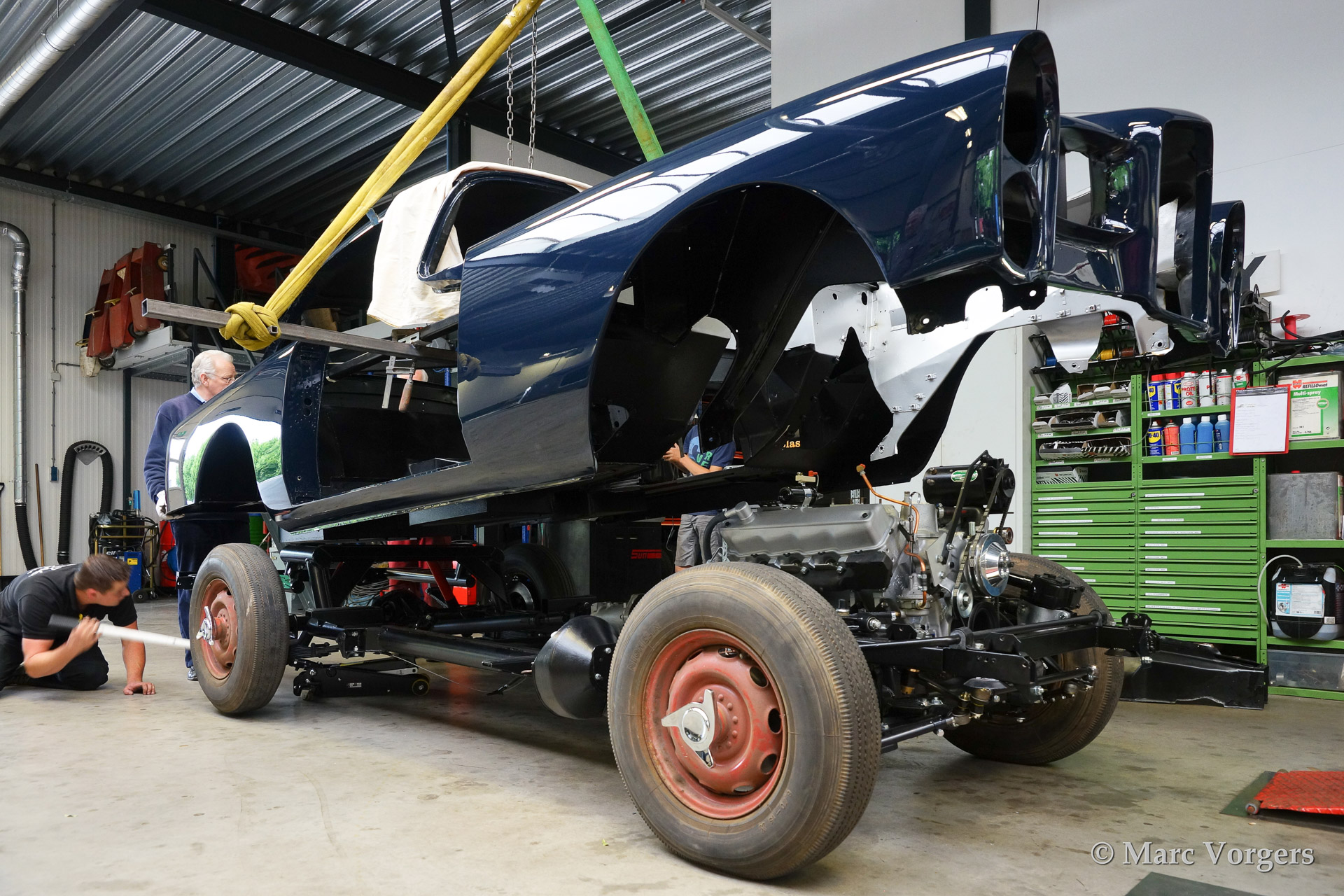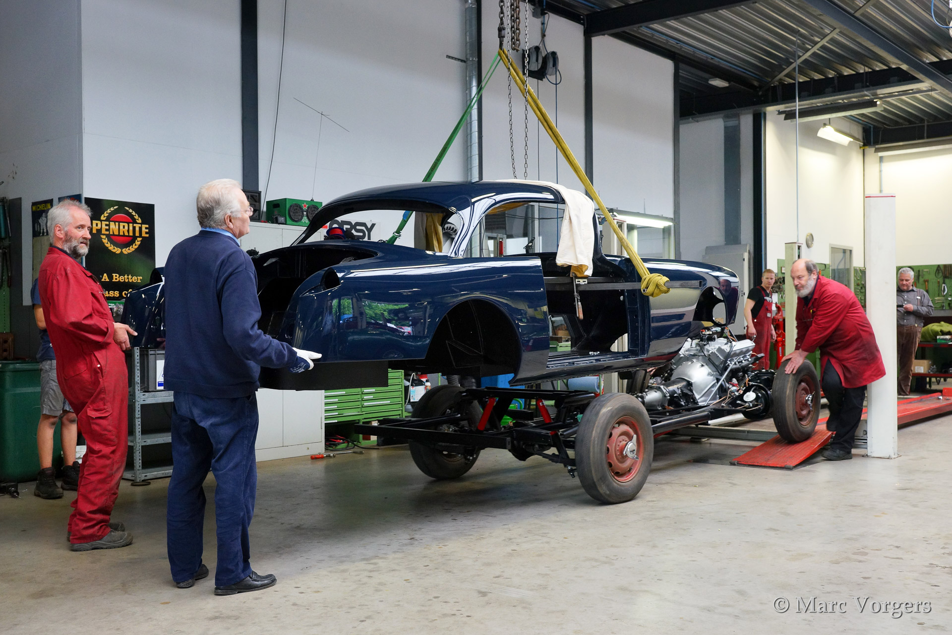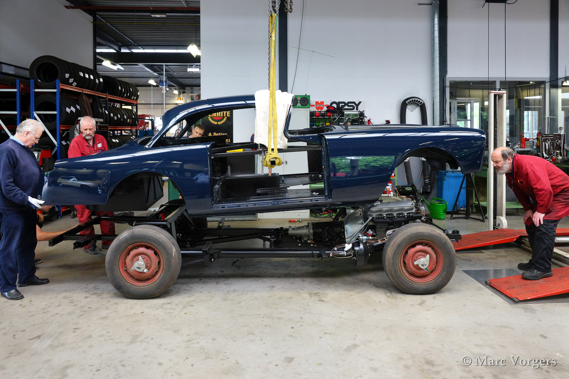 Deze schitterende Facel Vega Facel FV3B (58-312) uit 1958 werd volledig gerestaureerd door Amicale Facel Holland (AFH) in opdracht van een cliënt. Een zeer uitvoerige plaatwerk reconstructie is uitgevoerd, de auto werd strakgemaakt en voorzien van een perfect laksysteem in de kleur donkerblauw. Het chassis werd gerestaureerd en alle mechanische en elektrische delen zijn gerestaureerd/gereviseerd en/of vernieuwd. In deze fotoreportage ziet u het 'huwelijk' van de carrosserie met het chassis en aansluitend de automobiel in volle glorie na restauratie. Op de eerste foto ziet u het team van AFH dat deze prachtige restauratie van A-Z uitvoerde. Neem contact met ons op indien u uw Facel Vega naar topstaat wilt laten restaureren.
