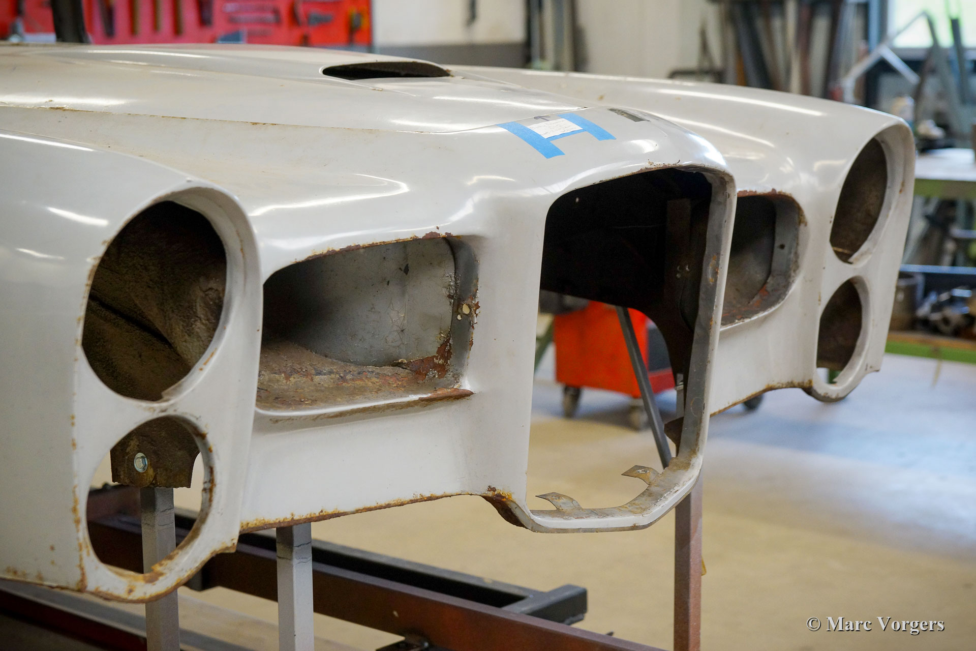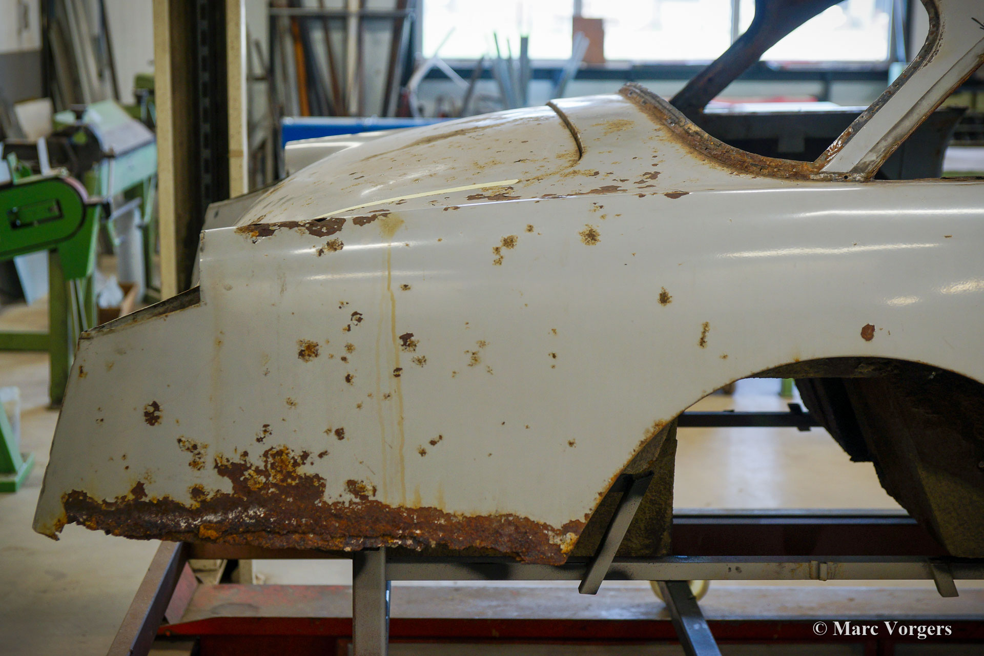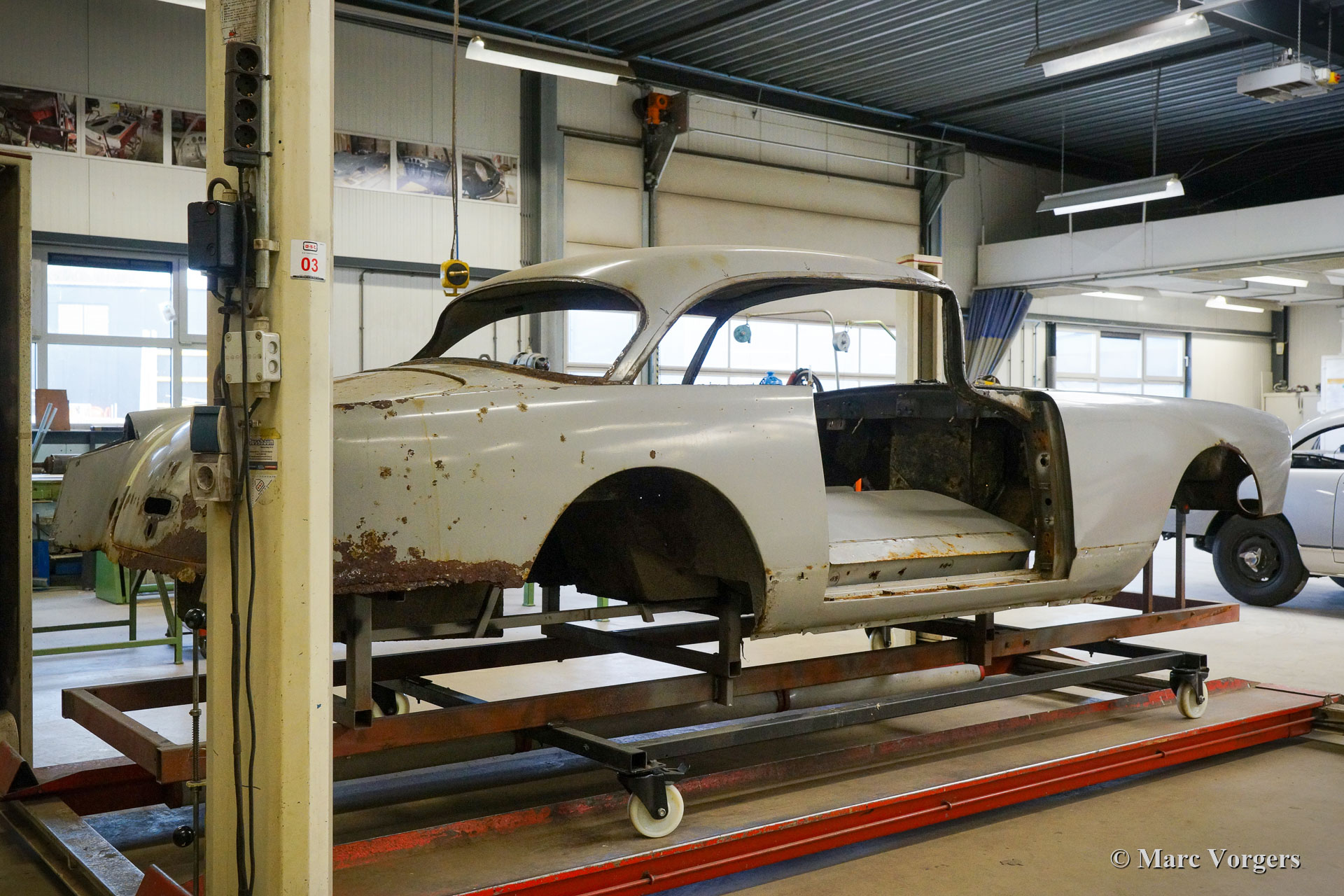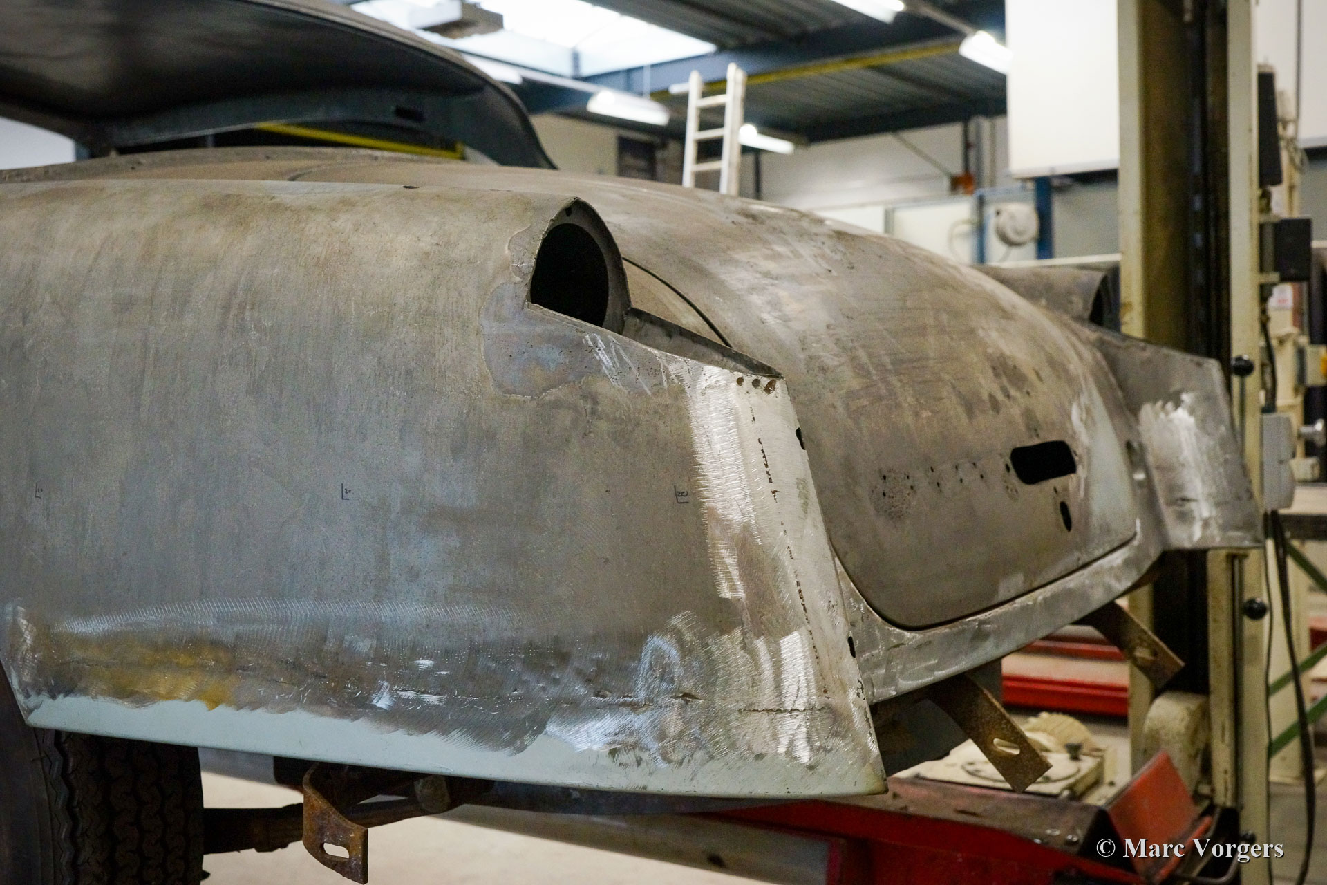 De restauratie vordert gestaag. De carrosserie werd ontdaan van lak en alle andere coatings in een speciaal dompelbad. Daarna werd het plaatwerkherstel uitgevoerd. De carrosserie heeft een KTL-coating gekregen in een speciaal dompelbad, op deze manier kan de beschermende coating elk onderdeel en de kleinste holte van de carrosserie bereiken. Het chassis is gezandstraald en gemoffeld en vervolgens afgewerkt met de montage van de ophanging, remleidingen en andere onderdelen die op hun plaats moeten zijn voordat de carrosserie kan worden teruggeplaatst. Aansluitend zijn de carrosserie en het chassis weer samengevoegd. Daarna zijn de ruiten en alle roestvrijstalen delen en sierlijsten weer gemonteerd.