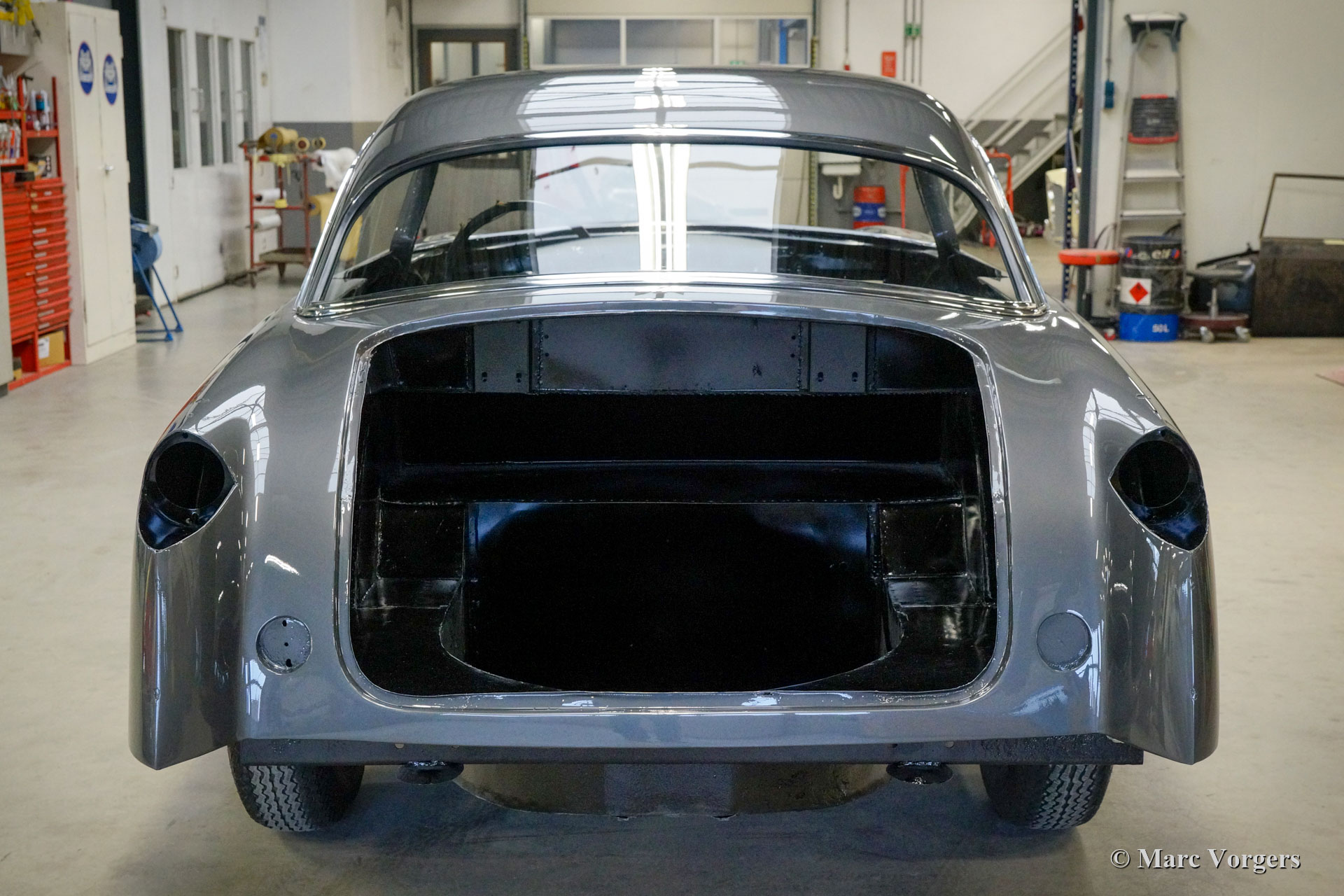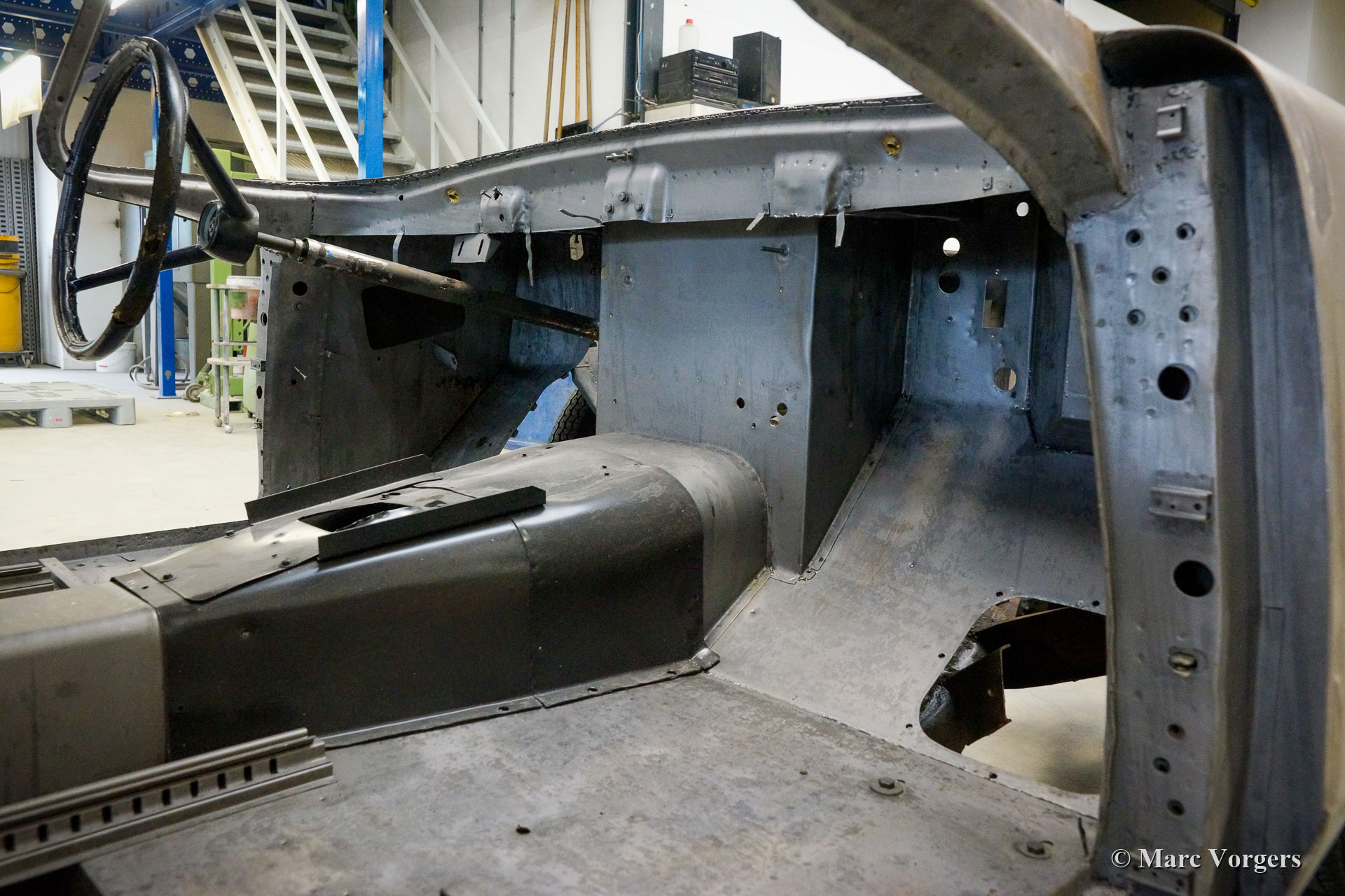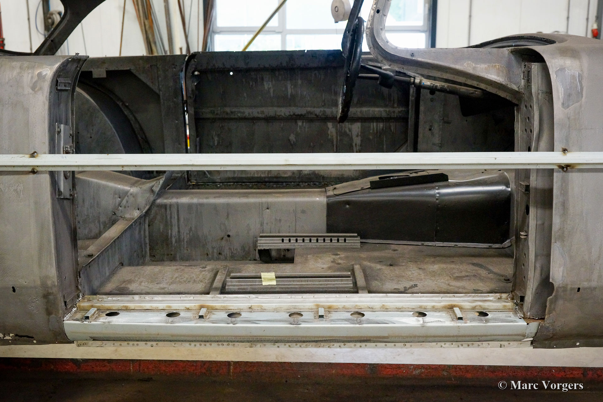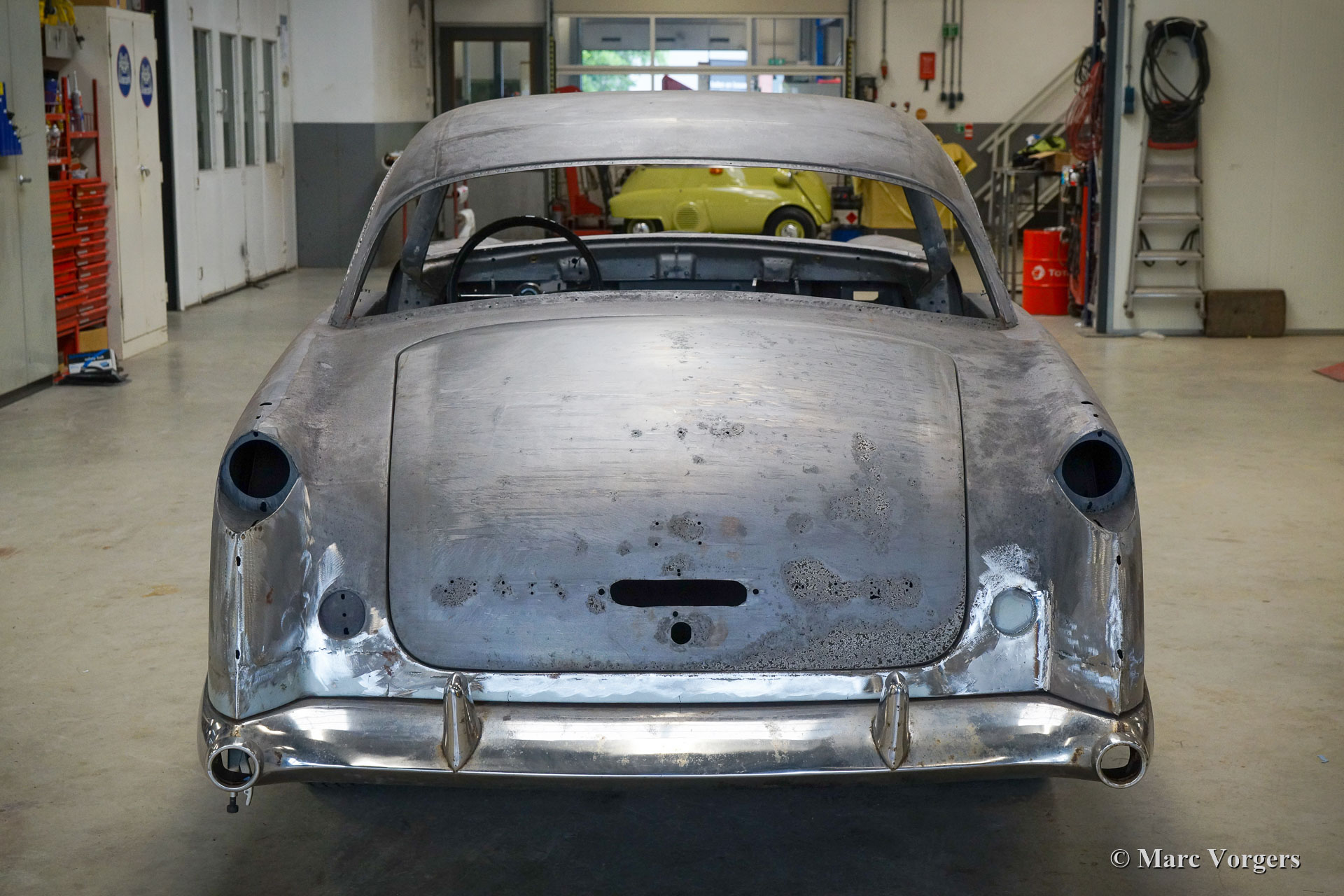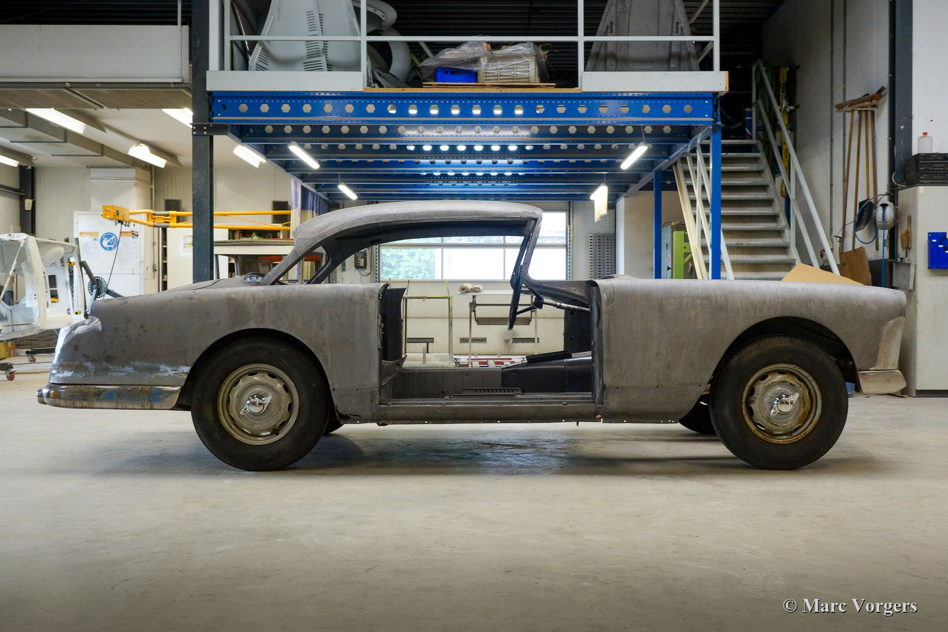 De restauratie vordert gestaag. De carrosserie werd ontdaan van lak en alle andere coatings in een speciaal dompelbad. Daarna werd het plaatwerkherstel uitgevoerd. De carrosserie heeft een KTL-coating gekregen in een speciaal dompelbad, op deze manier kan de beschermende coating elk onderdeel en de kleinste holte van de carrosserie bereiken. Het chassis is gezandstraald en gemoffeld en vervolgens afgewerkt met de montage van de ophanging, remleidingen en andere onderdelen die op hun plaats moeten zijn voordat de carrosserie kan worden teruggeplaatst. Aansluitend zijn de carrosserie en het chassis weer samengevoegd. Daarna zijn de ruiten en alle roestvrijstalen delen en sierlijsten weer gemonteerd.