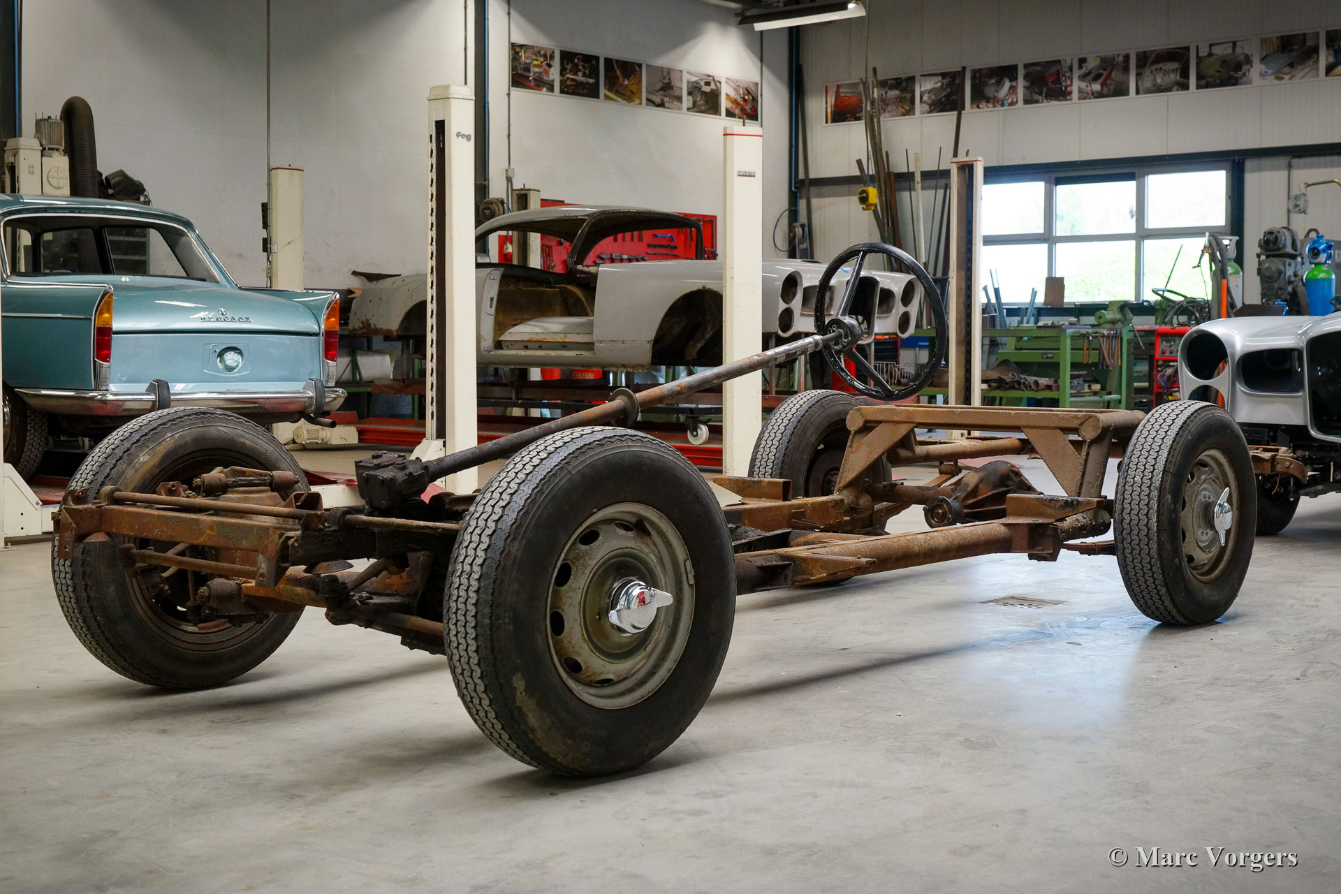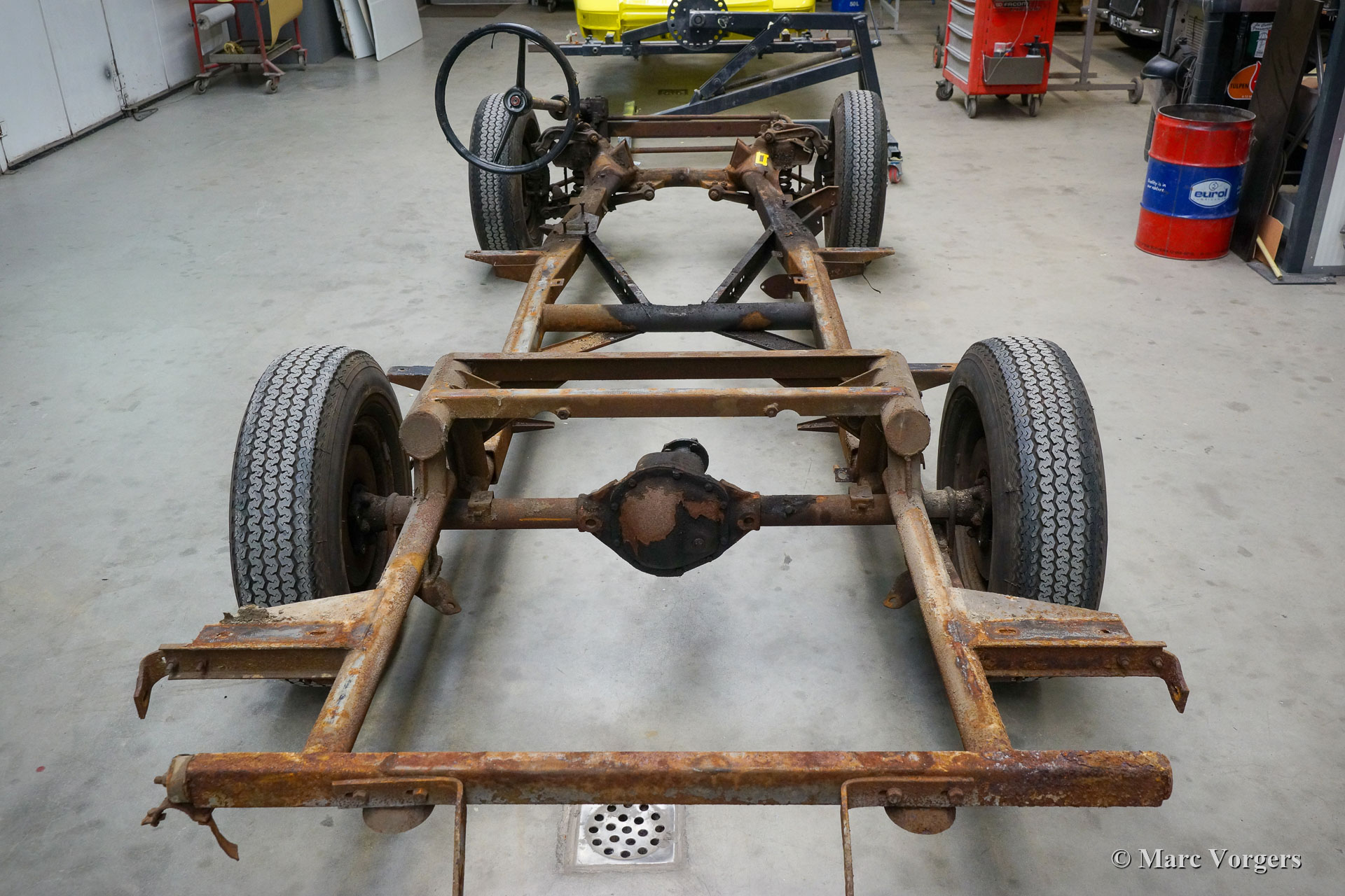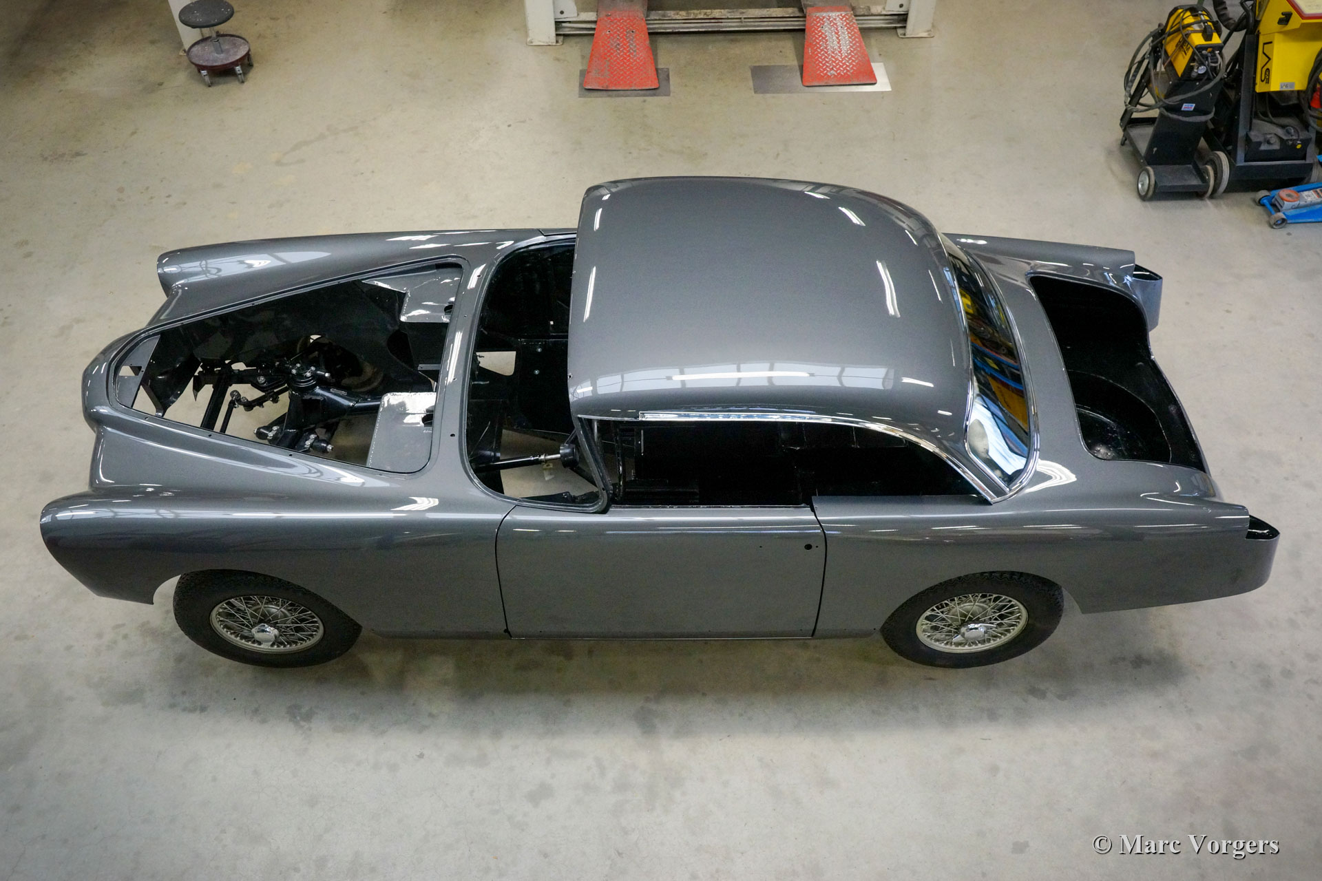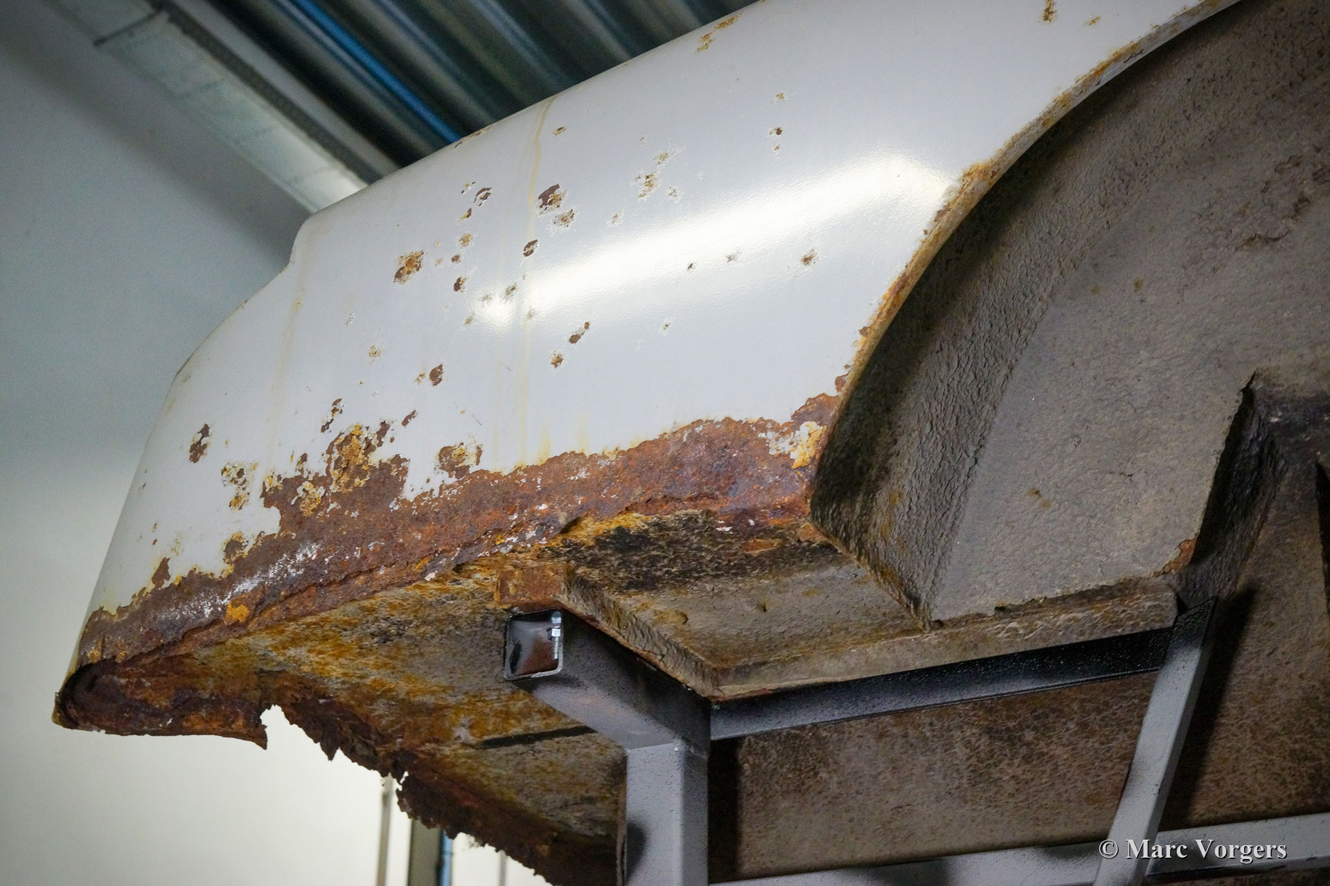 De restauratie vordert gestaag. De carrosserie werd ontdaan van lak en alle andere coatings in een speciaal dompelbad. Daarna werd het plaatwerkherstel uitgevoerd. De carrosserie heeft een KTL-coating gekregen in een speciaal dompelbad, op deze manier kan de beschermende coating elk onderdeel en de kleinste holte van de carrosserie bereiken. Het chassis is gezandstraald en gemoffeld en vervolgens afgewerkt met de montage van de ophanging, remleidingen en andere onderdelen die op hun plaats moeten zijn voordat de carrosserie kan worden teruggeplaatst. Aansluitend zijn de carrosserie en het chassis weer samengevoegd. Daarna zijn de ruiten en alle roestvrijstalen delen en sierlijsten weer gemonteerd.